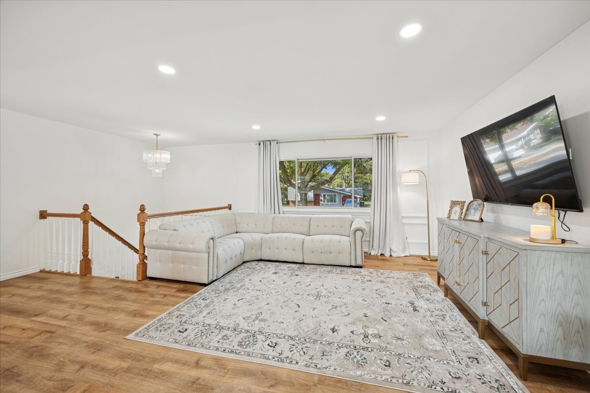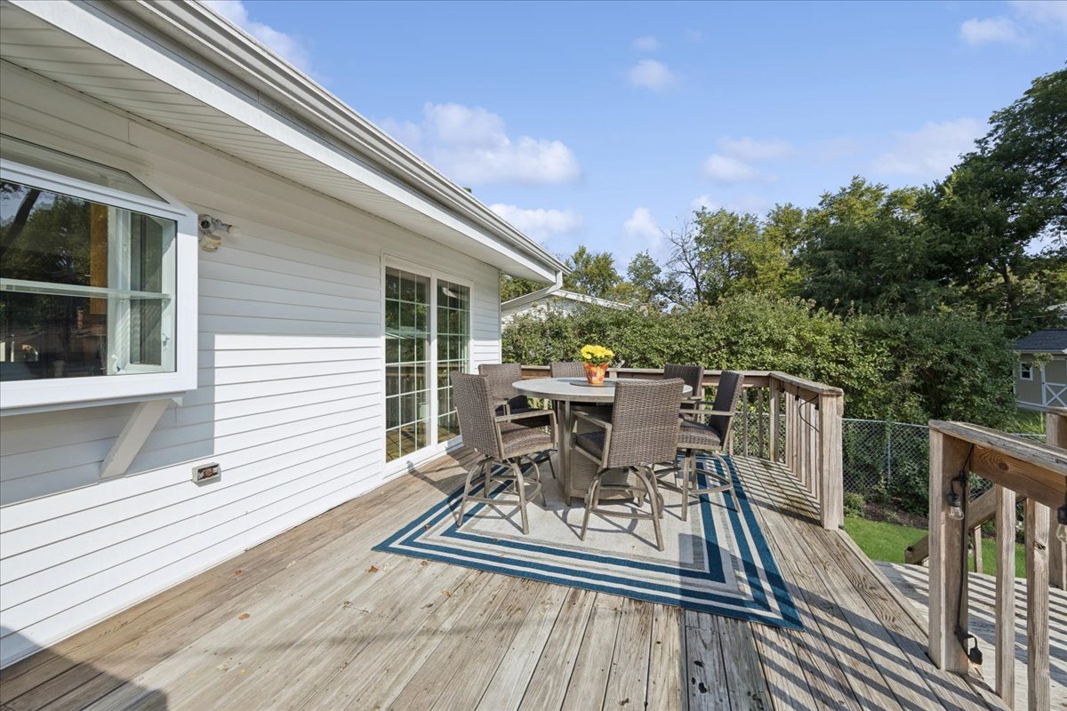 Remodeled Raised Ranch in Excellent Location! This home features an open floorplan, new flooring throughout, and numerous other improvements. The updated kitchen features a large stone island, new cabinets, wine rack, & new lighting. The spacious & private primary suite boasts a walk-in-closet, & primary bath with soaking tub, separate shower, and double vanity. Newly remodeled 2nd bath features marble, double vanity, and elegant fixtures. Step through the new sliding glass door onto your large deck, which overlooks the spacious backyard. The Fenced backyard with newer pergola is excellent for entertaining. Other improvements include new electric in 2024 & Furnace upgraded 2022. Detached 1-car garage. Walk to nearby parks, Arlington Heights Entertainment District, and the Metra Station. This home shows like a model! LOCATION! LOCATION! LOCATION!
