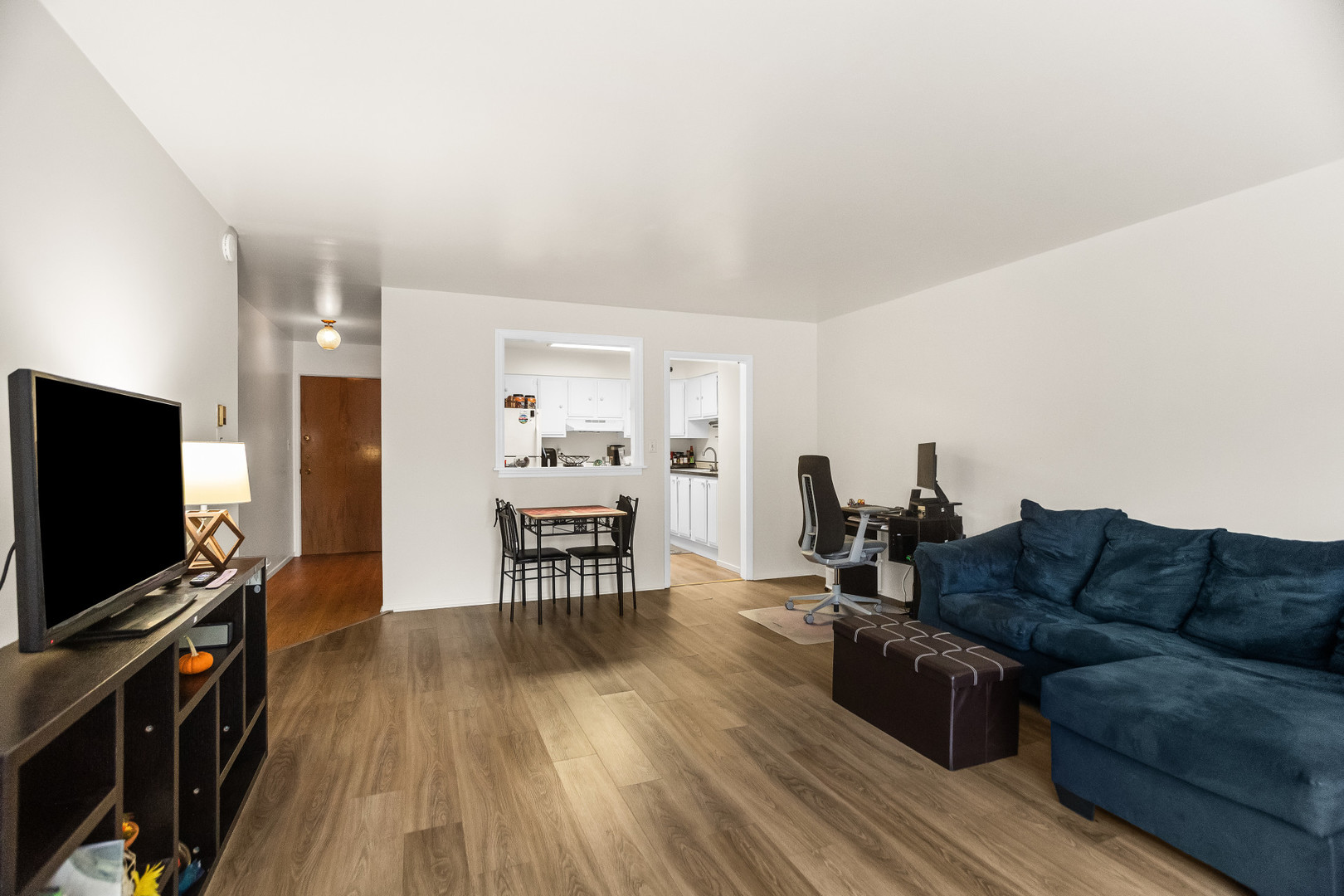 Freshly painted and move-in ready, this spacious 1-bedroom, 1-bath unit is in a well-maintained elevator building close to shops, restaurants, and public transportation-just minutes to downtown Evanston, Old Orchard Mall, and Chicago. Large living room with laminate flooring opens to a private balcony with northern view. The eat-in kitchen features newer appliances and a convenient pass-through to the living area-perfect for entertaining. Generous bedroom with large closet and updated flooring. Additional features include hall bath and large closet, electric baseboard heat, wall A/C, great storage throughout, floor-to-ceiling storage unit and laundry in the basement, and an exterior parking space. Building offers both passenger and freight elevators. Units can be rented after 5 years of ownership.