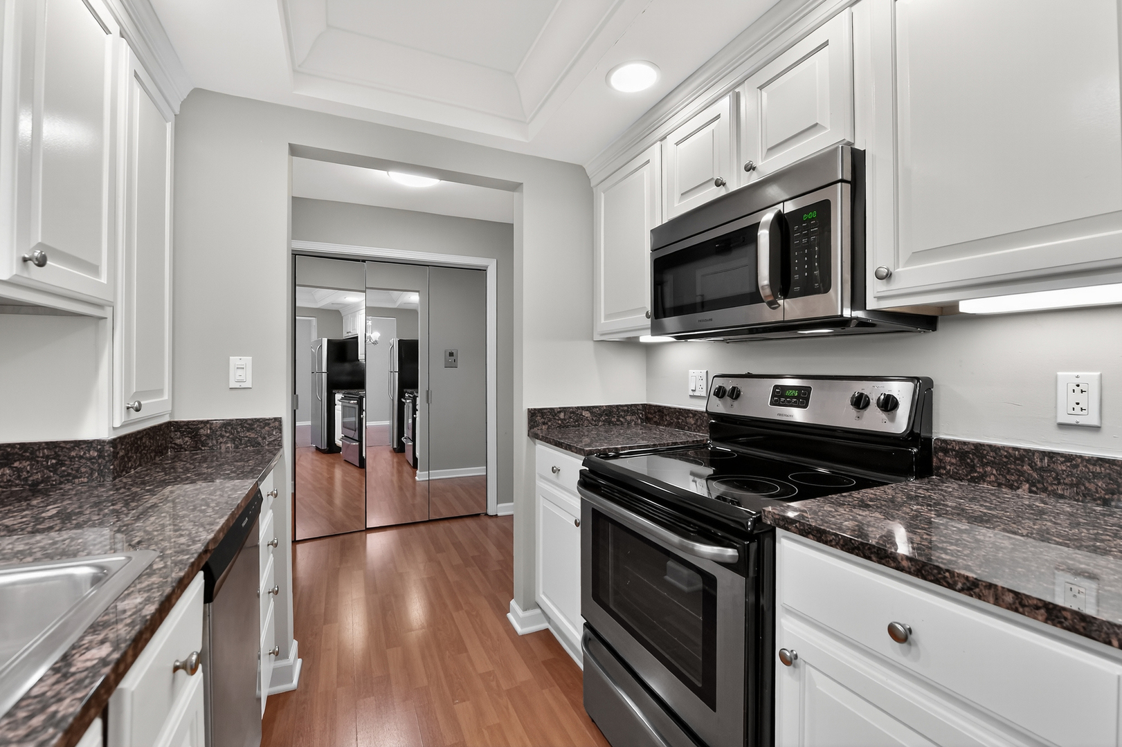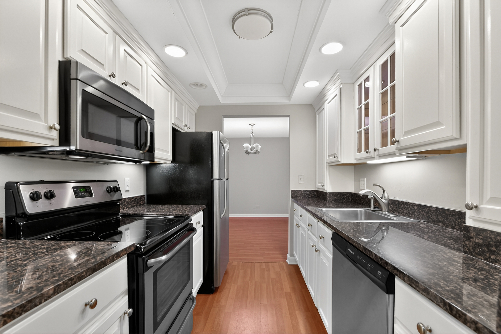 Welcome to this stunning, move-in-ready Bristol Court condo featuring modern updates and timeless style. This spacious unit offers two large bedrooms and two full baths, perfectly designed for comfortable living. Step inside to a generous foyer with a double-door coat closet, leading into an open-concept layout with wood laminate flooring throughout the kitchen, dining, and living areas. The renovated kitchen boasts custom white cabinetry, sleek granite countertops, and stainless steel appliances, perfect for everyday cooking or entertaining. A spacious dining area flows seamlessly into the expansive living room, filled with natural light from a beautiful bay window over looking the forest preserve. The primary suite includes a private en-suite bath and ample closet space, while the second bedroom is equally large and versatile. Additional features include indoor garage parking, a dedicated storage closet, and access to recently renovated hallways, lobbies, and common areas that add to the building’s modern appeal. All this in an unbeatable location, just blocks from award-winning schools, scenic forest preserve trails, and with convenient access to transportation. Don’t miss this incredible opportunity to own a beautifully updated home in Bristol Court!