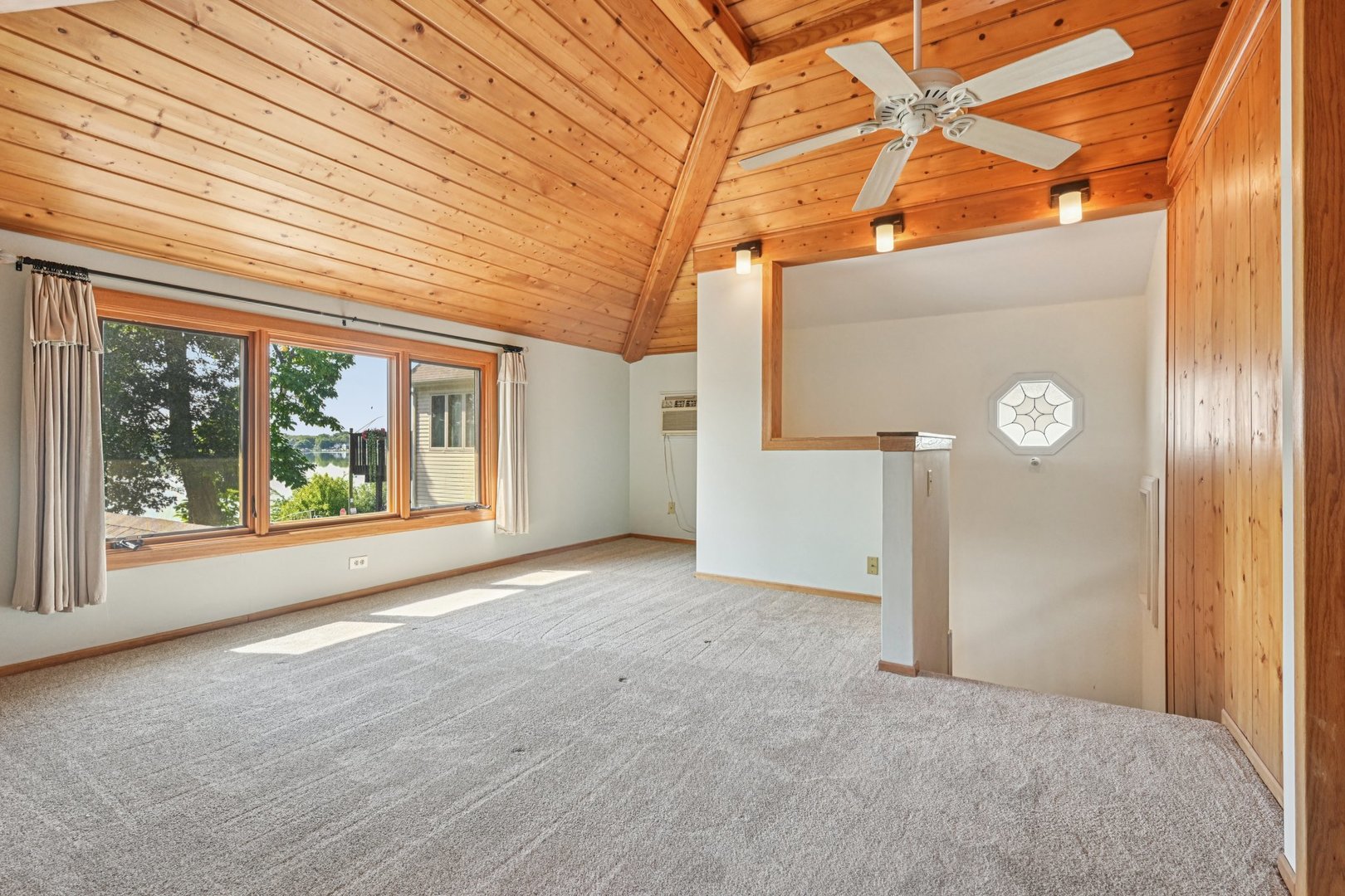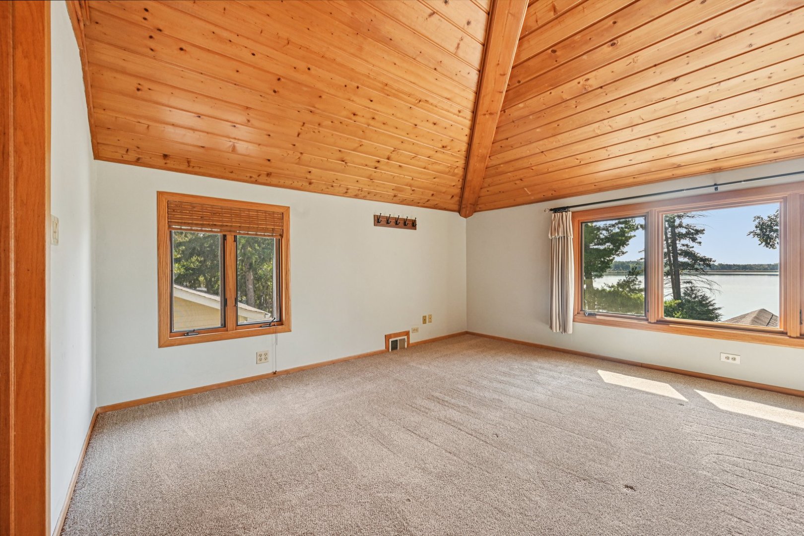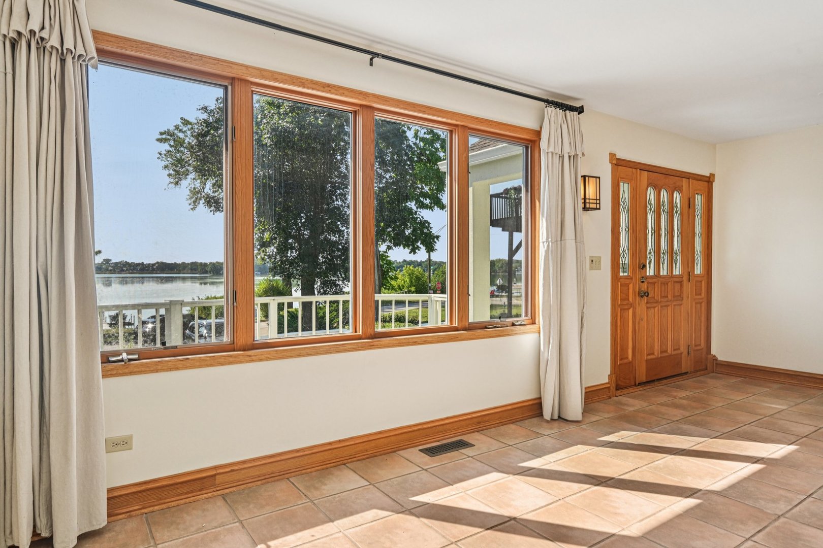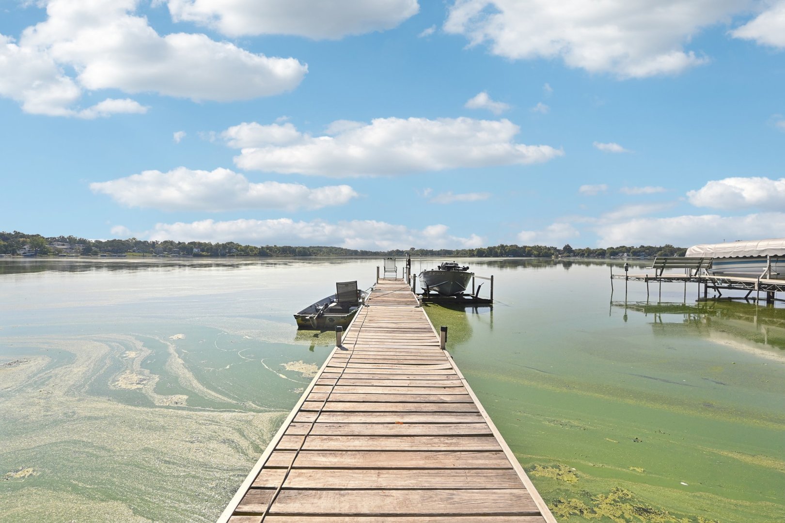 Lakefront living at its best! This home features a private dock and breathtaking water views from multiple vantage points. Relax on the two-level front deck or host gatherings on the spacious rear deck, ideal for barbeques and entertaining. Inside, three bedrooms offer new carpeting while the fourth highlights hardwood flooring, complemented by built-in dressers for added storage and charm. All hardwood floors have been freshly refinished. Large kitchen with stainless steel appliances and under cabinet lighting. Extensive custom woodwork throughout. Come enjoy an evening by the fireplace overlooking the lake.