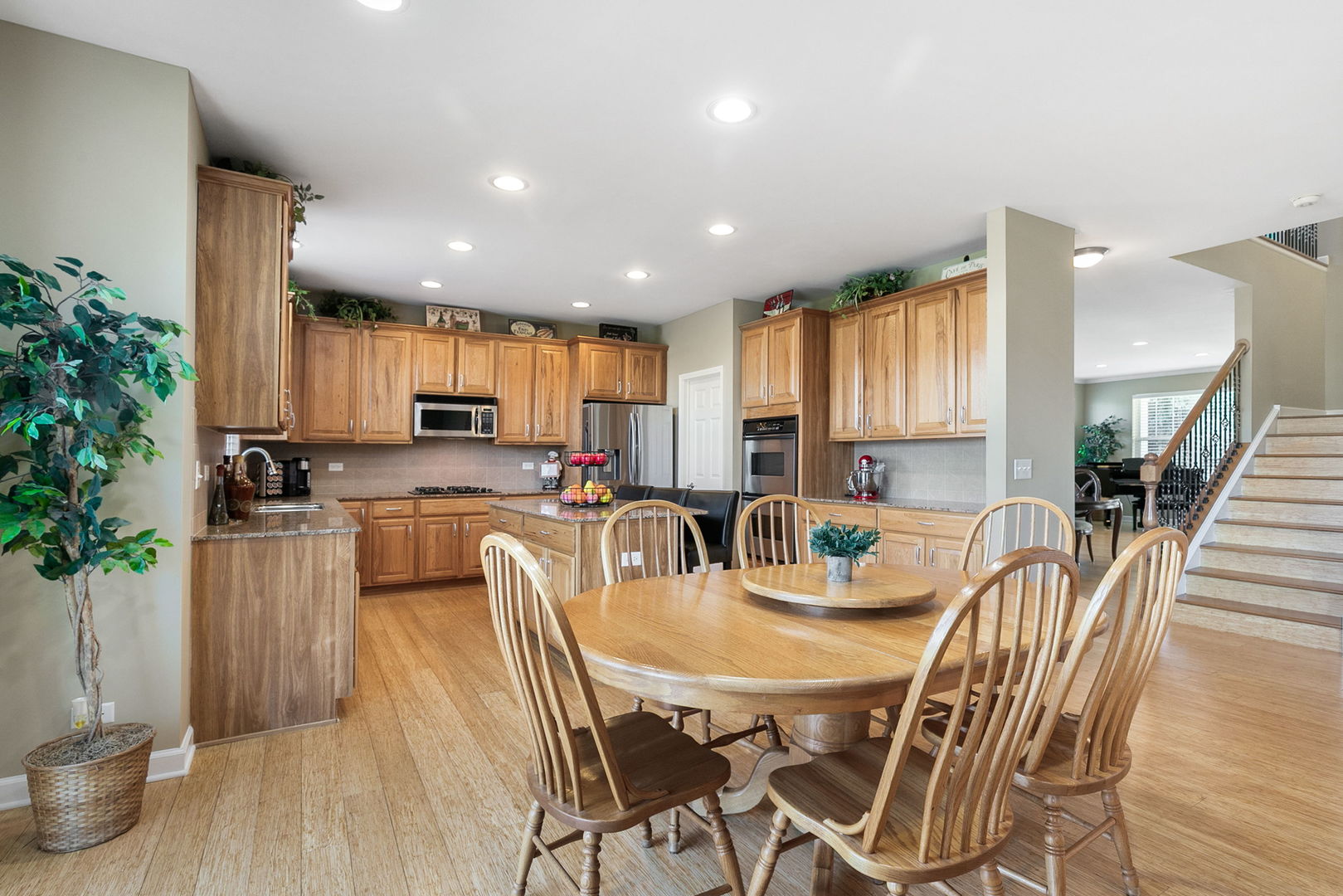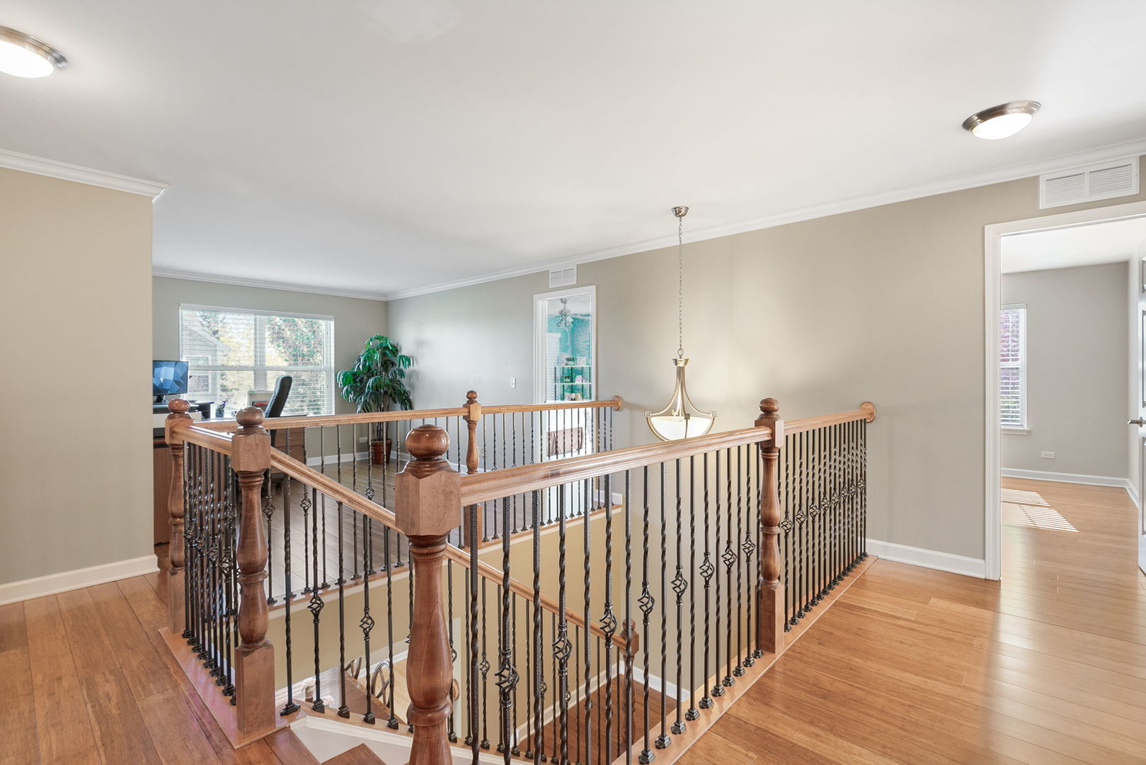 Welcome to Liberty Lakes – where every detail feels like home. From the moment you walk through the front door, you can feel the warmth and character in this beautifully cared-for 5-bedroom, 3.1-bath home. The spacious, light-filled layout is designed for connection – whether you’re hosting family dinners, working from home, or relaxing by the fire. The main floor opens with a bright foyer leading to a welcoming living and dining area, plus a cozy home office with custom built-in bookshelves (perfect for remote work or homework time). The heart of the home is the kitchen – and it’s a showstopper. You’ll love the generous center island, 42″ hickory cabinets, all stainless steel appliances, granite countertops, double oven, and walk-in pantry. The kitchen flows effortlessly into the family room, where a stone-surround fireplace and oversized windows frame peaceful views of the pond. Step outside and you’ll find your own private retreat – a deck leading down to a paver patio with a seat wall overlooking the water, perfect for evenings or weekend entertaining or just sipping your morning coffee taking in the tranquility. Upstairs, the open loft offers flexible space for a playroom, media area, or second office. The primary suite feels like a getaway all its own, with vaulted ceilings, a spa-like bath featuring a soaking tub and walk-in shower, and a large walk-in closet. The other bedrooms are roomy and full of natural light – plenty of space for everyone. The full finished basement adds even more living space, complete with a full bath, large recreation area, and tons of storage. Throughout the home, beautiful bamboo flooring adds warmth and flow. You’ll love the curb appeal too – a charming covered front porch with stone accents, a 3-car garage, and a location that’s second to none. Liberty Lakes is one of Wauconda’s most loved neighborhoods, with parks, trails, and great schools nearby. This home truly has it all – space, comfort, style, and a view that makes you breathe a little deeper and feel a little calmer. Come see why life feels better in Liberty Lakes. Welcome home!