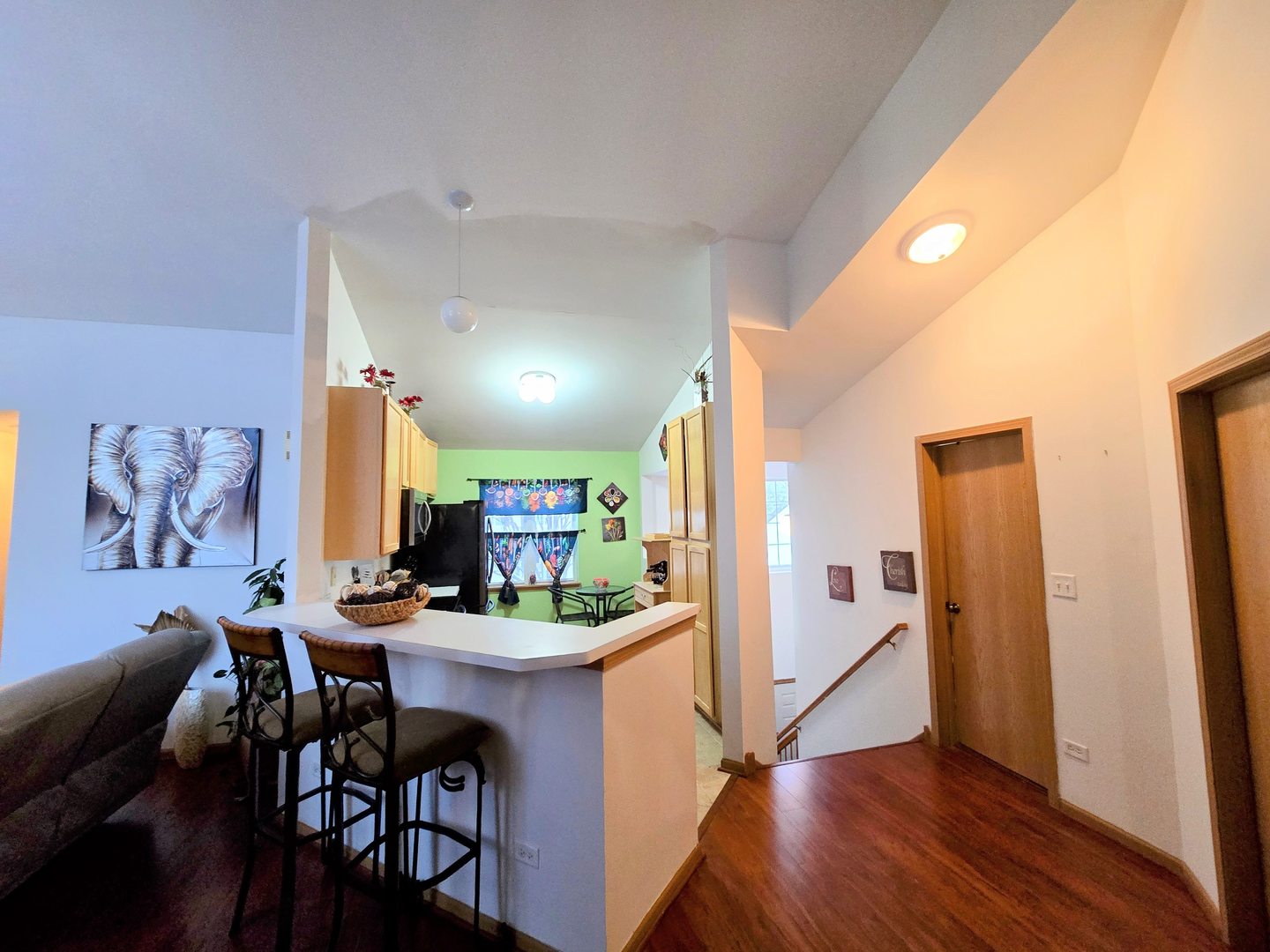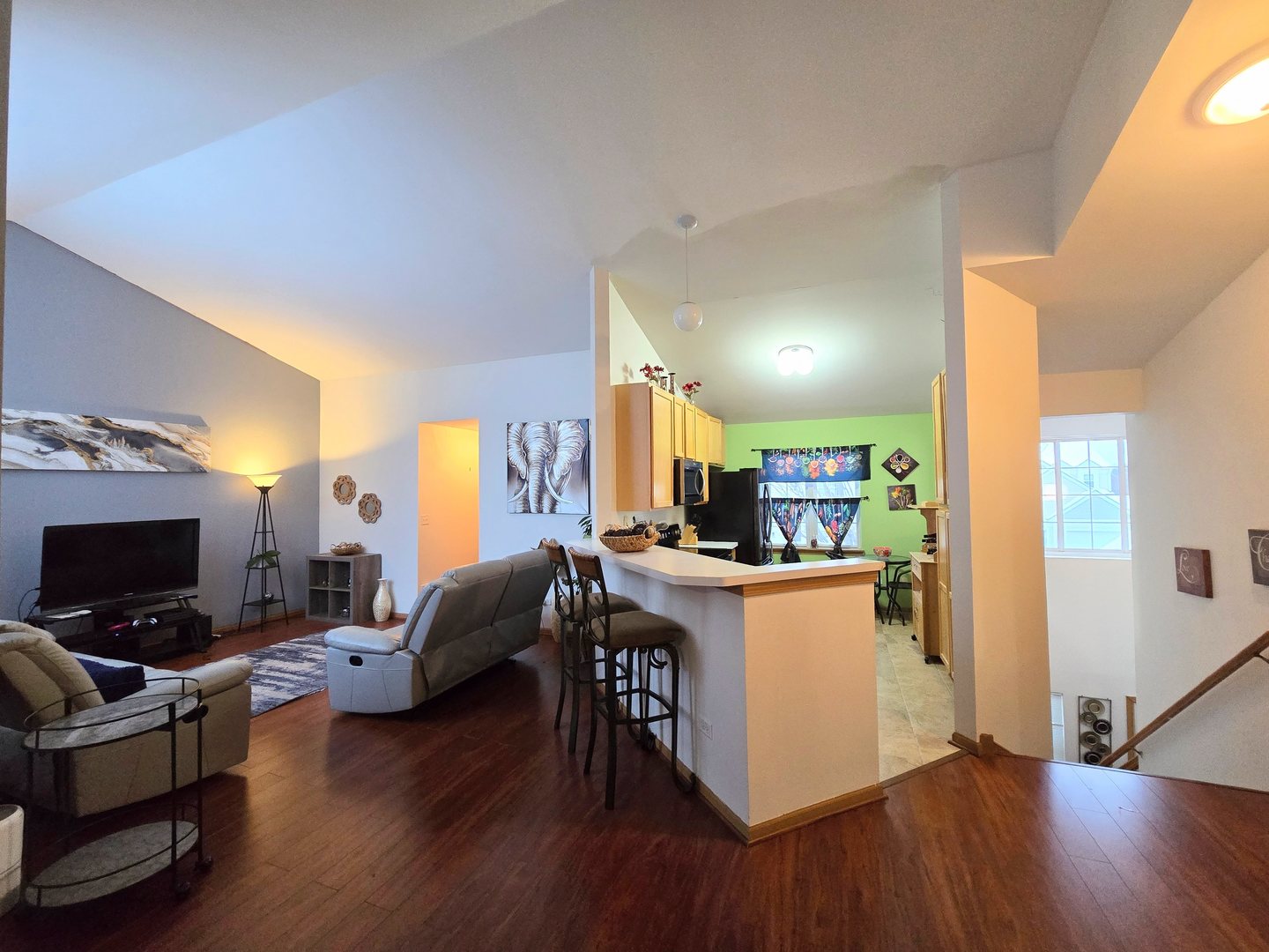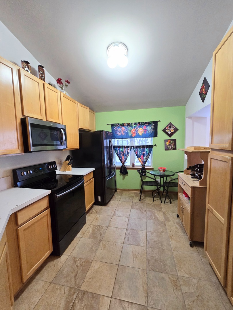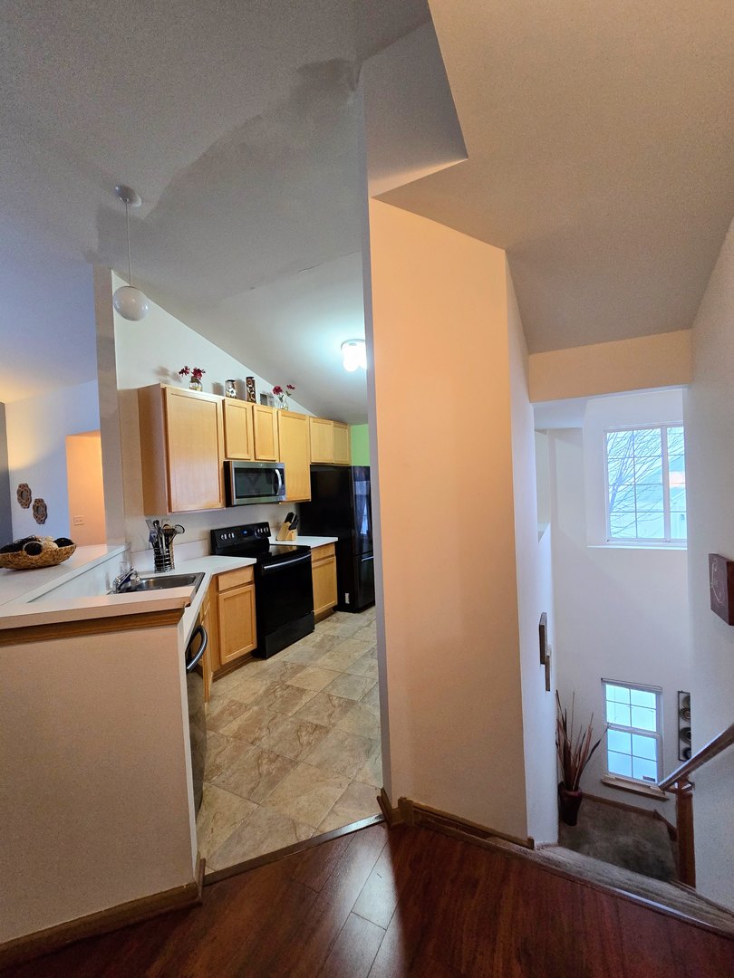 Naperville # 204 Neuqua Valley High School! Fantastic 1304 SF 2 Bedroom, 2 Bath upper level ranch style unit with private entrance and 1 car attached garage! Open floor plan with vaulted ceilings, Kitchen with 42″ cabinets and breakfast bar opens to spacious living and dining area! Big primary bedroom with walk in closet and ensuite bathroom. Second bedroom has double doors, vaulted ceiling and a double closet. 2nd full bath with shower/tub combo. Nice balcony to relax and enjoy coffee or cocktails. In unit Laundry Room. Private entrance with foyer and coat closet.1 year old HVAC with transferable warranty! Close to shopping, dining, and entertainment! Priced to sell, Hurry!