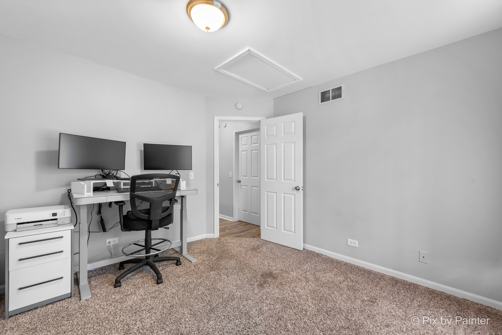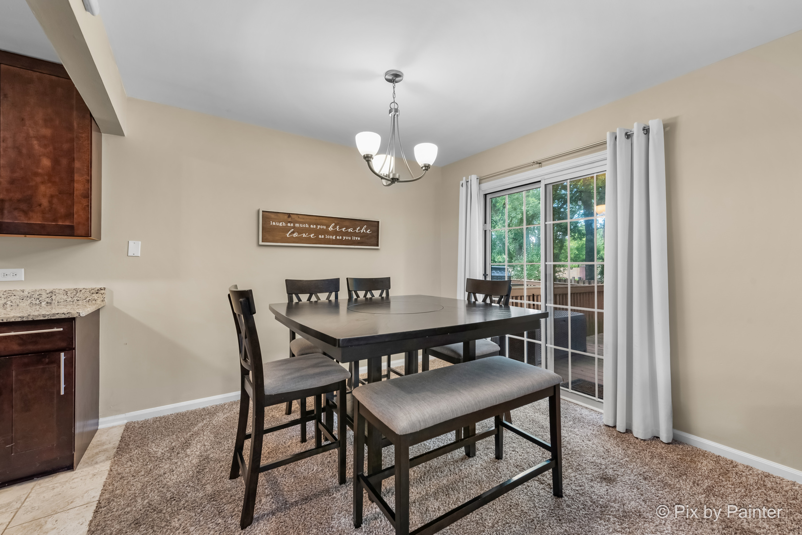Don’t miss the opportunity to own this beautiful, well-maintained townhome in Elgin! Step inside to an open-concept main level featuring a spacious living and dining area, perfect for entertaining! The extra-wide updated kitchen has all stainless steel appliances, granite countertops, and a generous closet pantry. Access your private deck directly from the dining area, ideal for those who love to grill! Upstairs, you’ll find a bright and airy design with cathedral ceilings and a large skylight that fills the space with natural light. The oversized primary bedroom offers a private vanity area and direct access to the shared full bathroom. The second bedroom completes the upper level. The freshly painted finished basement provides even more living space, with durable LifeProof luxury vinyl flooring, perfect for a recreation room or private home office. You’ll also find a full laundry room and a large storage area with built-in shelving and a rough-in for a future bathroom. Enjoy the convenience of direct access to your private oversized one-car garage, complete with a custom built-in workbench. Highly desired location, just one block from everything Randall Road has to offer, with quick access to Route 20, Aldi, Target, Marcus Theater, restaurants, and a variety of shopping centers!