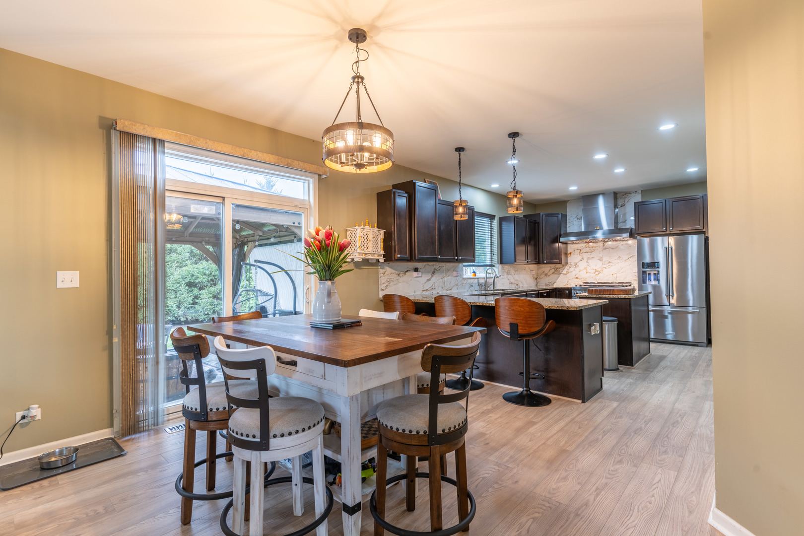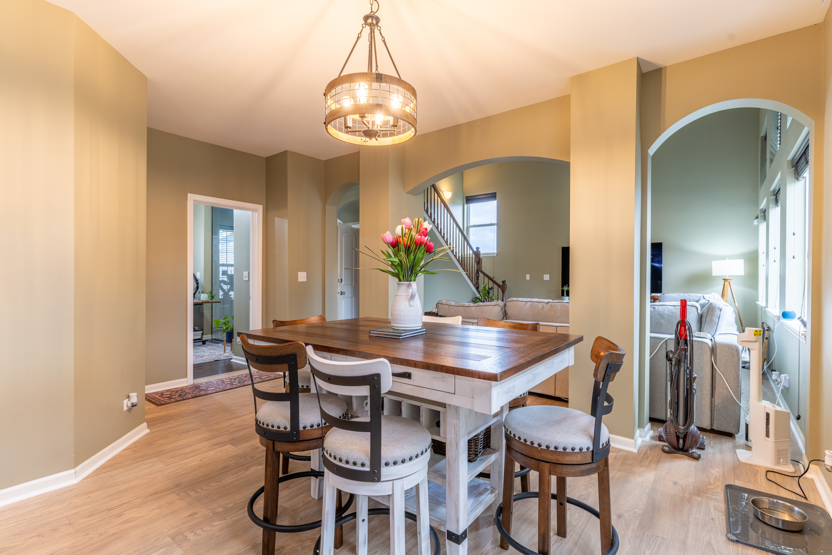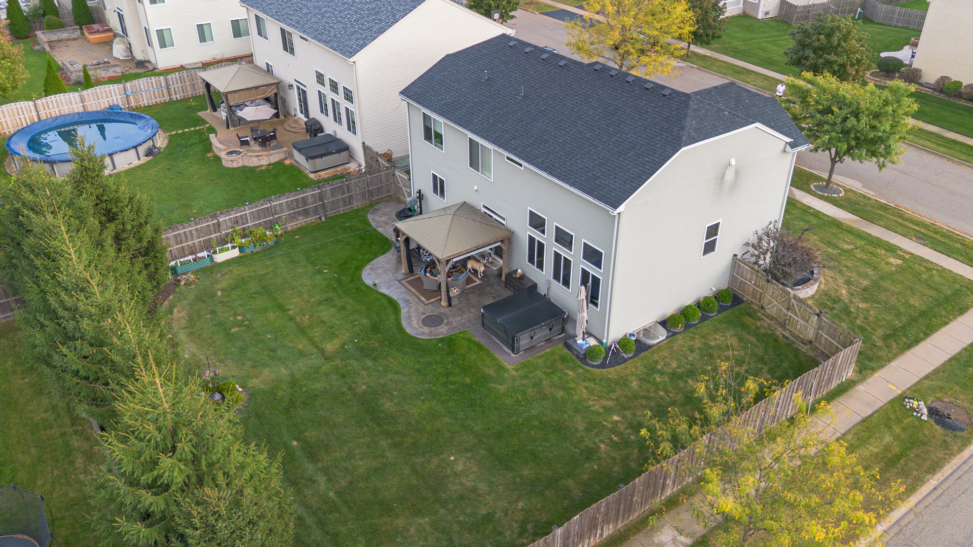 This striking brick exterior sets an impressive tone, while the professionally designed landscaping-with a pergola, stamped concrete patio, and lush vegetation-creates a private outdoor oasis. Step inside to a show-stopping two-story family room bathed in natural light, ideal for lively gatherings or cozy evenings at home. The chef-inspired kitchen is truly the heart of this home, featuring top-of-the-line KitchenAid stainless steel appliances, a spacious island with breakfast bar, and upgraded finishes throughout. Enjoy four generous bedrooms and two-and-a-half baths, providing comfortable space for everyone. New flooring flows seamlessly throughout the main level, creating a fresh, contemporary feel in every room. Retreat to the full basement-ready to be transformed into your future home theater, fitness studio, or the ultimate play space. This beautifully upgraded, move-in ready home offers a rare combination of luxury, comfort, and location. Don’t miss your chance to live in a highly sought-after neighborhood-schedule your private tour today!