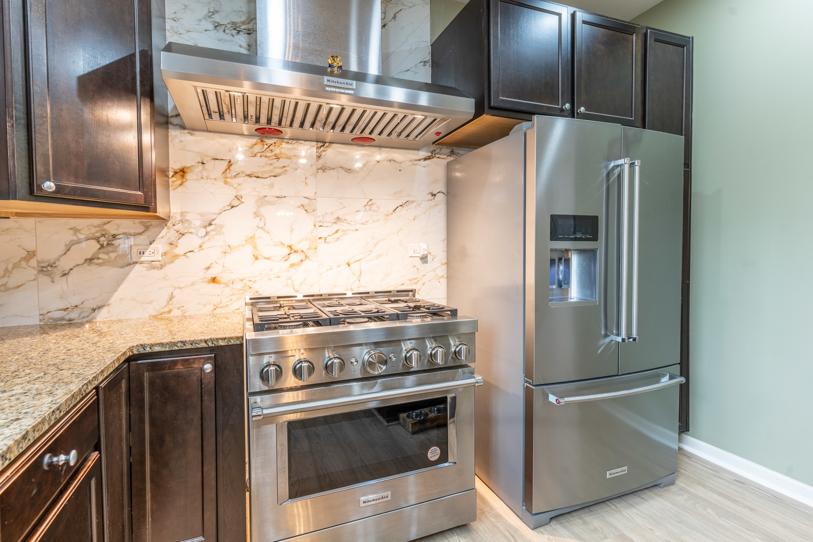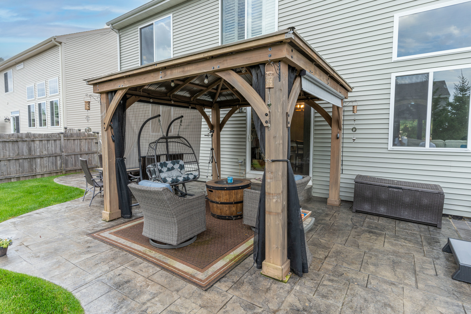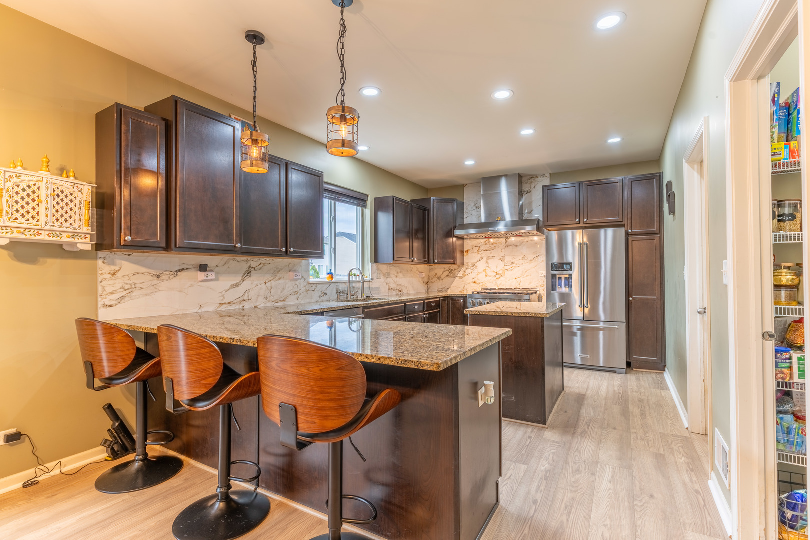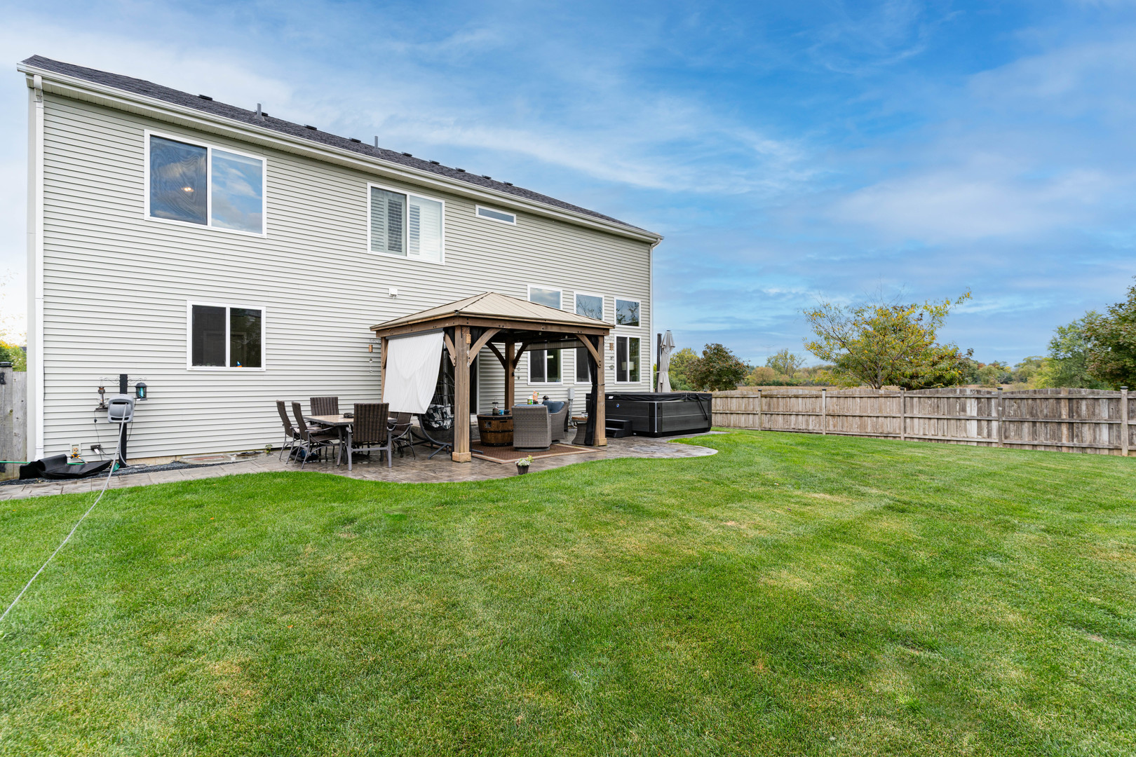 This striking brick exterior sets an impressive tone, while the professionally designed landscaping-with a pergola, stamped concrete patio, and lush vegetation-creates a private outdoor oasis. Step inside to a show-stopping two-story family room bathed in natural light, ideal for lively gatherings or cozy evenings at home. The chef-inspired kitchen is truly the heart of this home, featuring top-of-the-line KitchenAid stainless steel appliances, a spacious island with breakfast bar, and upgraded finishes throughout. Enjoy four generous bedrooms and two-and-a-half baths, providing comfortable space for everyone. New flooring flows seamlessly throughout the main level, creating a fresh, contemporary feel in every room. Retreat to the full basement-ready to be transformed into your future home theater, fitness studio, or the ultimate play space. This beautifully upgraded, move-in ready home offers a rare combination of luxury, comfort, and location. Don’t miss your chance to live in a highly sought-after neighborhood-schedule your private tour today!