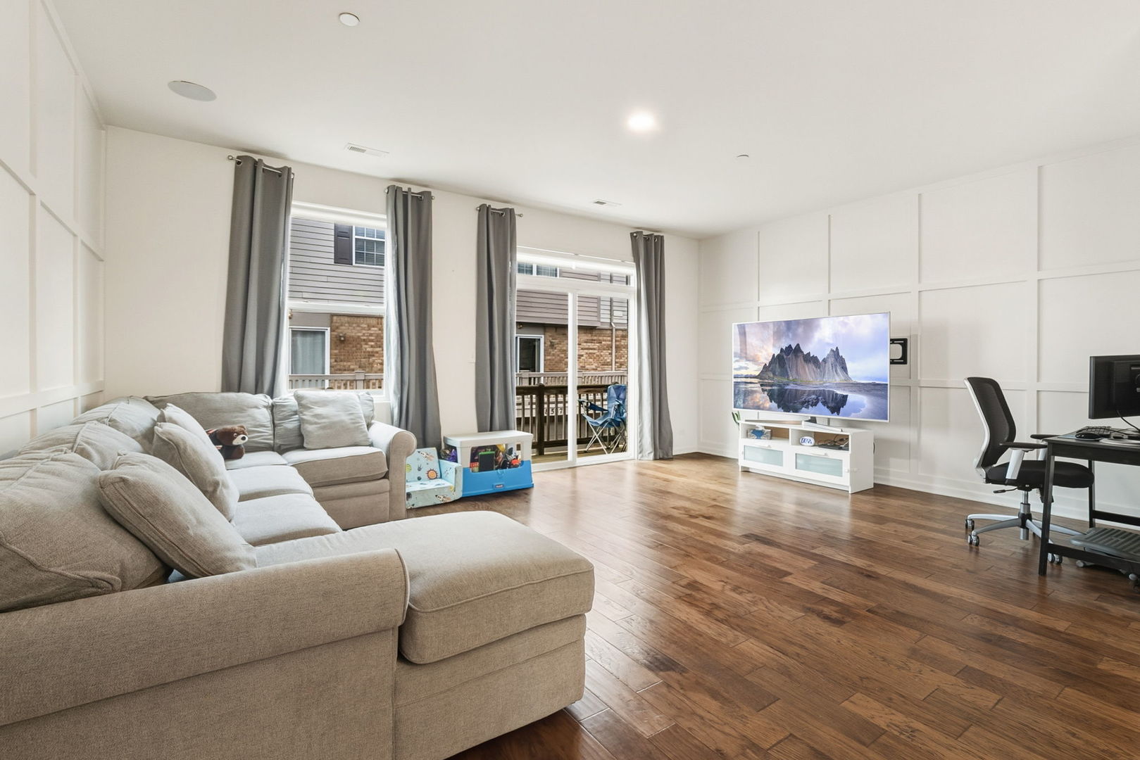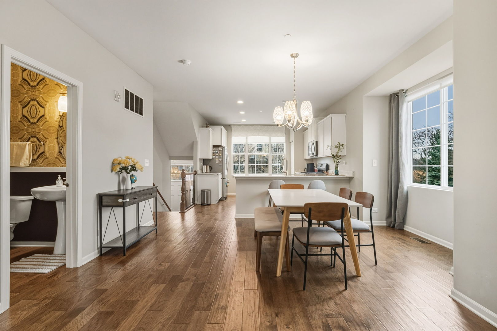 Gorgeous light filled corner townhouse located in Trafalgar Woods offering serene views of Miami Woods! This former Grand Lincoln model home features 3 bedrooms, 2.5 baths, a lower-level versatile bonus space (perfect for a den or office), and an attached two-car garage. The home features many updates and extras including custom window treatments, accent walls, closet organizers, sound system and more! The main level, with its soaring ceilings and custom accent walls, balcony and beautifully designed kitchen with ample quartz countertops is the perfect entertaining space. The generous primary suite serves as a true oasis with a luxurious bath and large walk in closet. For convenience, the laundry is also located on the 2nd floor. Ideally located close to top rated schools, shopping, dining, Metra and expressways. Come and see this amazing home today!