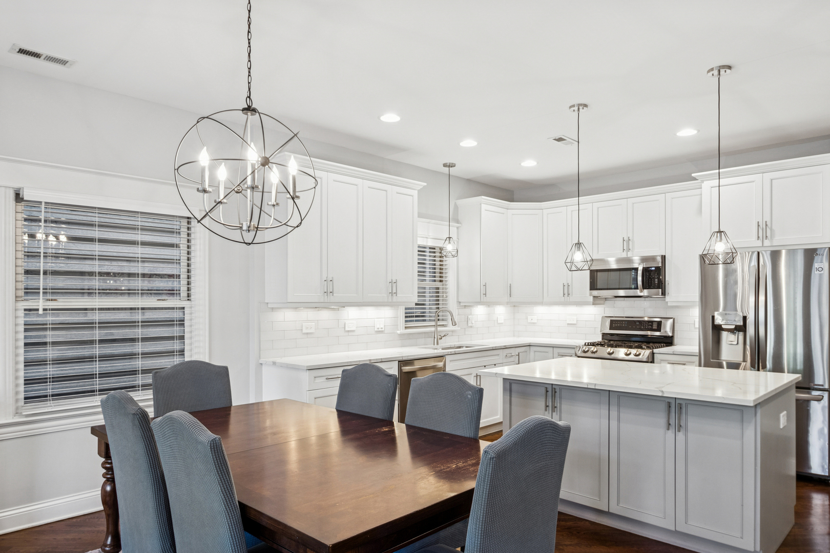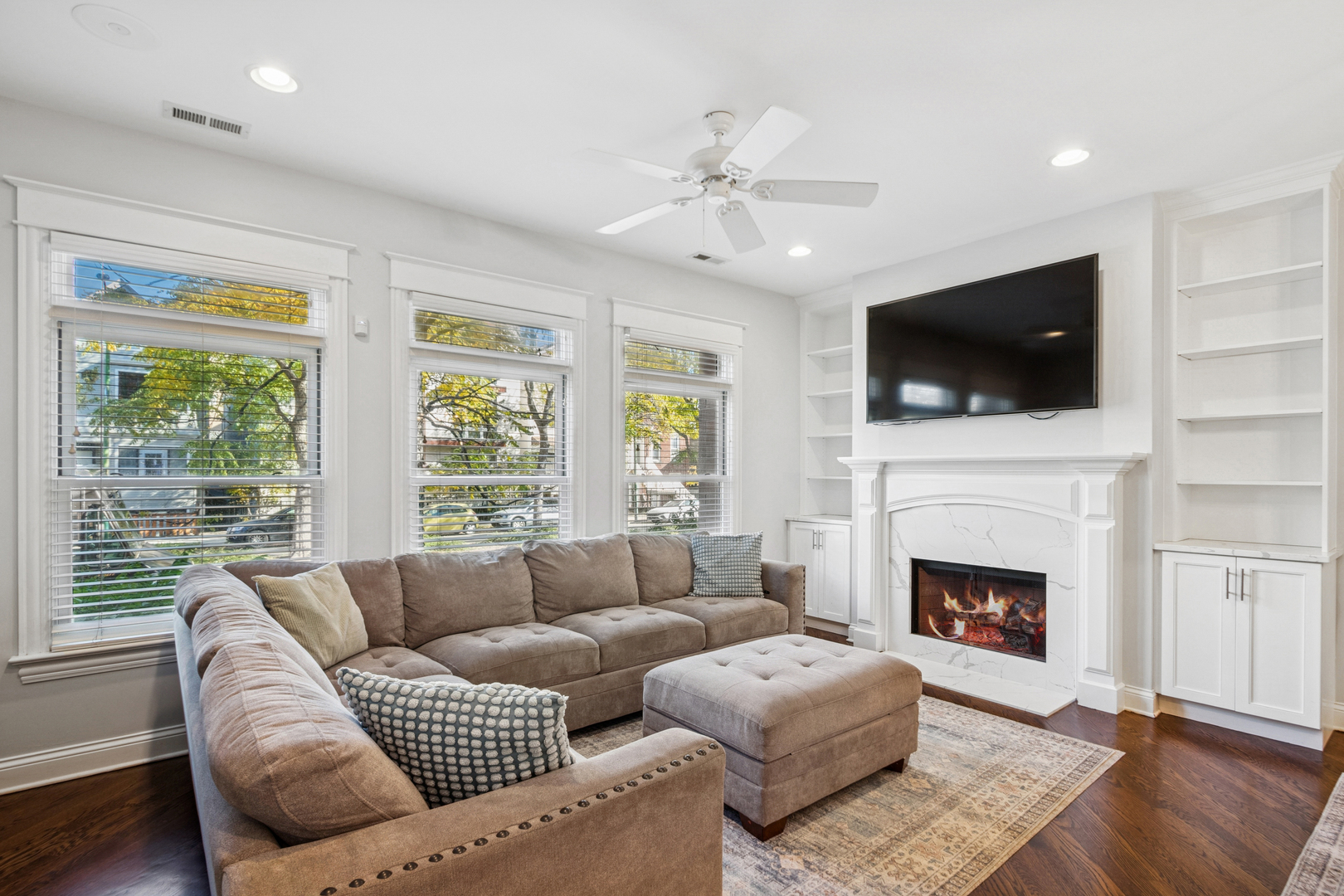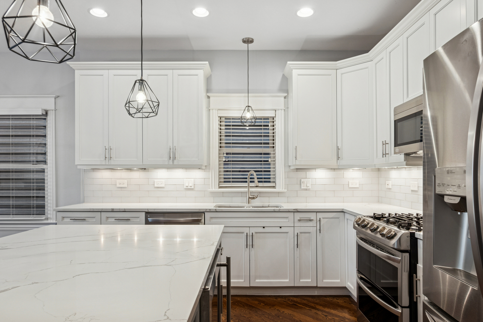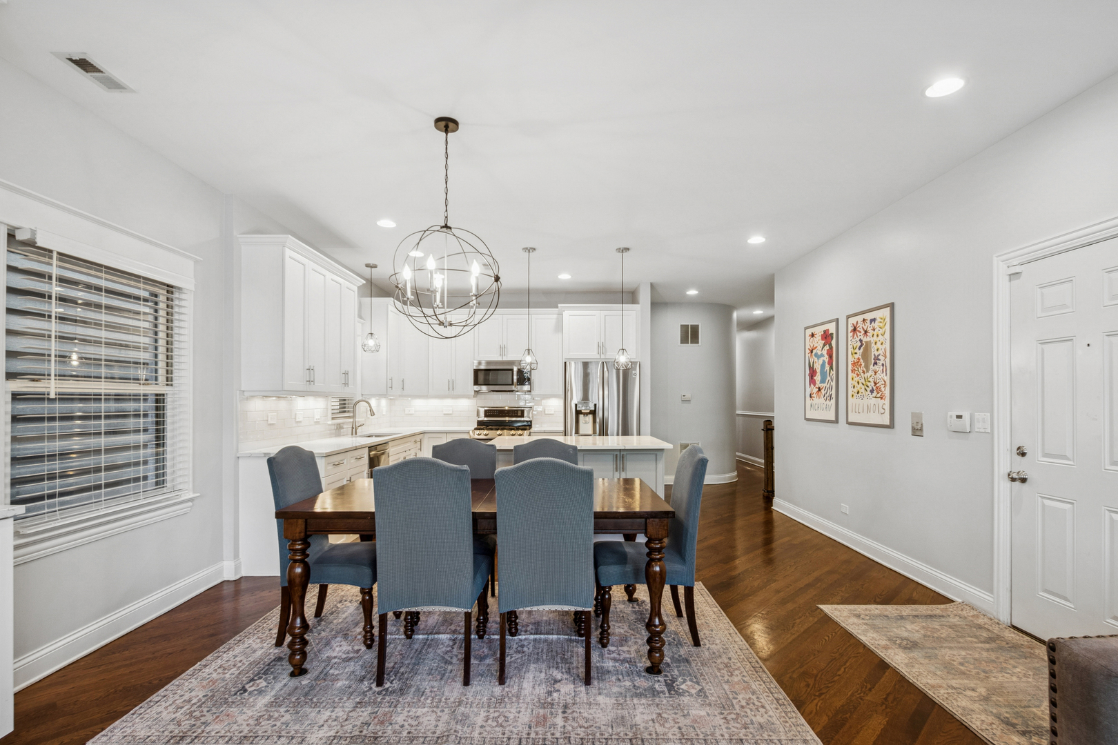 Stunning 2,700 sq. ft. duplex down in an intimate 6-unit building in the heart of Lincoln Park. This spacious condo features an open-concept layout with a newly updated kitchen boasting stainless steel appliances, granite countertops, a glass backsplash, and a wine fridge. The primary bathroom has also been beautifully refreshed with modern finishes. Hardwood floors flow throughout the main living areas and bedrooms, complemented by two gas fireplaces and custom built-ins. Enjoy a private back deck perfect for entertaining, plus a large private storage closet and side-by-side washer/dryer. One garage parking space included. Prime location near top-ranked Prescott School, Wrightwood Park, CTA, shopping, dining, and expressway access. Broker owned.