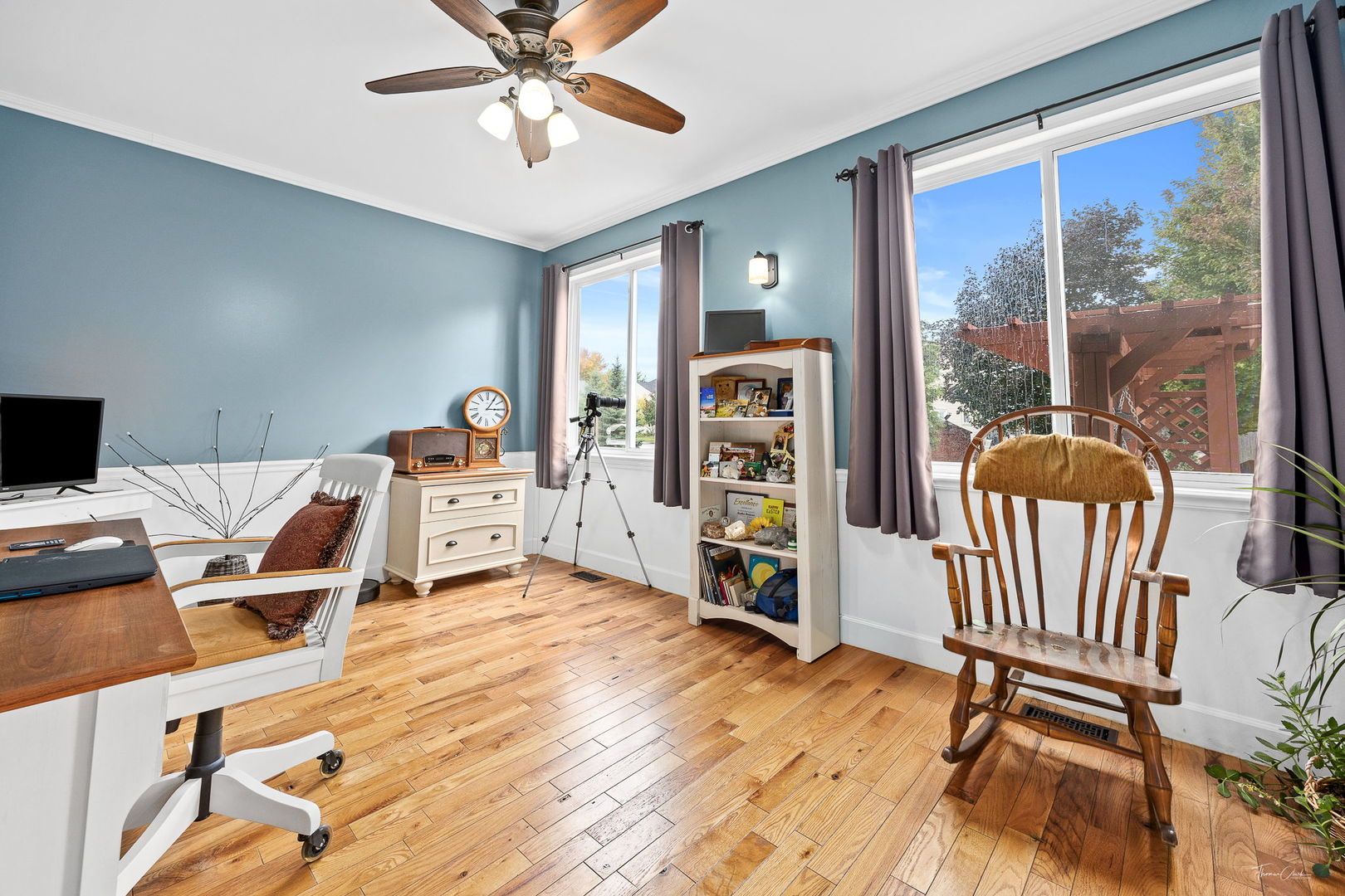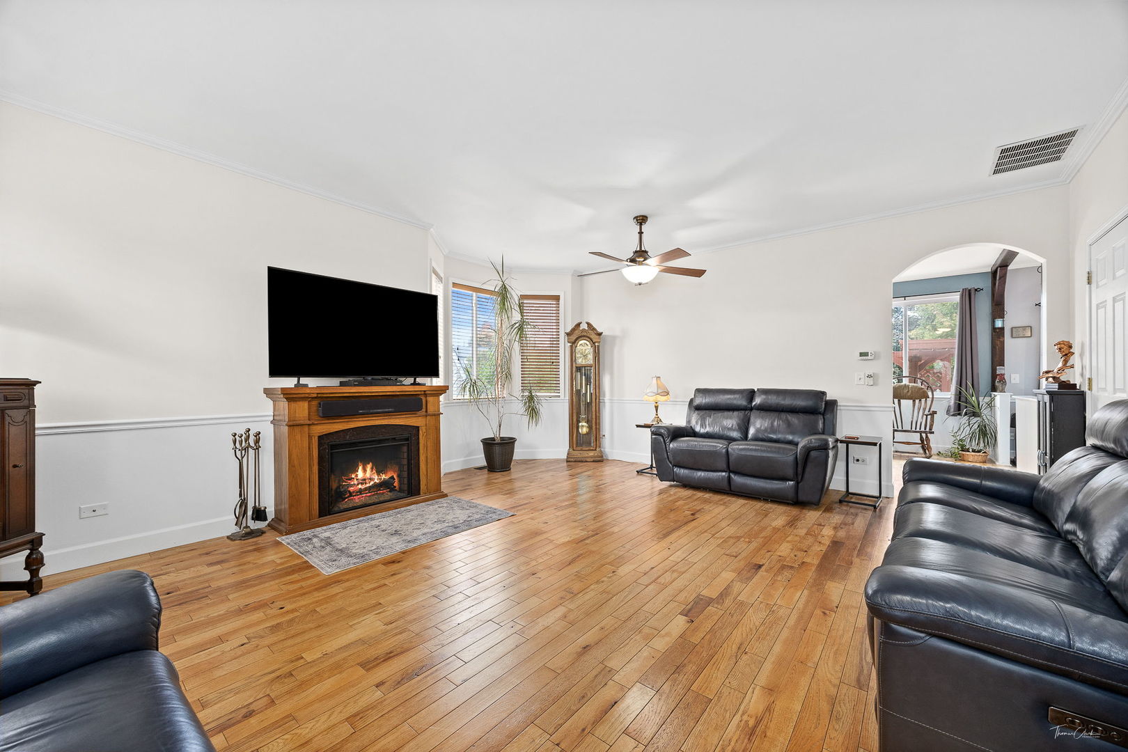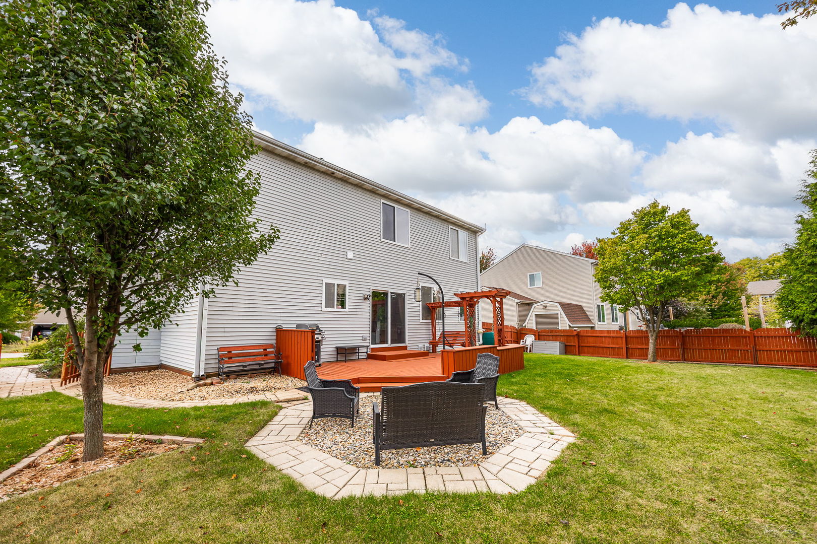 Step inside this beautifully designed home where warmth and style meet at every turn. All-hardwood floors flow seamlessly throughout, creating a timeless backdrop for everyday living. The main level offers open, inviting spaces perfect for entertaining or quiet evenings at home. Upstairs, you’ll find four spacious bedrooms and a convenient laundry room. The primary suite is your own private retreat, while the expansive loft-bathed in natural light-can easily transform into a fifth bedroom, home office, or playroom. The lower level adds even more flexibility with a partially finished basement that includes a full bath-ideal for guests, hobbies, or future expansion. Step outside to a fenced-in backyard designed for relaxation and connection. A large deck overlooks scenic views and meticulous landscaping, complemented by brick pavers that add charm and character to the outdoor space. With a 2.1-car extended garage, there’s room for storage, projects, and every adventure ahead. Every detail has been thoughtfully designed for comfort, beauty, and function-ready for you to call it home.