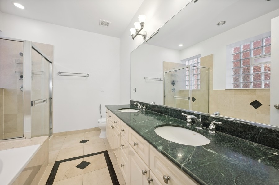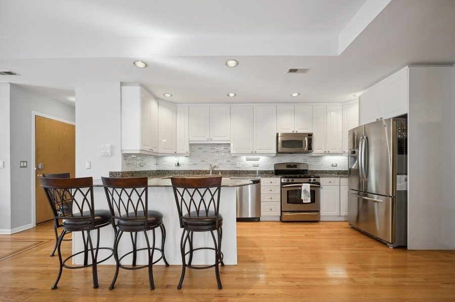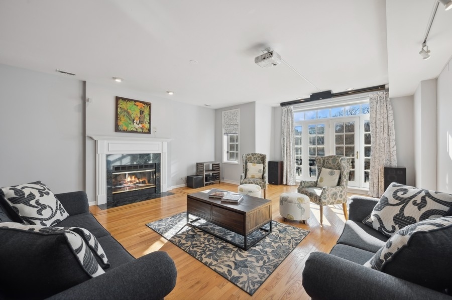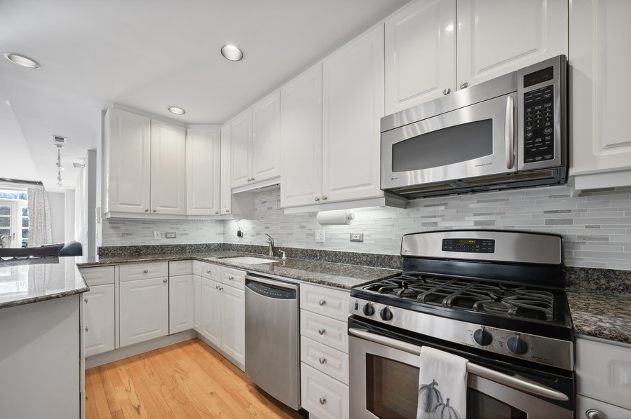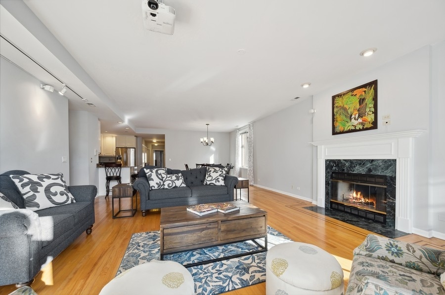 Spacious 2 Bed / 2 Bath Condo in Prime Lincoln Park Location This expansive end-unit condo is nestled in the heart of Lincoln Park and offers everything you need for luxury city living. Enjoy the convenience of a private garage with side-by-side parking for two cars and interior stair access. The all-brick building features a thoughtfully designed split-bedroom floor plan, with beautiful custom hardwood floors throughout, and recessed and track lighting. The living room and primary suite are wired for sound, making entertaining or relaxing a breeze. The kitchen boasts stainless steel appliances, granite countertops, undermount lighting, and breakfast bar. The oversized primary bedroom includes dual walk-in closets and an en-suite bath with double vanity, jacuzzi tub, and separate walk-in shower. Step out onto a large private balcony off the primary bedroom. A full laundry room with side-by-side washer/dryer adds extra convenience. Additional features include a wood-burning fireplace with gas starter, ample storage with a coat closet and two hallway closets, and easy access to the garage from Halsted. Unbeatable location – just a short walk to the Red, Brown, and Purple lines, as well as major bus routes. Zoned for highly-rated Alcott Elementary and Lincoln Park High School.