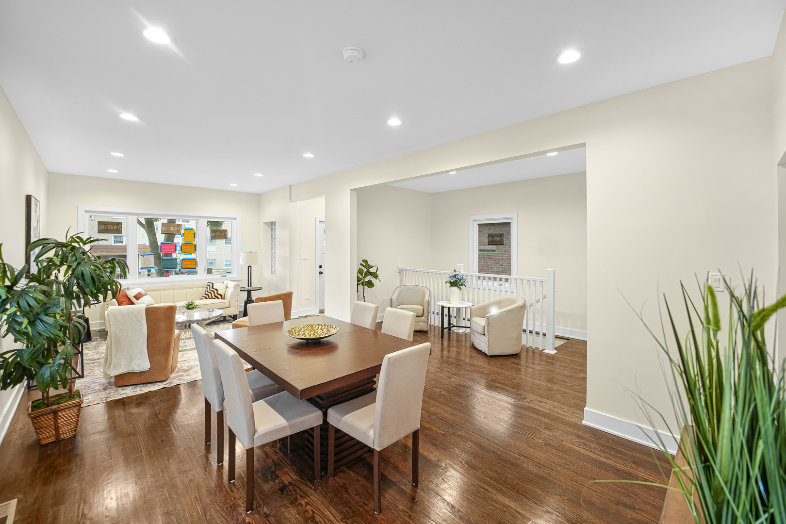 Beautifully remodeled in 2025, this spacious 6 bedroom, 3 bath single family home offers 2,952 sq. ft. of modern living. The open layout features updated flooring, sleek finishes, and a bright, contemporary kitchen designed for entertaining. The home once included a rear unit, now being converted into a large garage, providing extra storage or workspace. Located in the heart of Elmwood Park, enjoy quiet, tree-lined streets with easy access to downtown Chicago, major highways, parks, and top-rated schools. A perfect blend of space, style, and convenience. Move right in and start living. Backyard will be mulched prior to close and garage will be completed soon.