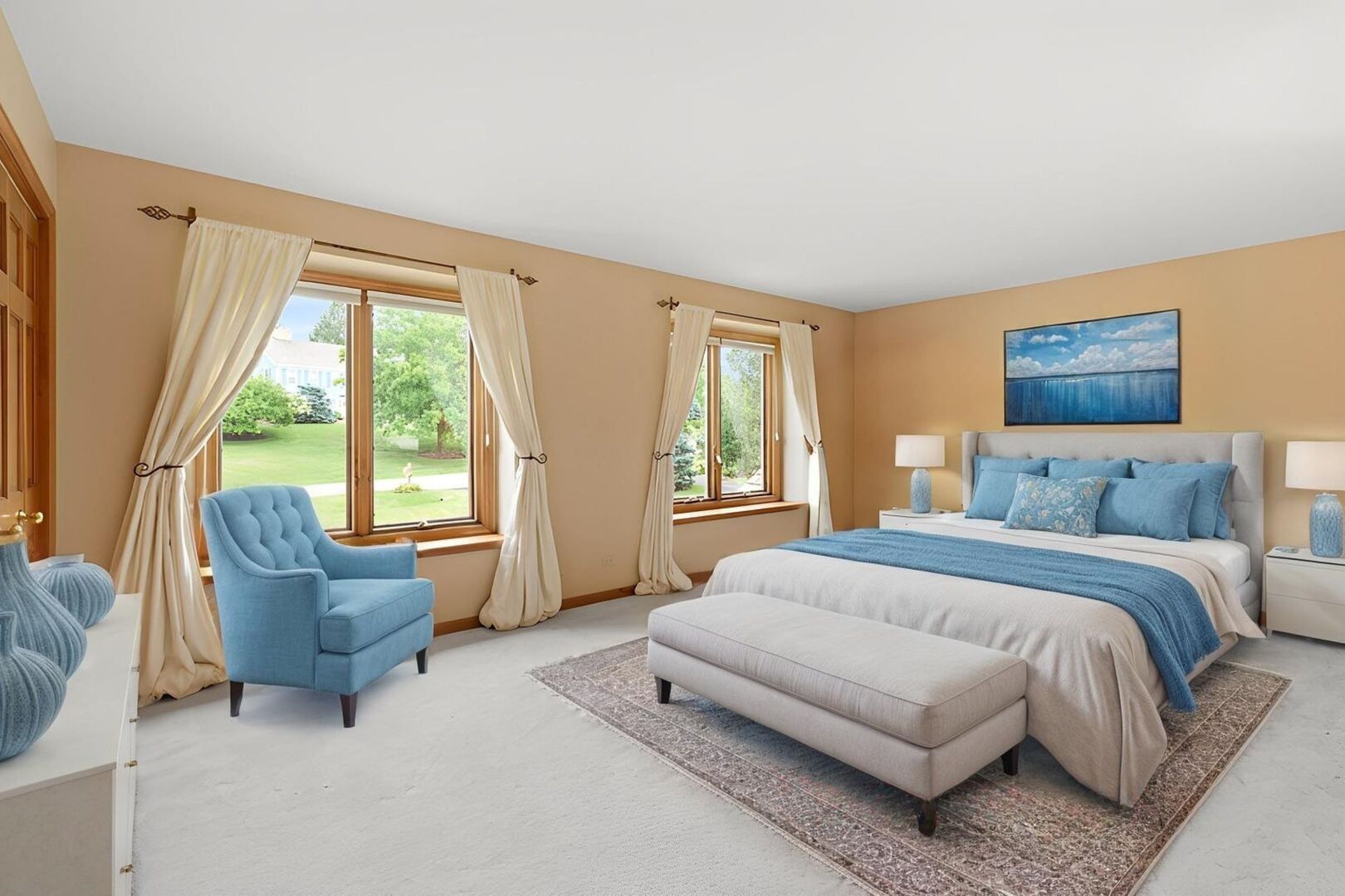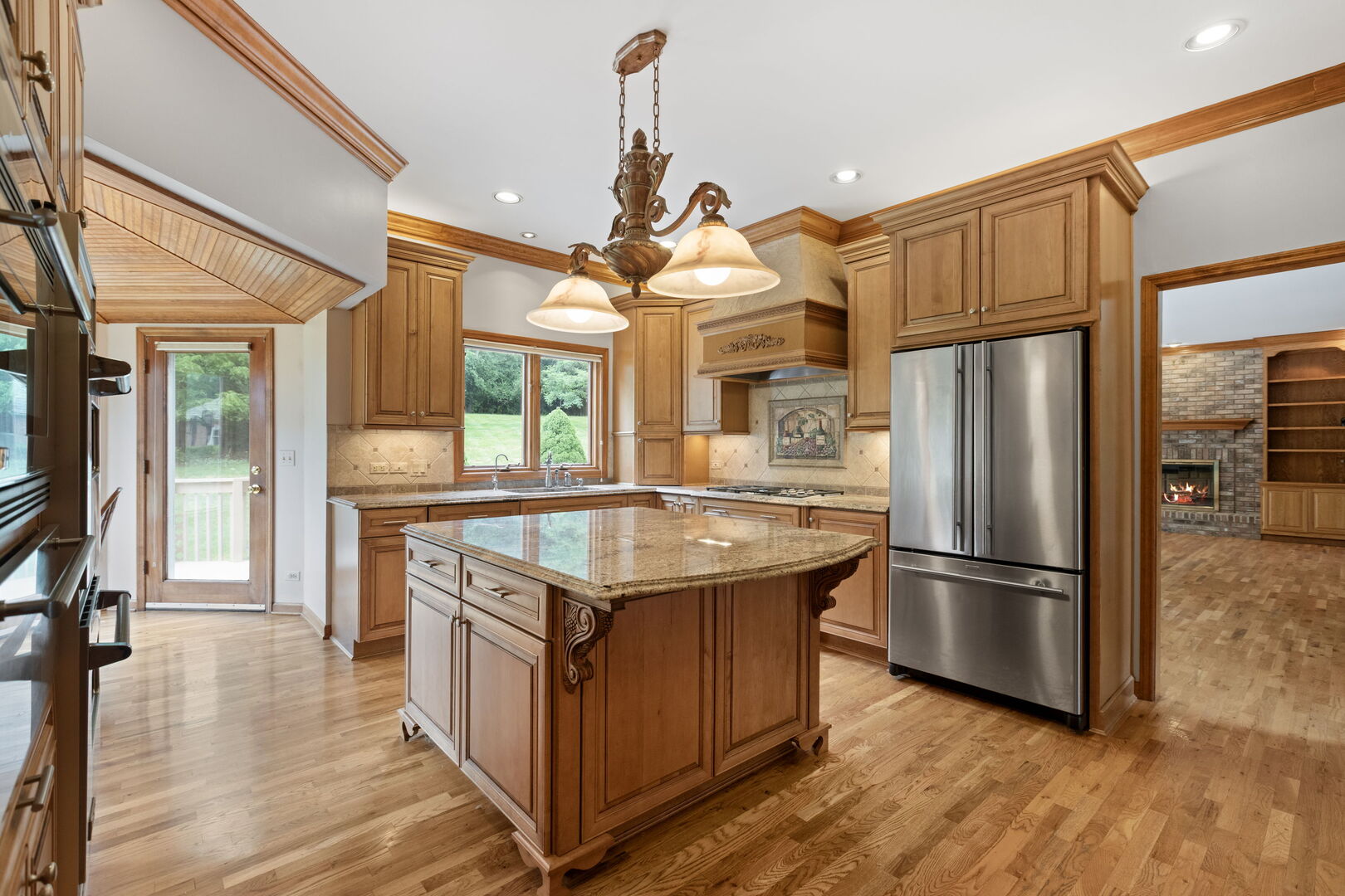 Farm Trails offers a new way of life, one with an incredible balance of recreation, relaxation and a sense of community. Sited blocks from Grassy Lake Forest Preserve with extensive hiking trails, bridges and miles of scenic and natural habitat. 25410 Cayuga offers convenience along with a stunning elevation proudly set on over an acre. The front entrance showcases a 2-story foyer with sprawling windows, guest closets and extensive wainscoting. Adjacent to the foyer is an expansive living room with oversized windows looking into the front yard, an ideal space for a first-floor office should one be desired. On the opposing side of the foyer is an elegant dining room with tray ceilings, wainscotting, custom paint design and access to an exemplary eat-in kitchen. The kitchen is finished with 42″ Maple cabinets with glass facades and custom built-ins ranging from spice racks, pan dividers, 2-tier drawers with sliding utensil organizers and a designated drawer to preserve bread. Granite counters, high-end stainless steel Viking double oven, Wolf range and vaulted turret breakfast room with access to the deck puts this kitchen in a class of its own. Adjacent to the kitchen is a phenomenal family room with a wet bar, built-in bookcases complimenting the fireplace and access to the deck. The main floor also offers hardwood floors throughout, 2 powder rooms and a generous laundry room. The second floor is equally impressive with wainscotting leading the way to 4 oversized bedrooms and 3 full bathrooms. 1 of 4 bedrooms is the primary suite with enough space to accommodate a king size bedroom set along with his and hers walk-in closets with custom organizers and a primary bath that gives spas a run for their money. The primary bath is complete with 2 separate vanities, Jacuzzi tub, shower and separate water closet. The remaining 3 bedrooms share 2 full bathrooms, 1 bathroom offers a soaking tub, separate shower and double vanity while the other bathroom is finished with a single vanity and shower/tub combination. Full unfinished lower level and a 3-car attached garage. Serene private yard with mature trees and a brilliantly designed deck the width of the home equipped with an electric canopy.