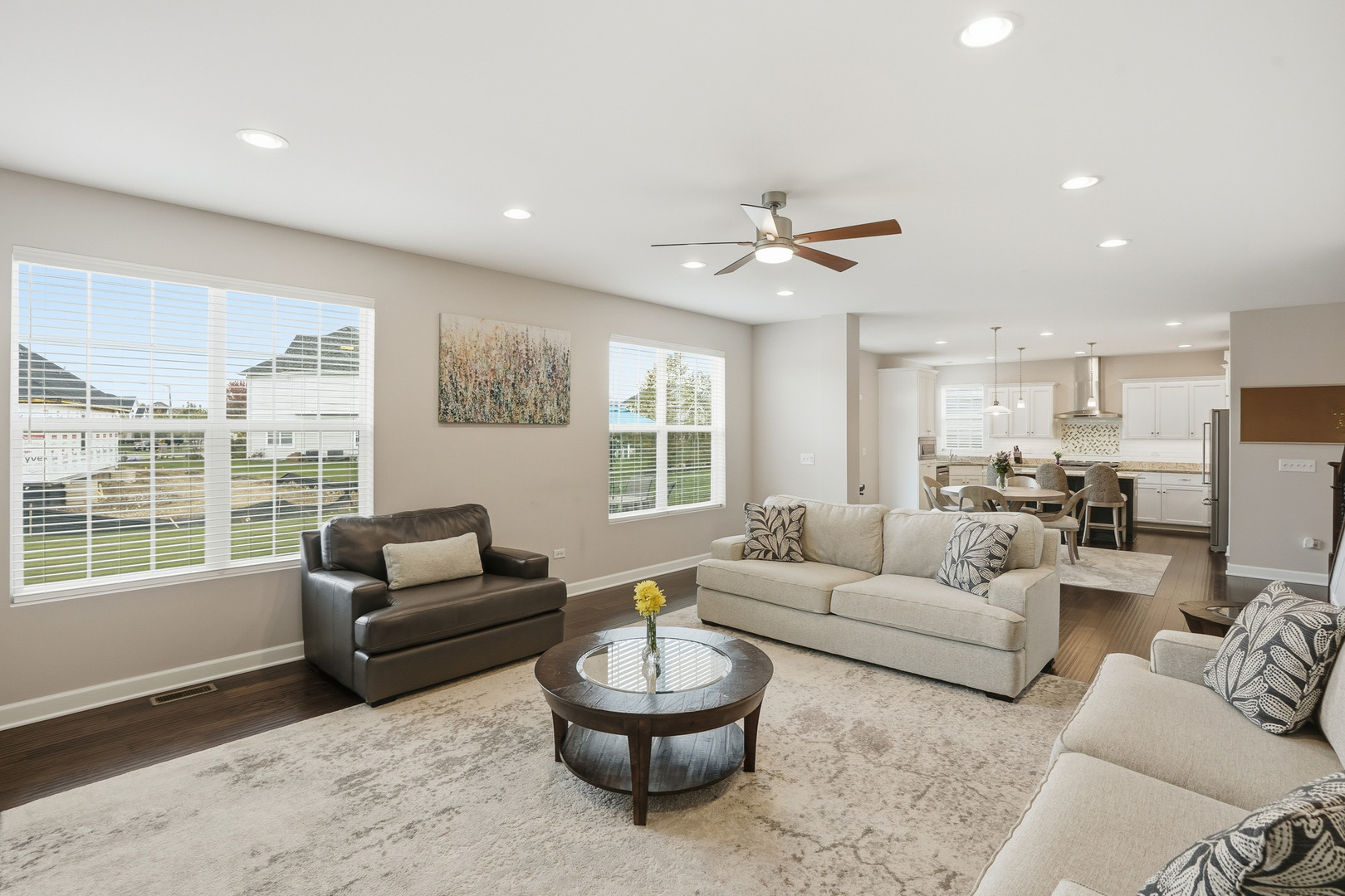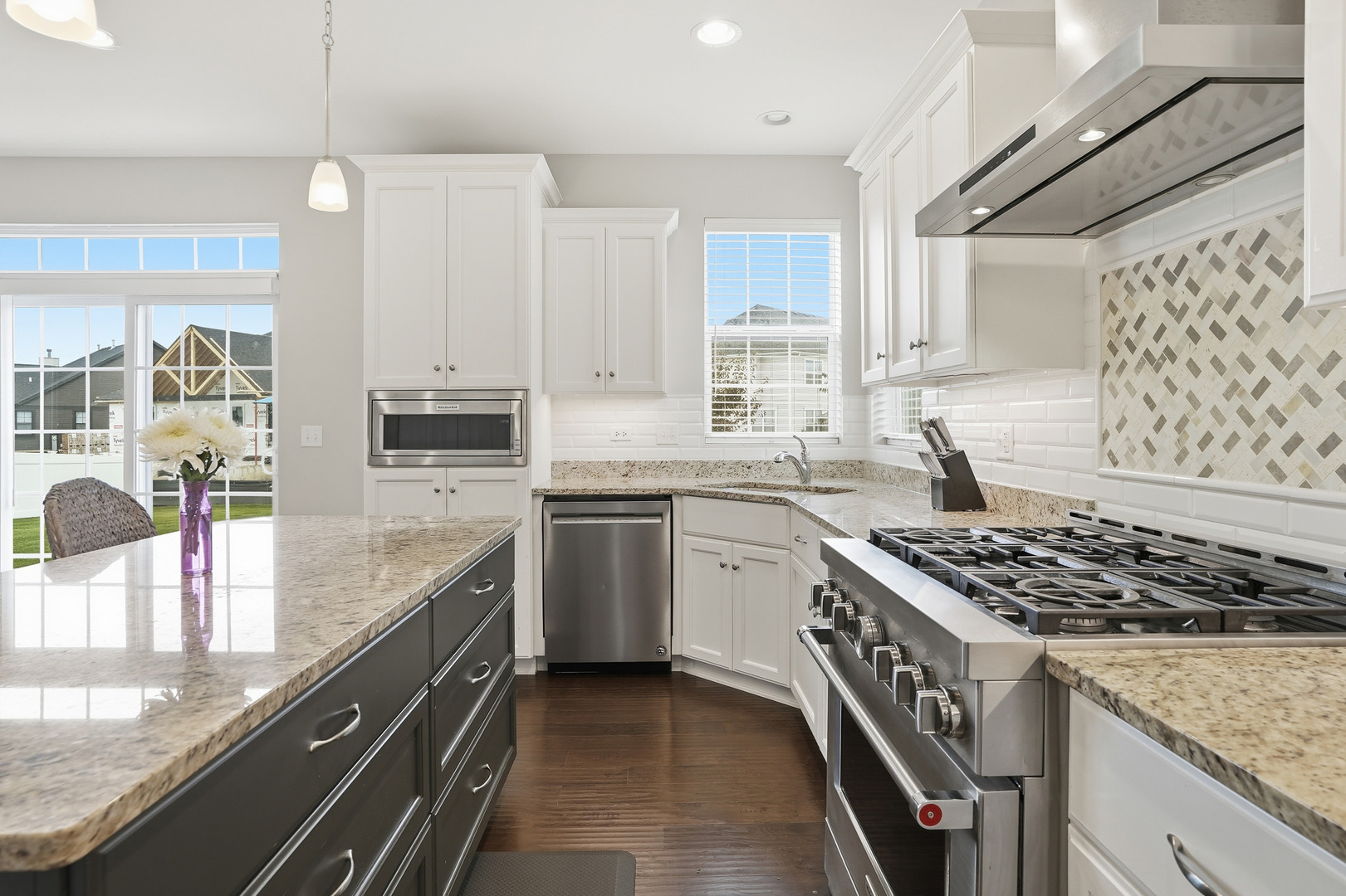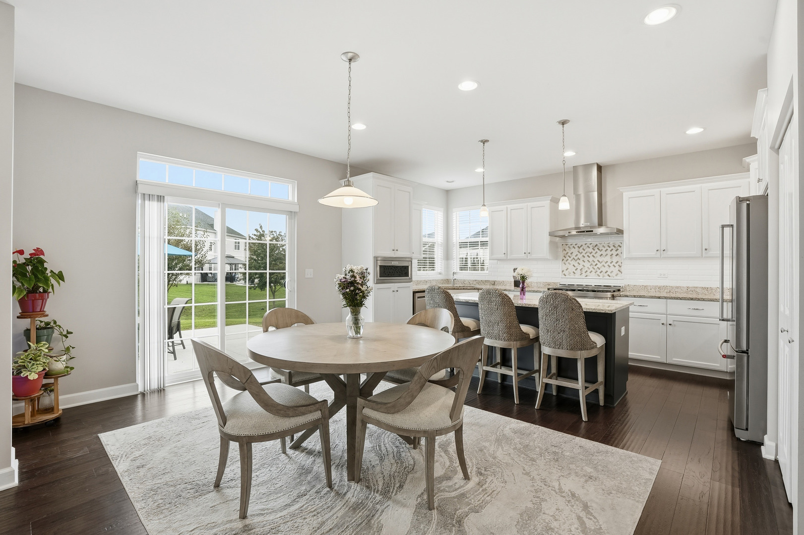 Welcome to this breathtaking, like-new residence perfectly situated on a premium lot across from a scenic park in one of the area’s most sought-after country club-style communities. From the moment you arrive, this home captivates with its impressive curb appeal, sun-filled interiors, and designer finishes throughout. Step inside the grand entry to a bright and airy open floor plan that exudes elegance. The sunlit living and dining rooms showcase rich plank flooring, expansive windows, and an effortless flow ideal for both entertaining and everyday living. The gourmet kitchen is a true showstopper-featuring white cabinetry with crown molding, stainless steel appliances, an upscale range hood, granite countertops, a designer subway-tile backsplash, pantry closet, and an oversized island with breakfast bar. Enjoy morning coffee in the sunny breakfast area with a door leading to the large patio overlooking the professionally landscaped yard with irrigation system. The spacious family room invites relaxation with its cozy gas-start fireplace, abundant recessed lighting, and open-concept design. A main-level office with double-door entry provides the perfect work-from-home retreat. Elegant mudroom with built-in bench with hooks. The attached, fully drywalled garage adds everyday convenience and polished functionality. Downstairs, the newly finished lower level offers luxury and versatility-ideal for related living. This impressive space features a fifth bedroom, full bath, large recreation room with plank flooring, workout area, and generous storage, all designed with comfort and style in mind. Upstairs, discover four additional bedrooms, each with a walk-in closet. The primary suite is a private sanctuary, highlighted by a grand double-door entry, expansive walk-in closet, and a spa-inspired luxury bath boasting a raised double vanity, relaxing soaker tub, separate glass-enclosed shower, and private water closet. The hall bath also features a raised double vanity and refined finishes. Convenient 2nd floor laundry room with custom cabinetry. With five bedrooms, three-and-a-half baths, and impeccable attention to detail, this home offers a perfect blend of sophistication, comfort, and functionality. Enjoy the tranquility of suburban living paired with resort-style amenities-including a full aquatic center with two pools, thrilling waterslides, splash zones, and more. The community is just moments from downtown Plainfield, where you can explore quaint shops, local dining, seasonal festivals, and the charm of Settlers’ Park with its movies, concerts, ponds, paths, and riverfront kayak launches. Easy access to shopping, highways, and public transportation completes the picture of effortless luxury living. This is more than a home-it’s a lifestyle of elegance, leisure, and comfort waiting for you.