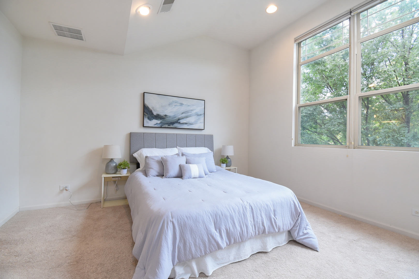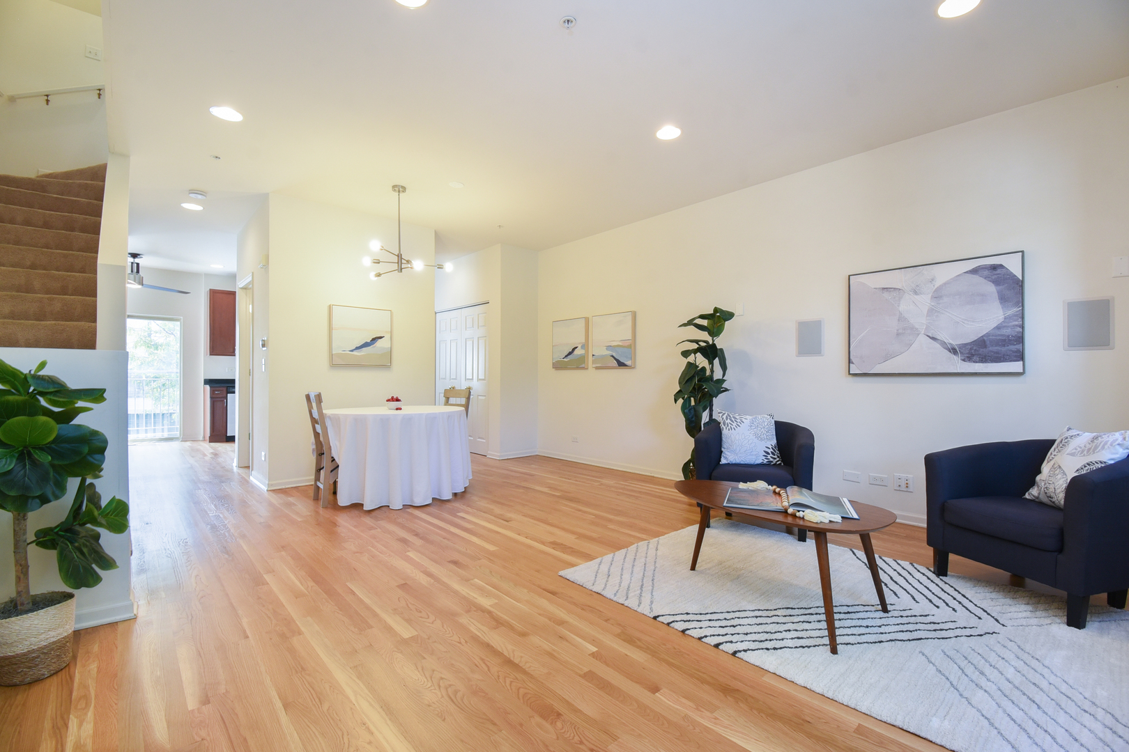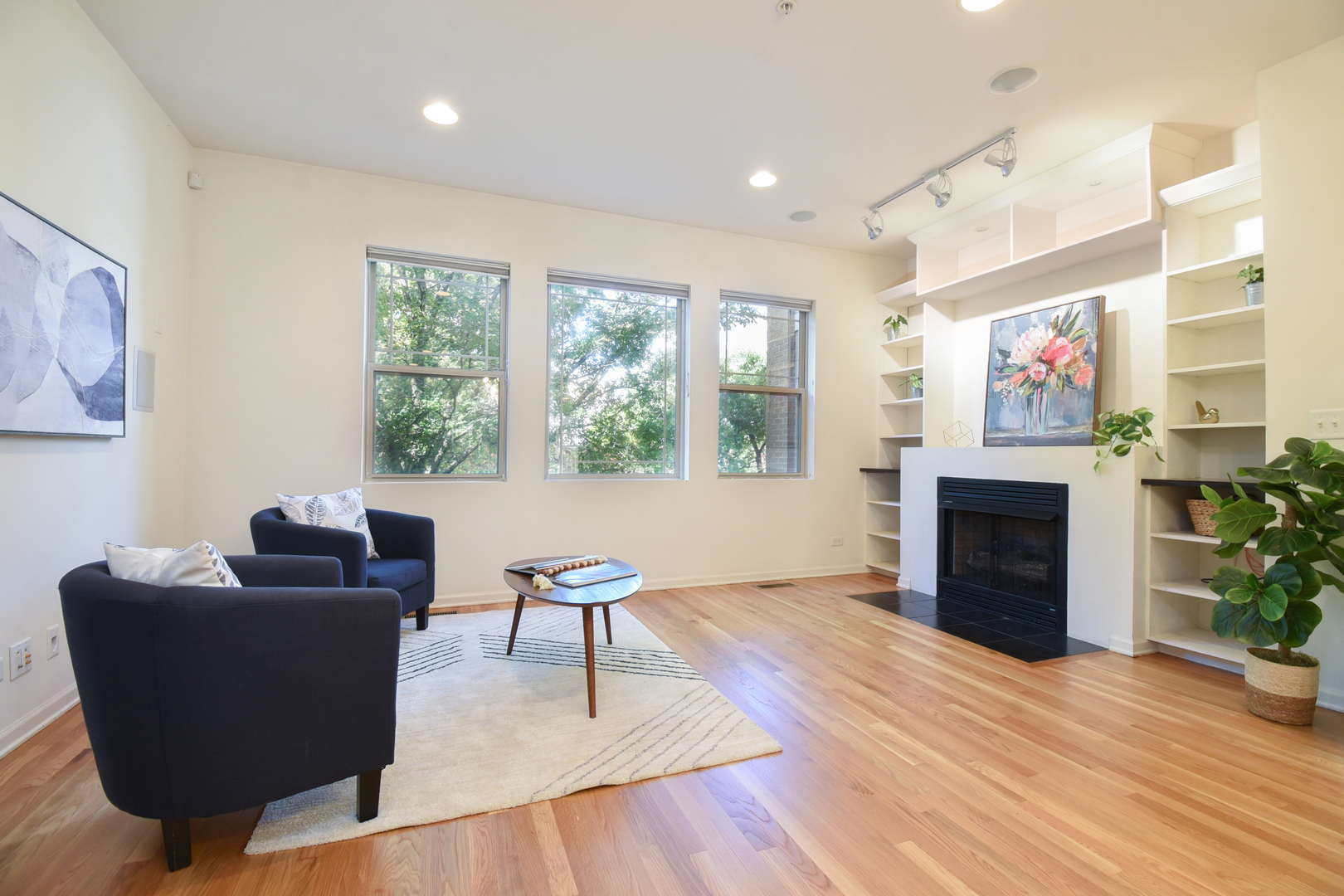 This light, bright, and spacious 3 bed, 2.5 bath townhome in a fantastic, heart of Oak Park location beckons! From the private entrance, step into the foyer where you’ll find a handy coat closet. Up to the main level, you’ll find a sprawling, open living and dining area with soaring ceilings, a massive wall of west-facing windows overlooking leafy Cuyler Ave, and loads of space for multiple conversation areas. Host game nights or cozy nights in around the stunning fireplace that is flanked by built-in cabinets. Host your largest holiday dinners in the spacious dining area with an updated light fixture. And cooking your meals is a delight in the well-appointed kitchen with miles of granite countertops; all stainless appliances; a large, deep, undermount sink with disposal; loads of quality cabinetry; plus a generous, organized pantry closet! The eat-in area off the kitchen boasts French doors to a Juliette balcony and floods the room with light. Convenient laundry closet as well as a bright, clean powder room round out this level that’s perfect for entertaining and everyday living. When you’re ready to retire, head to the next level where you’ll find a massive primary retreat! Cathedral ceilings and a wall of windows with treetop views provide a soothing backdrop for this fabulous ensuite, which boasts a double, organized closet and a massive, spa-like full bath featuring a vast, jetted soaking tub, a large step-in shower, and a double vanity with granite countertops. Also on this level, you’ll find another large bedroom with a generous closet and a full bath. On the top floor, a third, sunny, cheerful bedroom has sliding French doors to a private rooftop deck drenched in eastern light – great for summer evenings with some sips and snacks with friends. On the entry level, there’s even more space with a large den with a large, organized closet, that’s perfect for working from home, working out, as a family room, or more! And, Chicago winters will be a breeze with the attached 2-car garage! Low HOA, well-maintained complex makes ownership easy and investors welcome – rentals are allowed! All this in a terrific location on a tree-lined street that’s convenient to everything Oak Park has to offer – elementary, middle and high schools; Ridgeland Commons with pool and ice rink; Farmer’s Market; groceries; coffee; bagels; restaurants; shopping, and so much more and only moments from the Green Line or minutes to the expressway makes this one a commuter’s dream too! This move-in-ready home is the one you’ve been waiting for–welcome home!