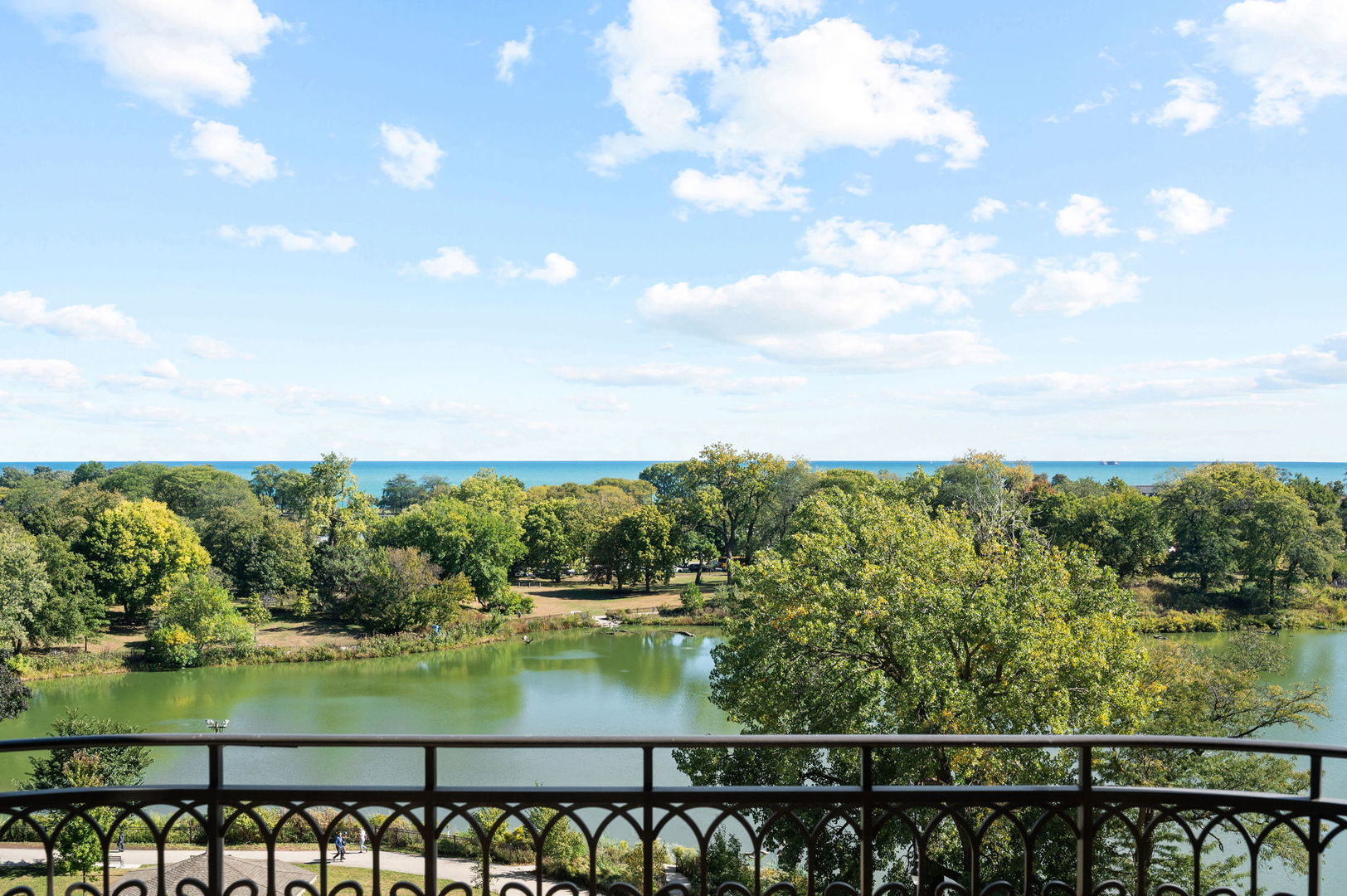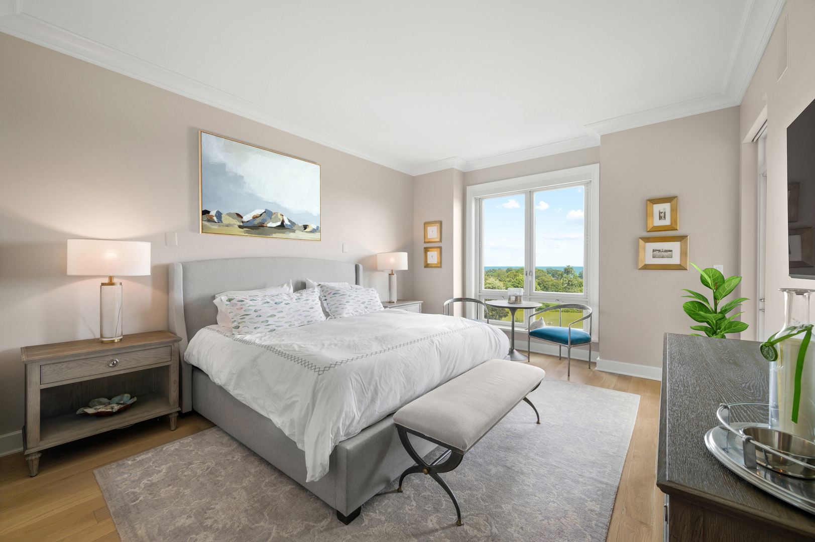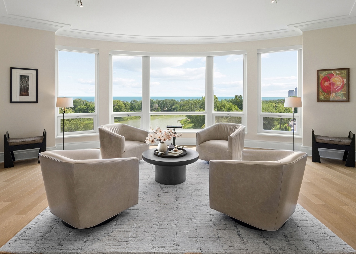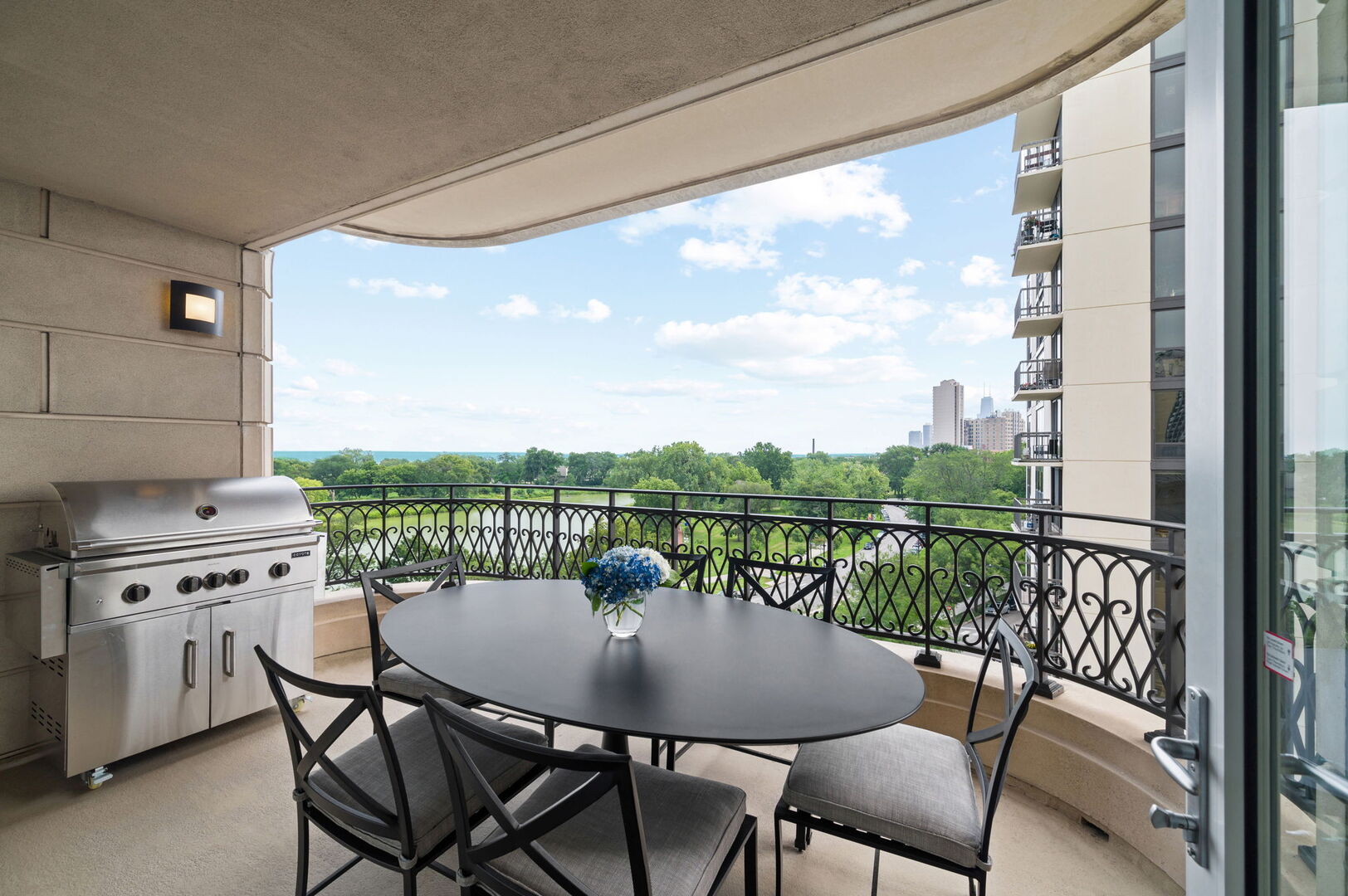Residence S701, a Southeast corner 3 bedroom/3.1 bathroom home in the highly coveted, Lucien LaGrange-designed, Lincoln Park 2550. This remarkable home offers 4,000 square feet of thoughtfully designed living space, picturesque views from three terraces, and best-in-class amenities. Throughout the home – one of the largest in the building – floor-to-ceiling windows offer family and guests breathtaking and panoramic views of Lake Michigan, Lincoln Park, North Pond, and the Chicago skyline – views that change with the seasons and shift with the day’s light. Inside the home, floor-to-ceiling windows bathe the interior spaces with light, inviting the natural beauty of the outdoors in. The focal point of the large formal living room is once again the view, this time visible through a bright wall of windows that curve the entire width of the space and amplify the 180-degree cityscape. The adjoining den and large dining room are clearly defined spaces, but are capable together of accommodating a large gathering. Sophisticated and elegant finishes are found throughout the home including the kitchen which features Caesarstone quartz countertops with island seating, customized Snaidero cabinetry and top of the line appliances including Subzero, Wolf, and two Miele dishwashers. The pass through butler’s pantry adds storage, a wet bar, and temperature controlled wine storage. The south terrace, accessible from the kitchen, has gas grill hook-up and is large enough for a seated meal. Stepping off the kitchen, a comfortably sized family room provides the perfect setting for a relaxing evening or enjoy sunsets on the western terrace. The largest of the three, this 44×12-foot covered terrace overlooks the stunning manicured gardens and fountain within the 1.5-acre gated, private park. Back inside, the substantial primary bedroom is a peaceful retreat and includes its own east facing terrace, two walk-in closets, and spa-quality bathroom with dual vanity sinks, great storage, soaking tub, and an aromatherapy steam shower. Two additional bedrooms, both ensuite with private bathrooms and walk-in closets make perfect sanctuaries for family or guests. Key features throughout this large-scale home include: wide plank oak flooring, custom millwork and built-ins, smart home technology with centralized media and climate control, built-in speakers, programmable lighting, and Lutron shades. Residents of the building enjoy exceptional amenities: indoor pool with sundeck, top-of-the-line fitness center, sauna and steam rooms, movie theater, newly renovated party/event room with amazing kitchen, game and billiards room, massage rooms, on-site dry cleaner, dog run, private playground and an exceptional team of 24/7 door staff. Two large storage spaces and two parking spots with guest passes and optional valet service are included.