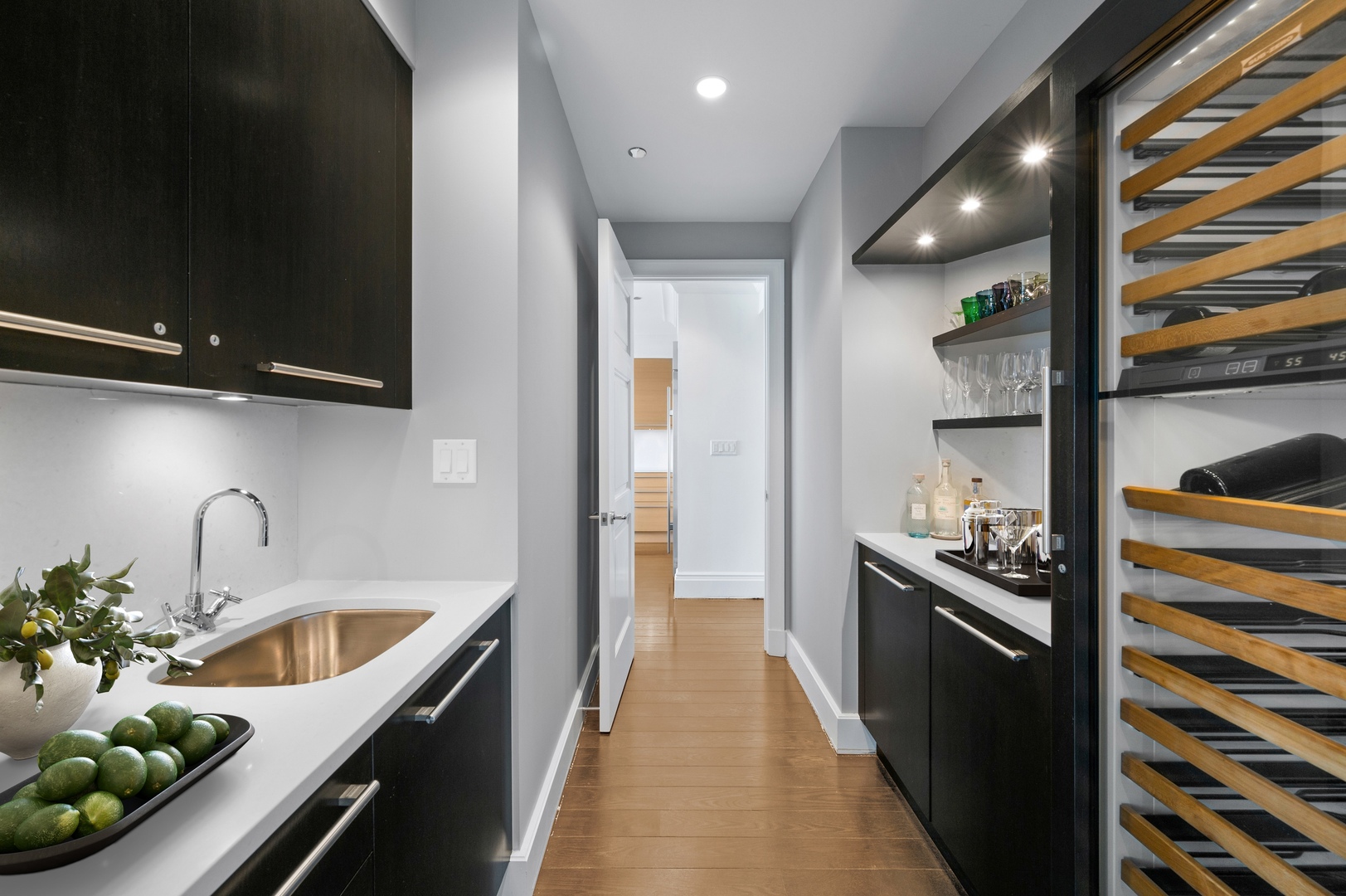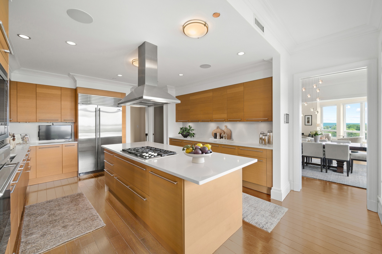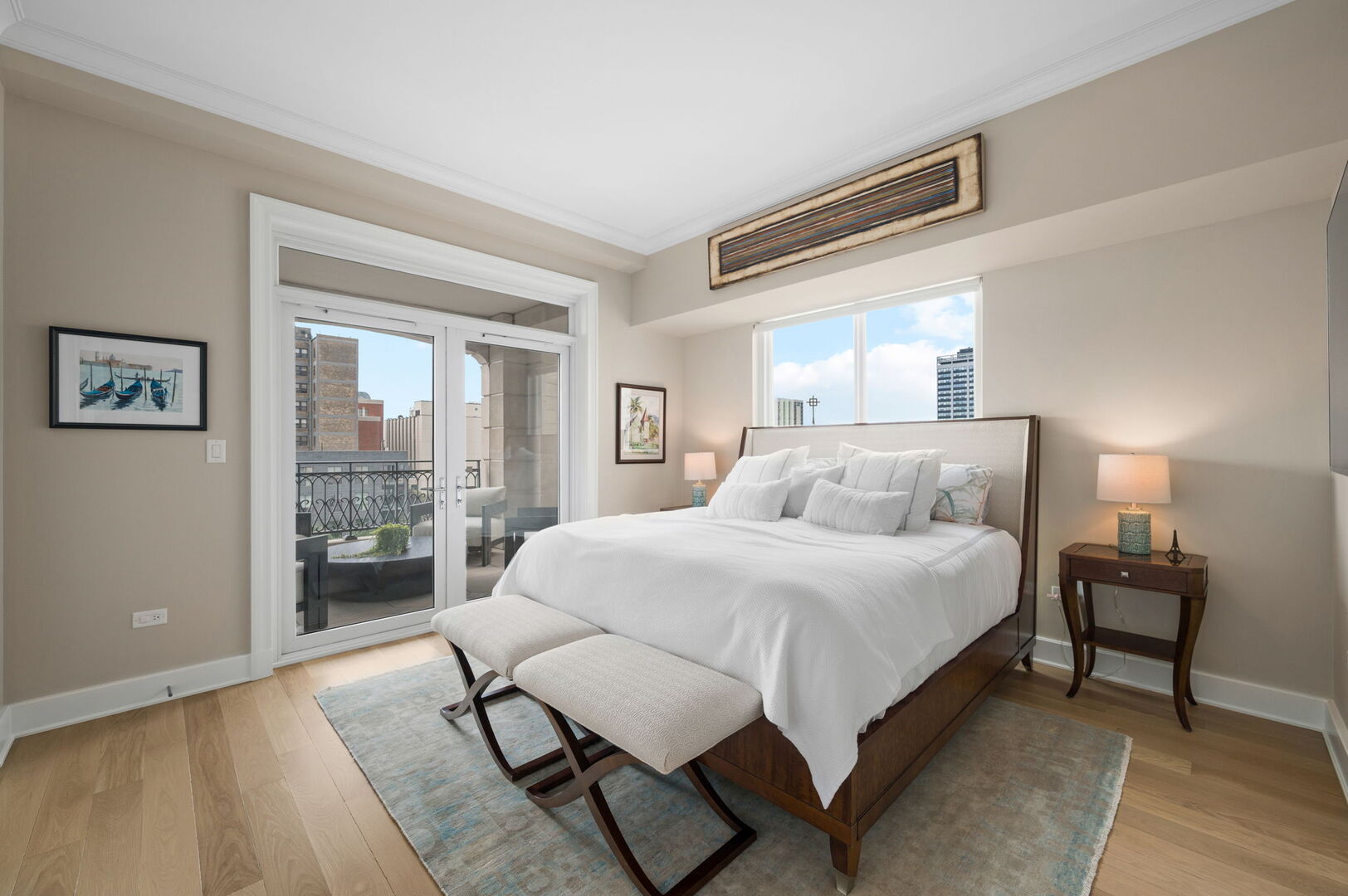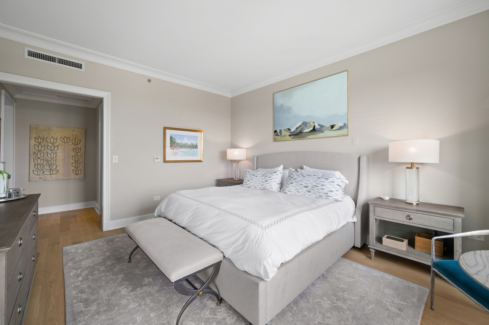 Residence S701, a Southeast corner 3 bedroom/3.1 bathroom home in the highly coveted, Lucien LaGrange-designed, Lincoln Park 2550. This remarkable home offers 4,000 square feet of thoughtfully designed living space, picturesque views from three terraces, and best-in-class amenities. Throughout the home – one of the largest in the building – floor-to-ceiling windows offer family and guests breathtaking and panoramic views of Lake Michigan, Lincoln Park, North Pond, and the Chicago skyline – views that change with the seasons and shift with the day’s light. Inside the home, floor-to-ceiling windows bathe the interior spaces with light, inviting the natural beauty of the outdoors in. The focal point of the large formal living room is once again the view, this time visible through a bright wall of windows that curve the entire width of the space and amplify the 180-degree cityscape. The adjoining den and large dining room are clearly defined spaces, but are capable together of accommodating a large gathering. Sophisticated and elegant finishes are found throughout the home including the kitchen which features Caesarstone quartz countertops with island seating, customized Snaidero cabinetry and top of the line appliances including Subzero, Wolf, and two Miele dishwashers. The pass through butler’s pantry adds storage, a wet bar, and temperature controlled wine storage. The south terrace, accessible from the kitchen, has gas grill hook-up and is large enough for a seated meal. Stepping off the kitchen, a comfortably sized family room provides the perfect setting for a relaxing evening or enjoy sunsets on the western terrace. The largest of the three, this 44×12-foot covered terrace overlooks the stunning manicured gardens and fountain within the 1.5-acre gated, private park. Back inside, the substantial primary bedroom is a peaceful retreat and includes its own east facing terrace, two walk-in closets, and spa-quality bathroom with dual vanity sinks, great storage, soaking tub, and an aromatherapy steam shower. Two additional bedrooms, both ensuite with private bathrooms and walk-in closets make perfect sanctuaries for family or guests. Key features throughout this large-scale home include: wide plank oak flooring, custom millwork and built-ins, smart home technology with centralized media and climate control, built-in speakers, programmable lighting, and Lutron shades. Residents of the building enjoy exceptional amenities: indoor pool with sundeck, top-of-the-line fitness center, sauna and steam rooms, movie theater, newly renovated party/event room with amazing kitchen, game and billiards room, massage rooms, on-site dry cleaner, dog run, private playground and an exceptional team of 24/7 door staff. Two large storage spaces and two parking spots with guest passes and optional valet service are included.
