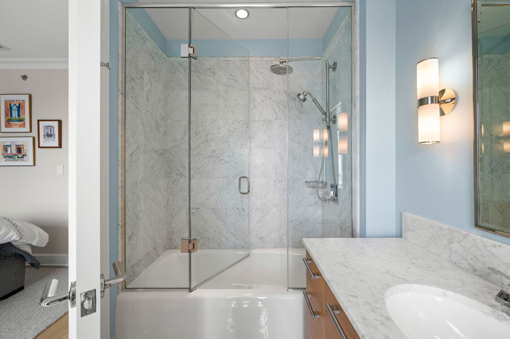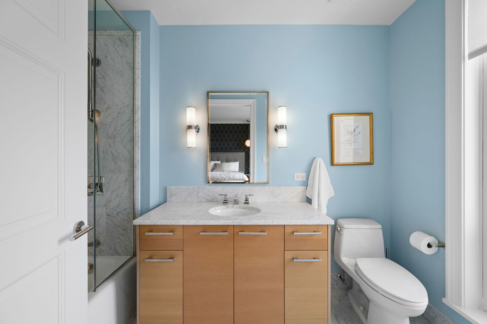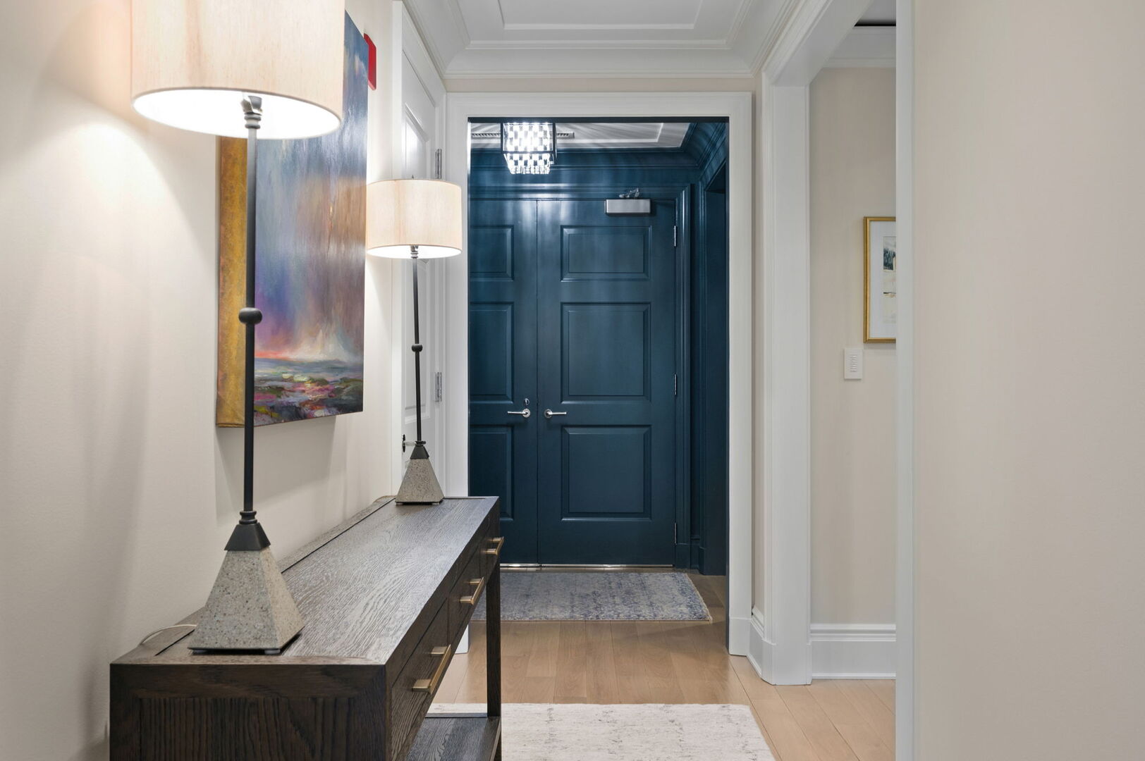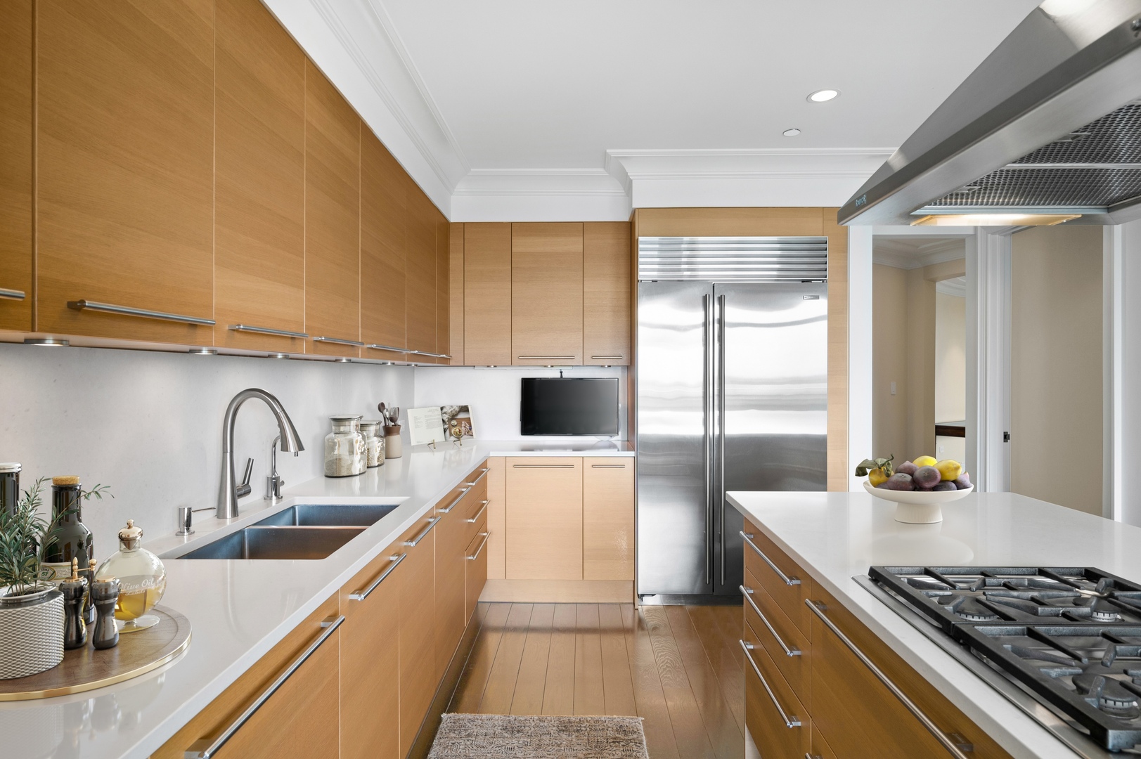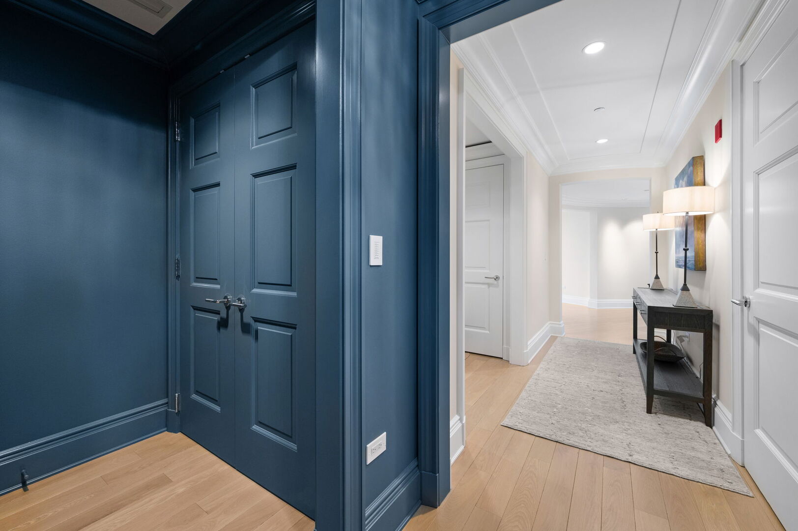 Residence S701, a Southeast corner 3 bedroom/3.1 bathroom home in the highly coveted, Lucien LaGrange-designed, Lincoln Park 2550. This remarkable home offers 4,000 square feet of thoughtfully designed living space, picturesque views from three terraces, and best-in-class amenities. Throughout the home – one of the largest in the building – floor-to-ceiling windows offer family and guests breathtaking and panoramic views of Lake Michigan, Lincoln Park, North Pond, and the Chicago skyline – views that change with the seasons and shift with the day’s light. Inside the home, floor-to-ceiling windows bathe the interior spaces with light, inviting the natural beauty of the outdoors in. The focal point of the large formal living room is once again the view, this time visible through a bright wall of windows that curve the entire width of the space and amplify the 180-degree cityscape. The adjoining den and large dining room are clearly defined spaces, but are capable together of accommodating a large gathering. Sophisticated and elegant finishes are found throughout the home including the kitchen which features Caesarstone quartz countertops with island seating, customized Snaidero cabinetry and top of the line appliances including Subzero, Wolf, and two Miele dishwashers. The pass through butler’s pantry adds storage, a wet bar, and temperature controlled wine storage. The south terrace, accessible from the kitchen, has gas grill hook-up and is large enough for a seated meal. Stepping off the kitchen, a comfortably sized family room provides the perfect setting for a relaxing evening or enjoy sunsets on the western terrace. The largest of the three, this 44×12-foot covered terrace overlooks the stunning manicured gardens and fountain within the 1.5-acre gated, private park. Back inside, the substantial primary bedroom is a peaceful retreat and includes its own east facing terrace, two walk-in closets, and spa-quality bathroom with dual vanity sinks, great storage, soaking tub, and an aromatherapy steam shower. Two additional bedrooms, both ensuite with private bathrooms and walk-in closets make perfect sanctuaries for family or guests. Key features throughout this large-scale home include: wide plank oak flooring, custom millwork and built-ins, smart home technology with centralized media and climate control, built-in speakers, programmable lighting, and Lutron shades. Residents of the building enjoy exceptional amenities: indoor pool with sundeck, top-of-the-line fitness center, sauna and steam rooms, movie theater, newly renovated party/event room with amazing kitchen, game and billiards room, massage rooms, on-site dry cleaner, dog run, private playground and an exceptional team of 24/7 door staff. Two large storage spaces and two parking spots with guest passes and optional valet service are included.