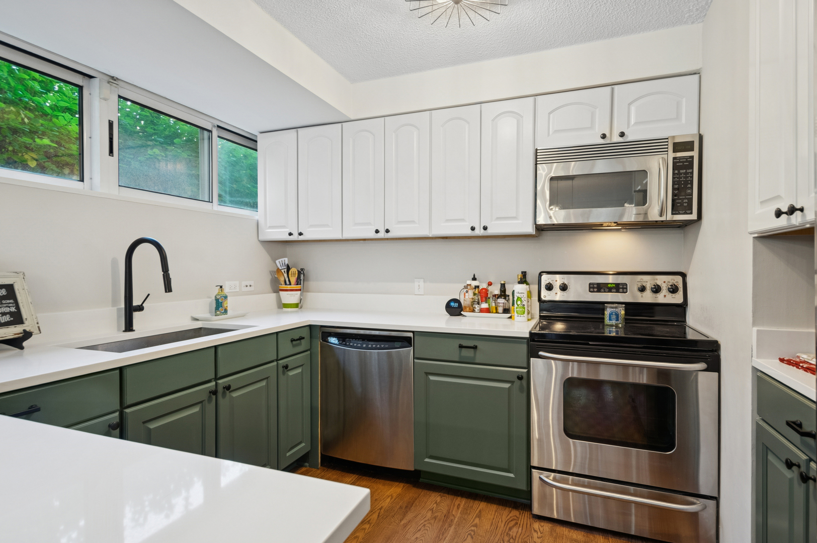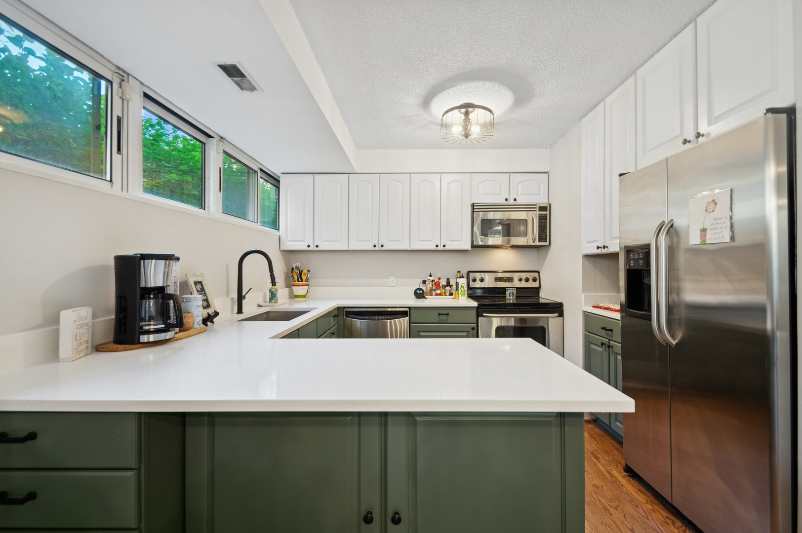 Discover modern living at North Pointe in this stunning 2-bedroom, 2-bath corner condo! Flooded with natural light, this open-concept home features floor-to-ceiling windows, walnut-stained hardwood floors, and lush garden views. The designer kitchen dazzles with two-toned sage and white cabinetry, Quartz counters, matte black accents, and a full stainless steel appliance suite. A large island with seating and chic mid-century lighting make this the heart of the home. The oversized primary suite is a private retreat with sliding doors to the garden patio, a spacious sitting area, en-suite bath, and two generous closets including a large walk-in. The bright second bedroom also opens to the patio and sits across from a stylish full bath with walk-in shower. Enjoy the ease of in-unit laundry, abundant storage, a private 4×8 storage room located in the garage, and heated indoor parking with elevator access. Recent upgrades include a newer HVAC system and new washer and dryer. Set within beautifully landscaped grounds surrounding a tranquil pond, North Pointe offers resort-style amenities: indoor year-round pool, fitness room, bike storage, and secure lobby. Conveniently close to Old Orchard shopping, restaurants, and the Edens Expressway. Pet-friendly, stylish, and move-in ready – experience the perfect blend of comfort and sophistication in your Evanston oasis!