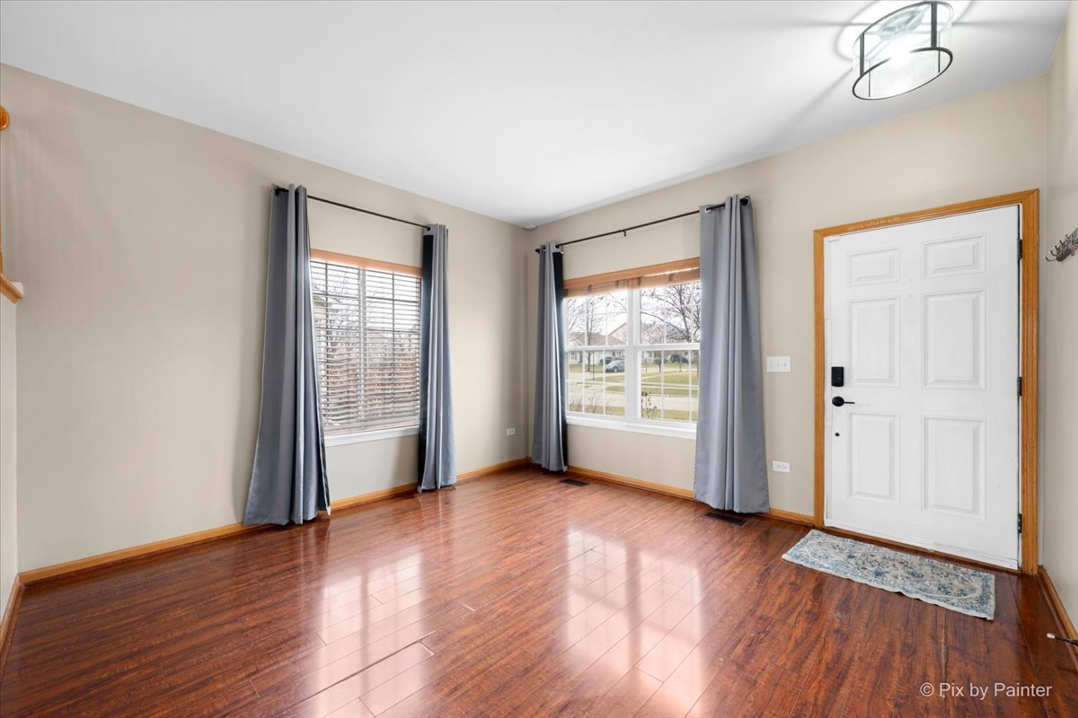 Welcome to this beautiful, two-story, Camden model 1/2 duplex in the desirable Lakewood Crossing subdivision in Hampshire. This well-maintained 2 bedroom, 2 1/2 bath home features over 1,300sf of living space and is move-in ready! The main floor with all wood laminate flooring throughout features a bright and welcoming living room with tons of natural light, a spacious kitchen with all stainless-steel appliances, and a lovely dining room area. Sliding glass doors lead you from the kitchen to the backyard patio space where you can enjoy picturesque views of the peaceful pond or delight in entertaining friends and family in your own private fenced yard. On the second level you will find the oversized master bedroom featuring a large walk-in closet and a private, updated master bath. A second bedroom, a bonus loft area, a full bathroom, and a laundry closet completes the second level. This lovely community includes a clubhouse, pool, playground, tennis courts, and is conveniently located close to schools, stores, restaurants, and recreation. Don’t miss out on the opportunity to see this beautiful, spacious home!