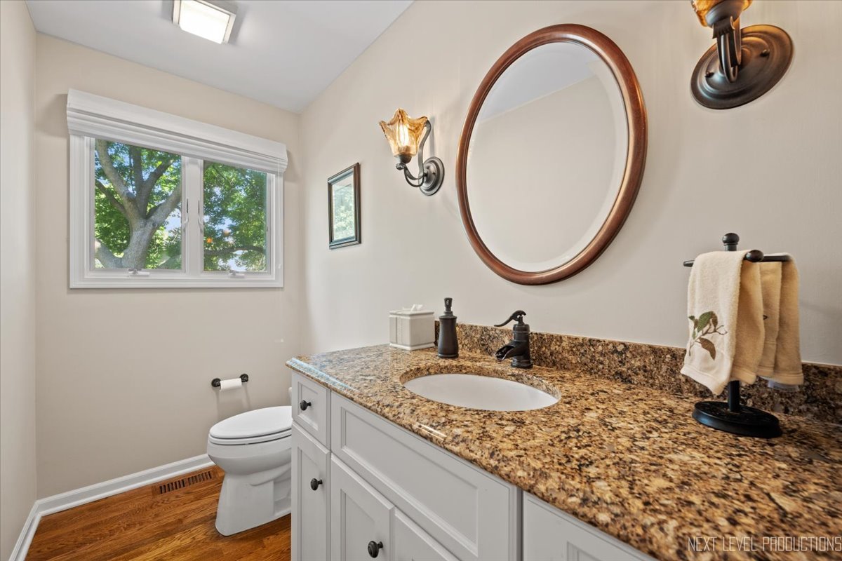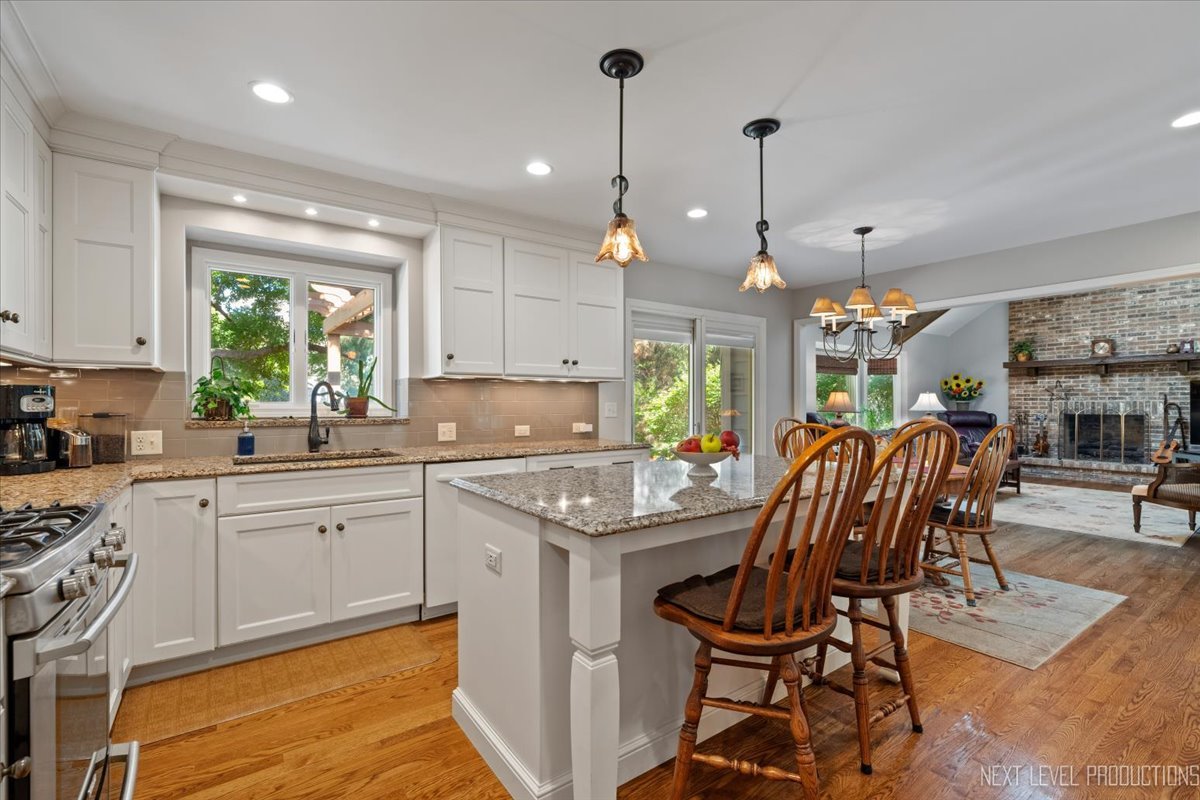 Welcome to this stunning 2-story home, perfectly situated in highly desirable River Woods! Step inside to a grand foyer with hardwood floors that flow seamlessly into the kitchen, dining room, and family room. The formal dining room sets the stage for memorable gatherings, while a private back office offers a quiet retreat with direct access to the deck. The spacious family room is filled with natural light from the bay window and skylight and is anchored by a cozy gas log fireplace-ideal for relaxing evenings. The remodeled chef’s kitchen by Normandy is a true showstopper, featuring beautifully updated cabinetry, Cambria quartz countertops, a center island, and a sunlit eating area with a patio door leading to the backyard patio. Upstairs, the luxurious primary suite includes a private sitting room, his and hers walk-in closets, and a beautifully updated en-suite bath with a jetted tub and separate shower. Three additional bedrooms and a second full bath complete the upper level. The backyard is an outdoor retreat, showcasing multiple entertaining and relaxation spaces including a deck, paver patio with pergola, complementary hardscaping, and mature landscaping. Additional highlights include a 2-car garage with ample storage and a full basement waiting for your finishing touches. All this in a prime location near award-winning Naperville 203 schools, parks, playgrounds, shopping, dining, and vibrant Downtown Naperville. Don’t miss your chance to make this River Woods gem your new home!