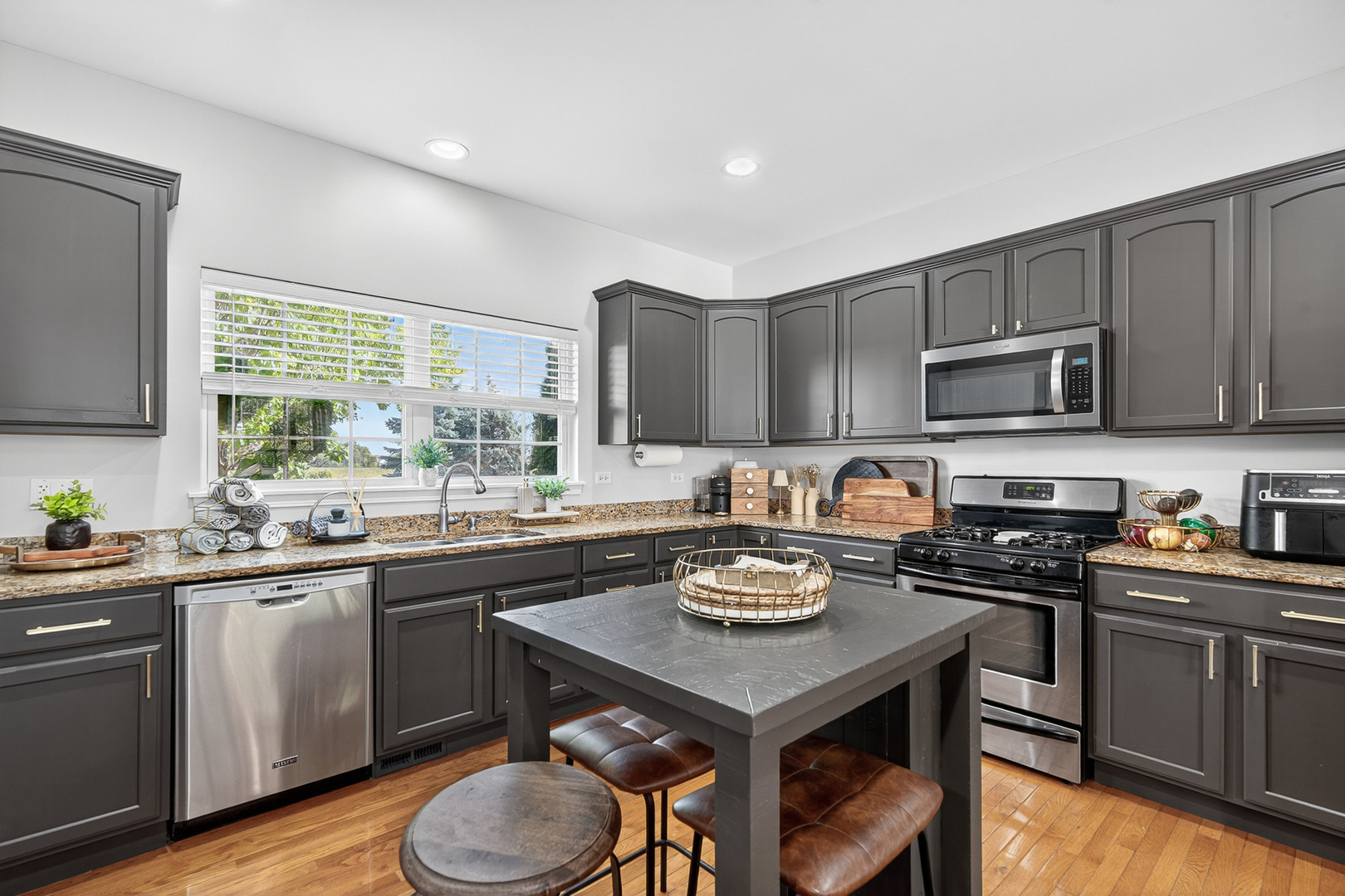 Welcome to this rarely available Amherst model in desirable West Point Gardens! This stunning home features a grand two-story foyer, a separate dining room, and an open-concept family room seamlessly flowing into a gourmet kitchen. The spacious kitchen boasts granite countertops and stainless steel appliances, complemented by 9′ ceilings on the first floor. Upstairs, the primary suite offers a tray ceiling, new lighting, a generous closet, and an en-suite bath with a dual vanity. Two additional bedrooms and a second full bath complete the upper level. Convenience is key with a first-floor laundry room and a full basement. The beautifully finished basement provides an open ceiling concept with crown molding, a full bathroom, a bedroom, an office, a recreation room, and abundant storage. Throughout the home, you’ll find charming 6-panel doors. Enjoy outdoor living, and relax in your private, professionally landscaped, fenced-in garden with a patio. The property includes an oversized two-car garage with a covered breezeway. This home features 3 bedrooms and 2 1/2 baths, and is ideally located directly across the street from Meier Park, close to shopping, and restaurants. Schedule your showing today before this one gets away!
