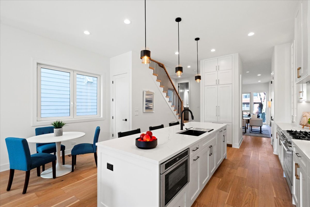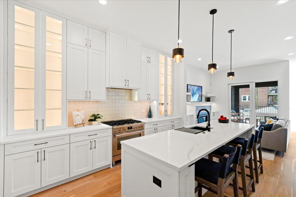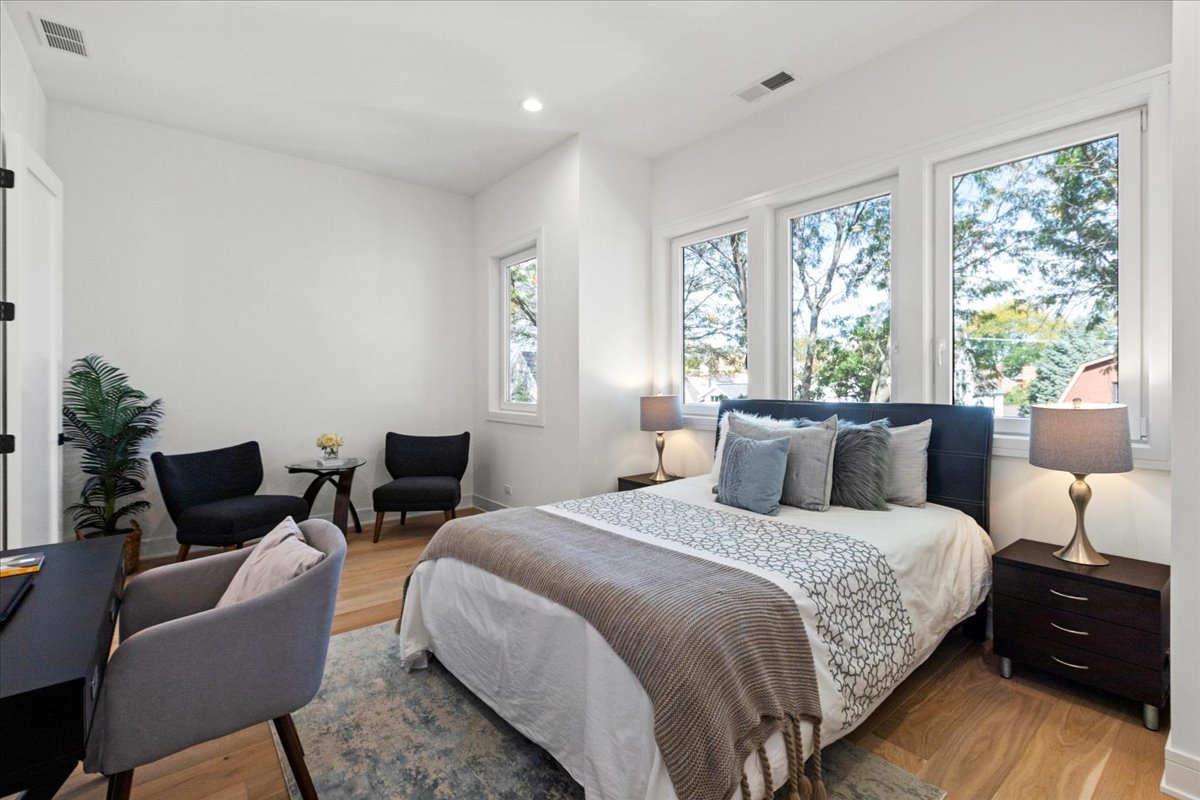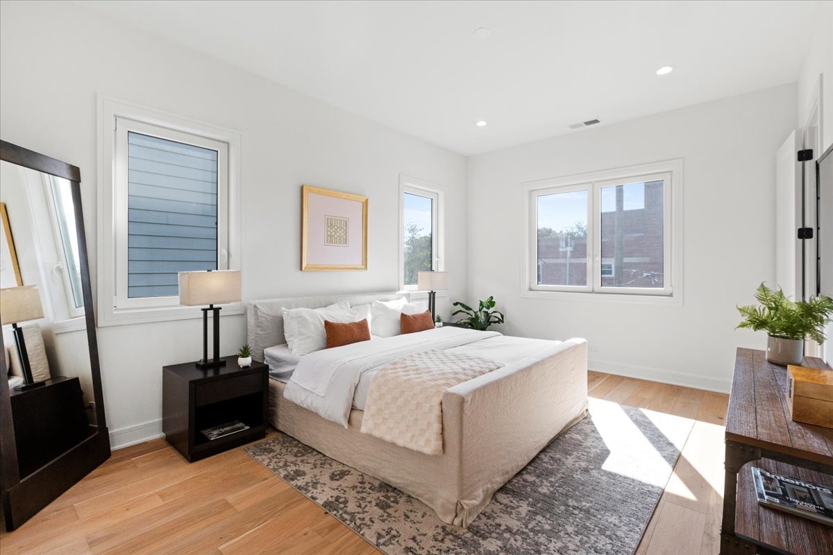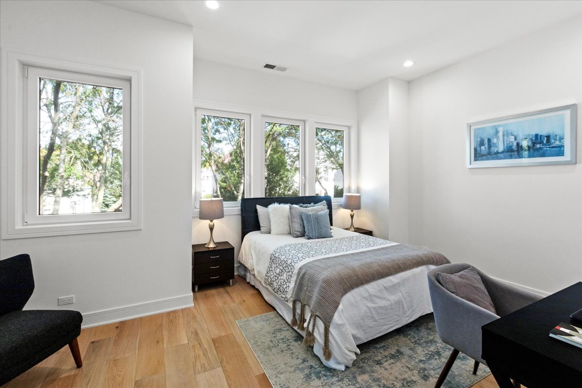 Introducing the Carmen Collection – Phase II. Nestled in a community of 19 brand new single-family homes in the picturesque and highly sought-after Lincoln Square neighborhood, 2607 Carmen is meticulously crafted in a modern farmhouse style, exuding a distinct character and seamlessly blending luxury, comfort, and convenience. Large windows and lofty ceilings flood the home with natural light, and are complemented by gleaming white oak hardwood floors that leave a lasting impression. Upon entering, the main level welcomes you with a spacious entry closet, formal living and dining areas, and a centerpiece built-in pantry. The family room showcases a cozy gas fireplace with quartz surround and open shelving which flows into a well-placed patio, perfect for grilling and entertaining. The kitchen is equipped with top-of-the-line Bosch appliances, upgraded lighting, an expansive island featuring stylish quartz counters, and bar seating for five. Abundant storage is provided by way of large custom cabinets and multiple walk-in pantries/closets. Ascending up a level reveals three generously sized bedrooms with large walk-in closets, two full bathrooms each with double vanities, a convenient linen closet, and a full-sized laundry room complete with a built-in sink and room for additional storage. The primary bath offers luxurious features like heated tile floors, an oversized walk-in rain shower, a deep soaking tub, built-in vanity/make-up table, and a separate toilet closet. Up another level and you reach the rooftop deck where you find an expansive and fully built out rooftop with Trex decking, another perfect outdoor space for entertaining, gardening, sunbathing, and more. The lower level of the home offers two additional spacious bedrooms, an entertainment/theater/play area which boasts an impressive wet bar and beverage center, a full bathroom, and two sizable storage nooks. Equally delightful is the beautifully landscaped front yard and private rear patio with built-in garden bed, offering more outdoor space for relaxation or entertaining. Completing the home is a two-car garage with ample room for parking and storage. Situated just a short stroll or bike ride away from multiple parks, this location offers abundant opportunities to immerse oneself in neighborhood activities as well as enjoy nature by way of nearby river trails for walking, jogging and biking. While offering a serene ambiance and tree-lined streets, the neighborhood is a short stroll from “The Square” with bustling cafes, restaurants, shops, and multiple transportation options, making 2607 Carmen and The Carmen Collection a perfect place to call home. This is the last of 19 homes and we’ve saved the best for last – don’t miss your chance to be a part of this amazing community!