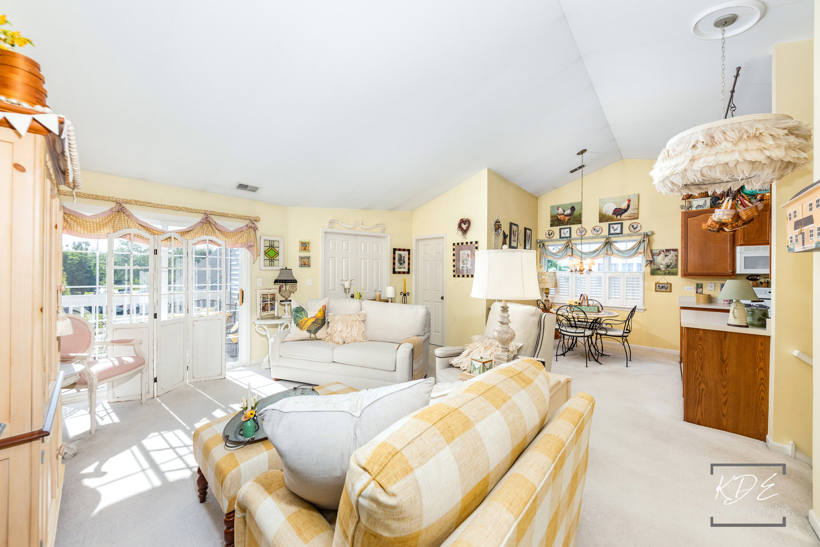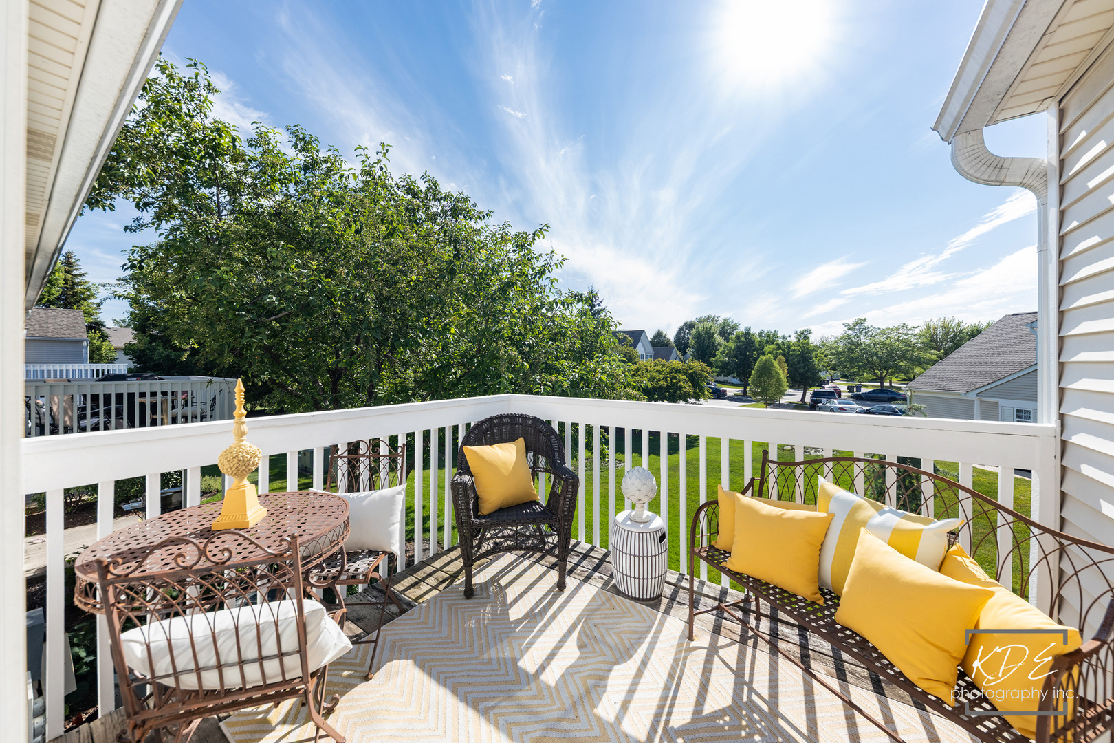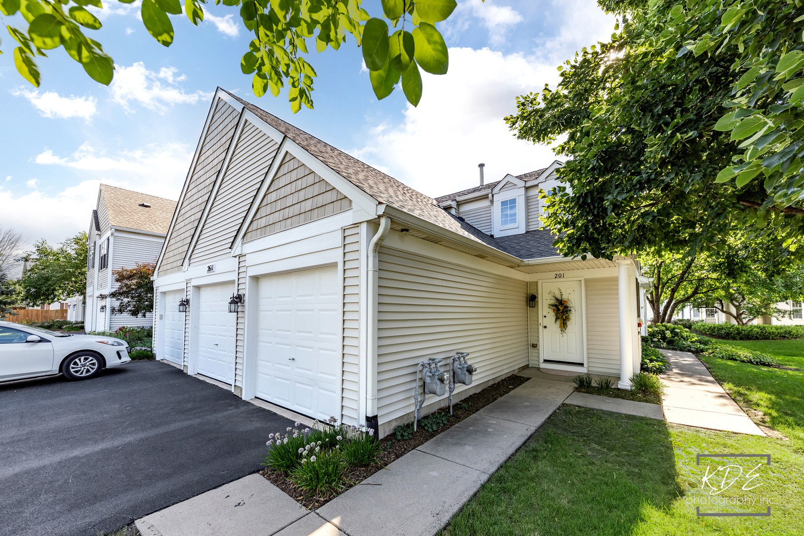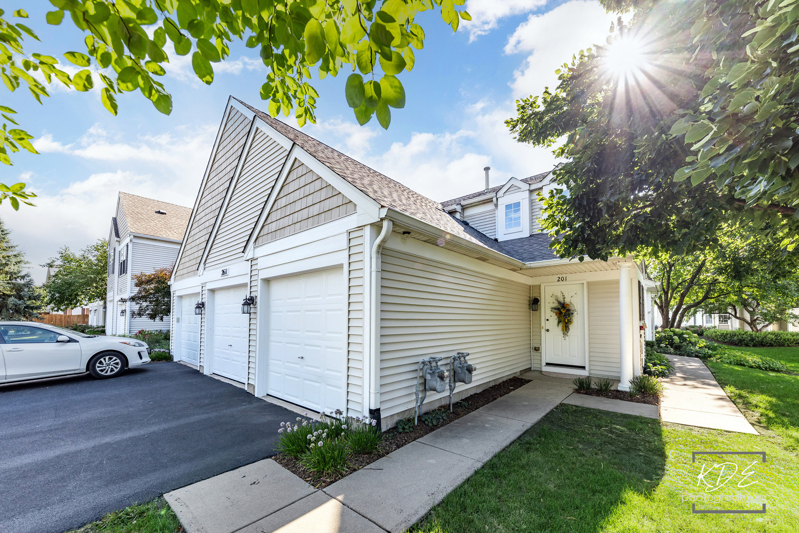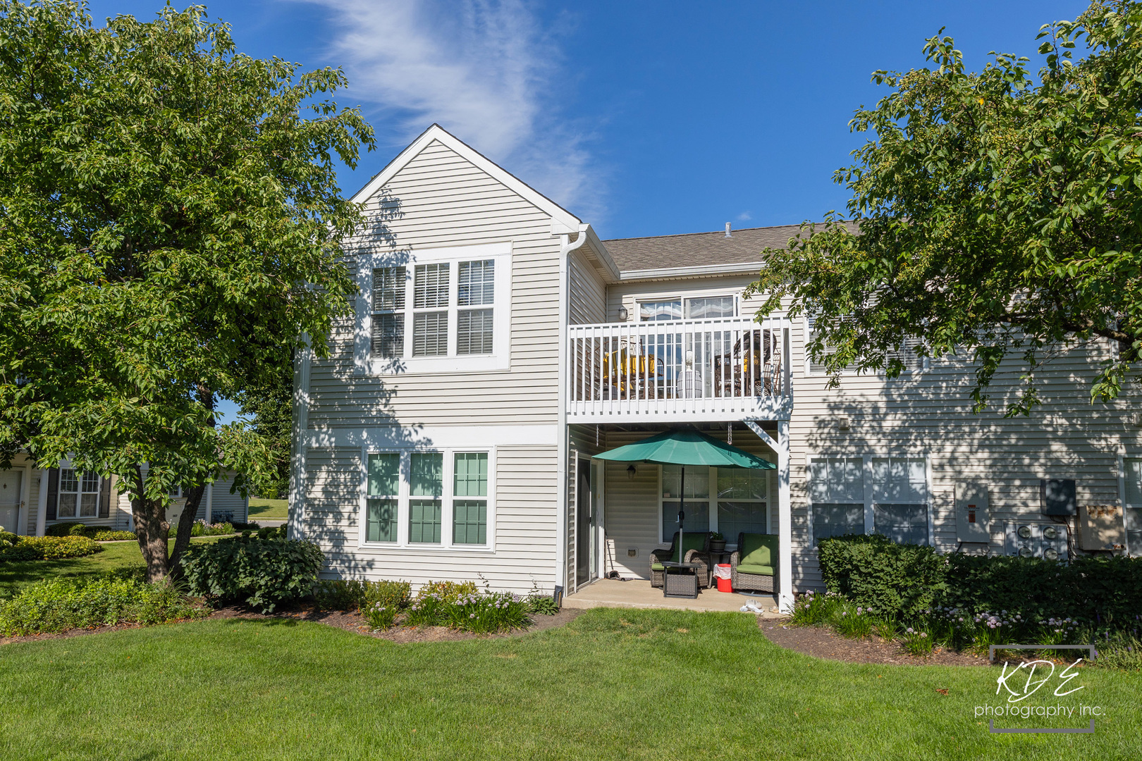 Don’t miss this sought after Naperville Location. Fantastic upper level end unit ranch style condo. Private entrance and 1 car attached garage. 2 bedrooms, 2 baths. Vaulted ceilings, lots of windows and light. White trim and doors. Spacious balcony to enjoy sunsets. Nice Family Room, Dining Area and Kitchen in bright open concept space. Kitchen has great cabinet space. Plantation Shutters in Dining Area. This condo has a spacious primary bedroom with walk in closet and ensuite bathroom. The primary bath has a soaking tub and separate shower with spacious vanity. The second bedroom has double doors, vaulted ceiling and a double closet. This would make a fantastic office too. 2nd full bath with shower/tub combo. Lovely balcony for coffee or cocktails overlooking an open area. Laundry Room with built in ironing board. New Hot Water Heater(2024). New Garage Door Opener(2025). Built in storage shelves in garage. Nice private entrance with spacious foyer for coats and shoes. Water included in HOA dues. This unit is getting a new deck this fall. Investor Friendly Community, NO Caps.