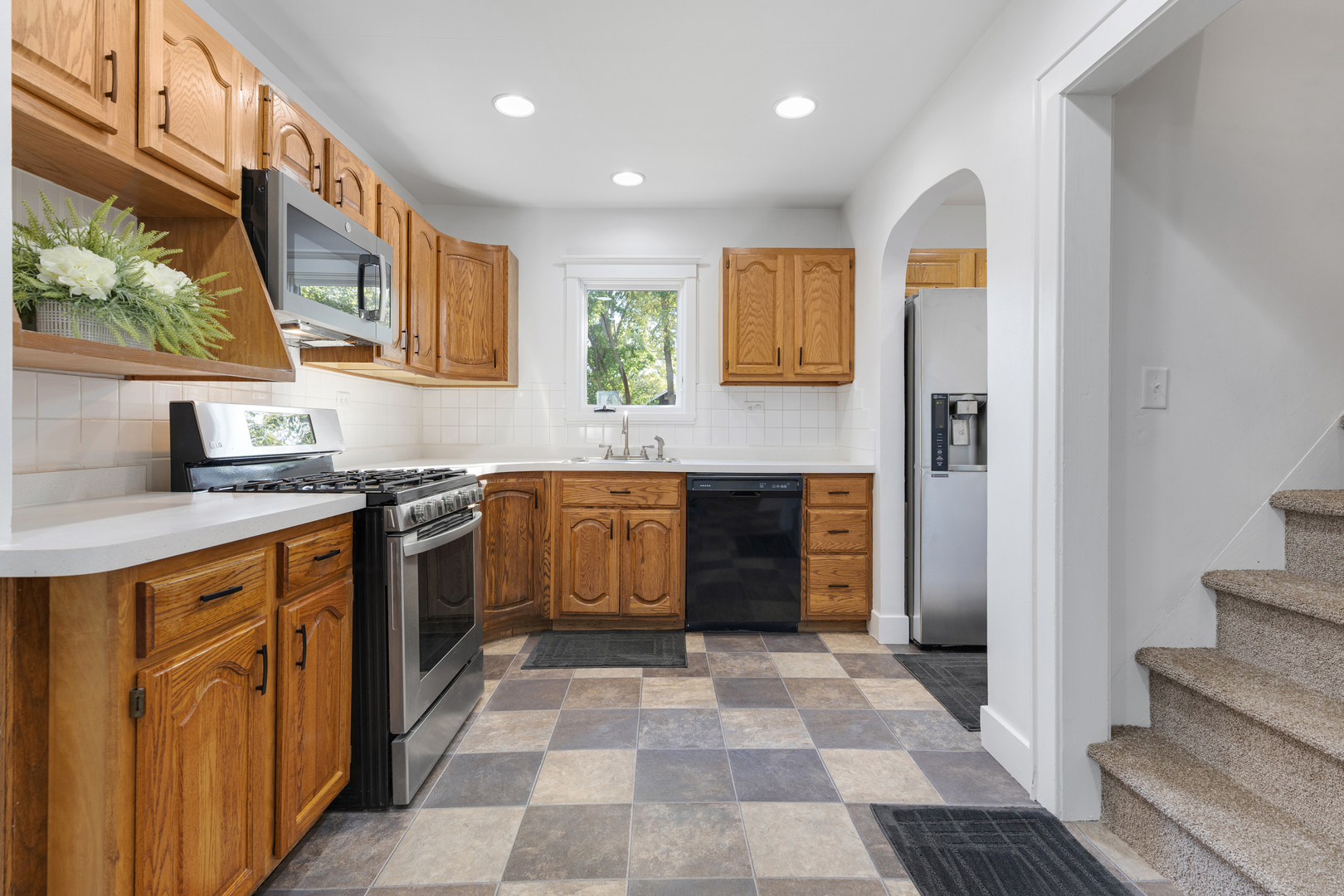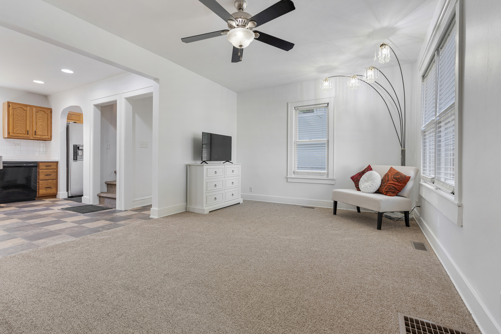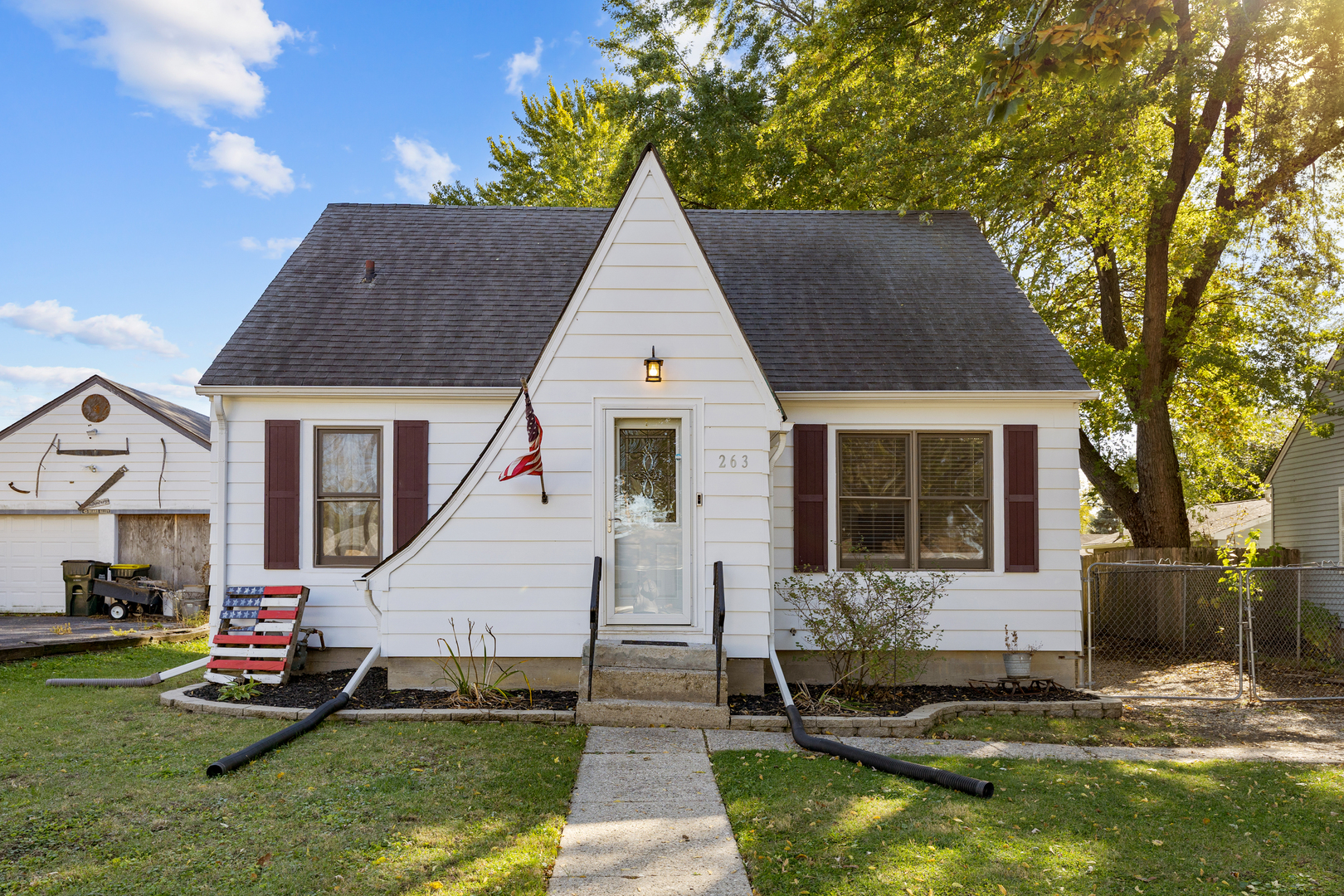 ADORABLE CAPE COD – MOVE-IN READY! ~ CHARMING 3-BEDROOM, 1-BATH HOME WITH LOFT/FLEX AREA ON THE SECOND FLOOR ~ FRESH PAINT NEWER WINDOWS & NEW CARPET THROUGHOUT ~ BRIGHT LIVING ROOM W/LARGE WINDOWS ~ UPDATED KITCHEN FEATURES OAK CABINETS, NEWER STAINLESS STEEL APPLIANCES ~ 2 SPACIOUS BEDROOMS ON MAIN FLOOR W/CEILING FANS ~ PRIMARY BEDROOM FEATURES TRAY CEILING ~ CLEAN AND BRIGHT FULL BATH ON THE MAIN LEVEL, PLUS AN EXTRA TOILET IN THE BASEMENT ~ NEW HVAC SYSTEM AND HOT WATER HEATER! ROOF APPROXIMATELY 10 YEARS OLD. FULL BASEMENT IS FRESHLY PAINTED W/LAUNDRY AREA & PLENTY OF STORAGE SPACE. ENJOY THE FENCED YARD W/MATURE TREES AND A 11/2-CAR DETACHED GARAGE ~ NEW BACK DOOR W/STORM DOOR ~ FRONT RING DOORBELL IS HARD WIRED ~ CONVENIENTLY LOCATED NEAR DOWNTOWN HAMPSHIRE, SCHOOLS, AND PARKS ~ CLEAN, COMFORTABLE, AND READY FOR NEW OWNERS!