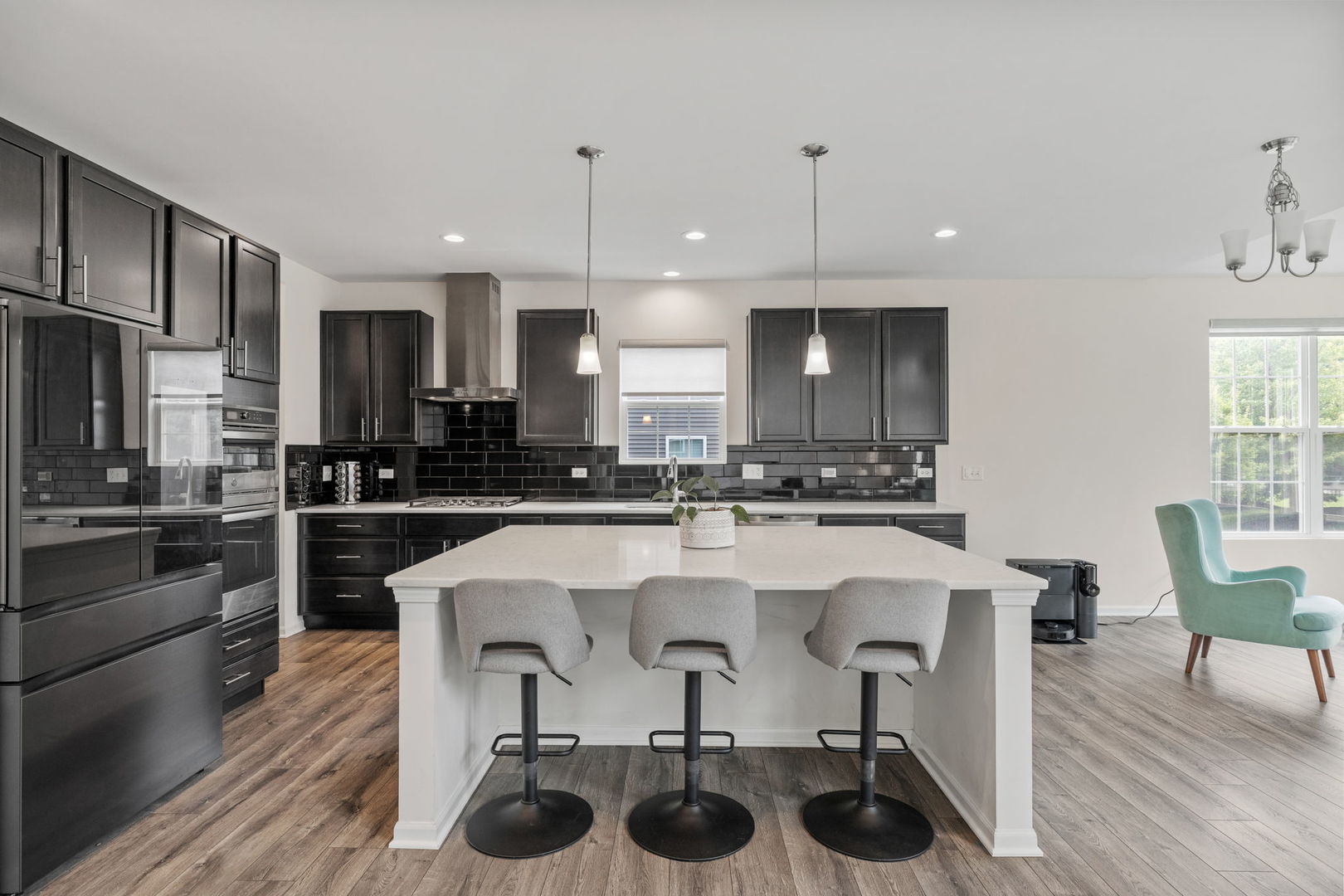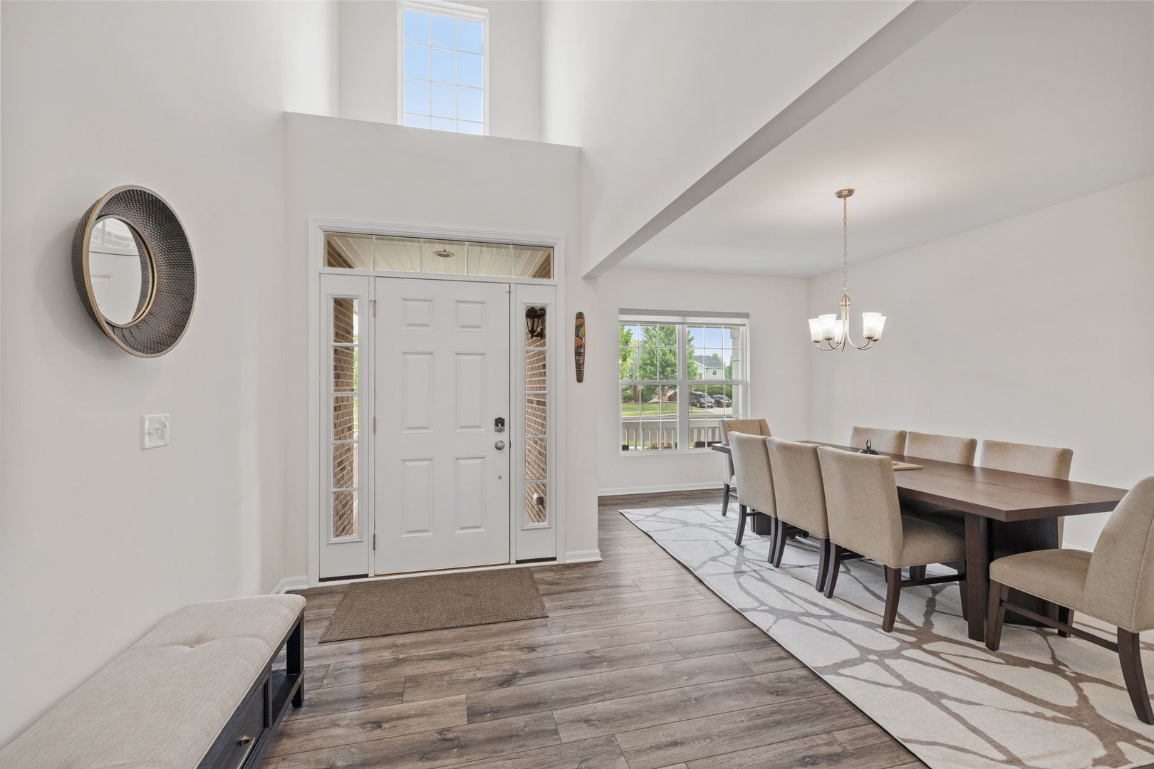 RARE first-floor bedroom with a private ensuite bathroom! Built in 2023, this like-new home delivers the feel of new construction without the wait! Step into luxury with this stunning 5-bedroom, 3.1-bath Hudson model by M/I Homes, offering modern design, thoughtful functionality, and smart home technology throughout. The main level features prefinished wood laminate flooring, and a breathtaking two-story family room with soaring 18-foot ceilings that flood the space with natural light. The gourmet kitchen is an entertainer’s dream, boasting an oversized 7.6′ x 5.6′ island, Carrara Mist quartz countertops, solid maple cabinetry, a WALK IN PANTRY, a Samsung Bespoke 4-Door French Door Refrigerator with Family Hub, and WiFi-enabled appliances. Smart switches are installed throughout for added convenience. The kitchen, breakfast area, and family room flow seamlessly together, and just off the breakfast area is an upgraded morning room, perfect for enjoying coffee or keeping an eye on the kids. Upstairs, the owner’s suite is tucked into a private corner and features a spacious shower, separate soaking tub, private water closet, quartz vanity, and a generous walk-in closet. Three additional bedrooms, a full hall bath, and a conveniently located second-floor laundry room complete the upper level. All bathrooms feature quartz countertops for a sleek finish. Additional highlights include a covered front porch, formal dining room, mudroom, and a full basement ready for your finishing touches. Located in Plainfield and feeding into the HIGHLY RATED OSWEGO SCHOOL DISTRICT #308, this home offers countless upgrades and impeccable style-truly a must-see!