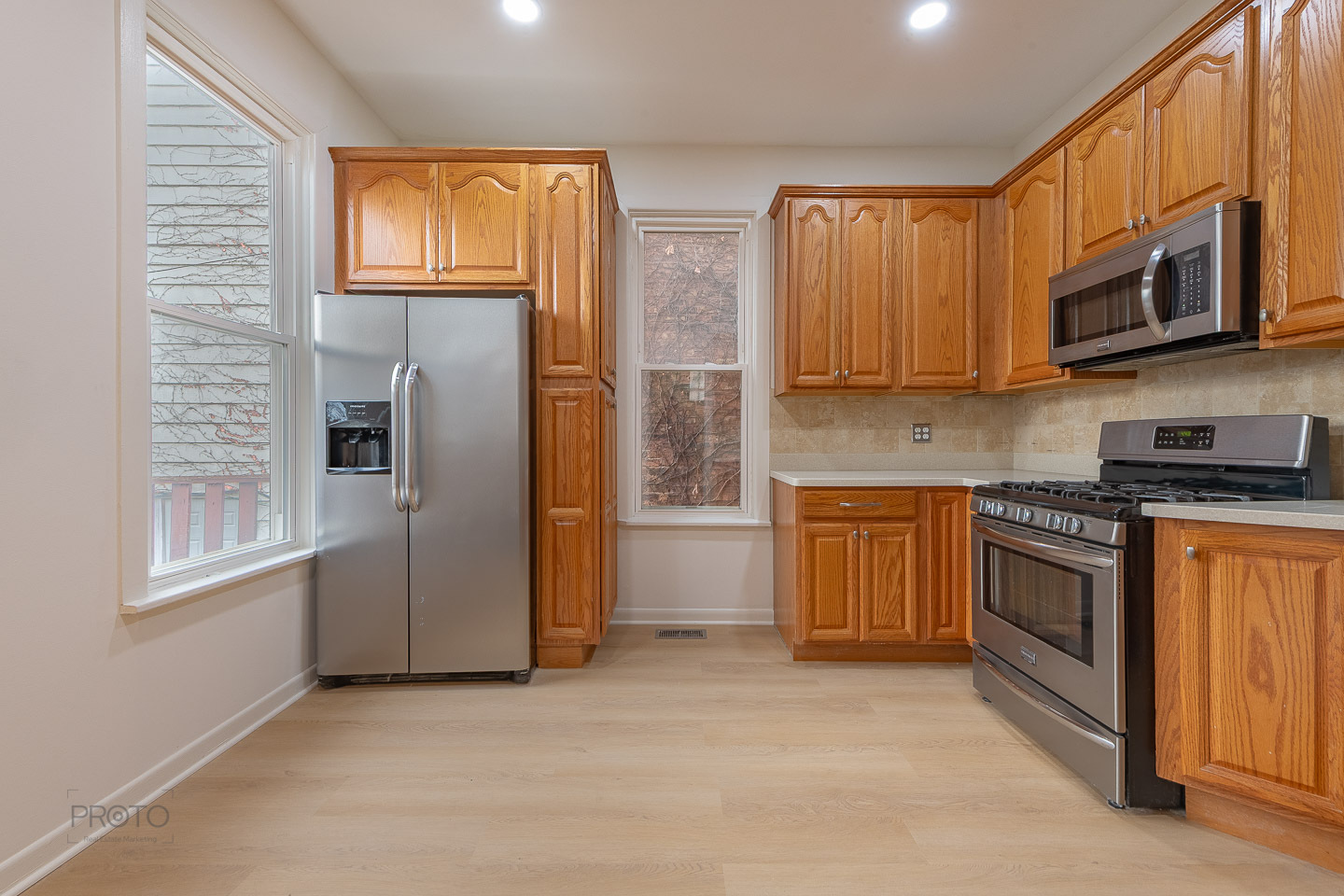 Step into timeless charm just steps from Kosciuszko (Thaddeus) Park in the heart of vibrant Logan Square. This enchanting late-1800s raised gable-style 4BR/2BA home blends historic character with thoughtful modern updates, creating a space that feels both warm and move-in ready. Soaring nearly 12-foot ceilings on the main level set a dramatic tone, complemented by brand-new flooring and carpeting (2025) and sunlight streaming through newer windows (beneath the carpet, original hardwood floors await their grand reveal if desired). The home has been meticulously maintained with major upgrades already done: a new 50-gallon water heater (2025), newer furnace (2018) and a/c (2017), and roof and siding (2020), offering peace of mind for years to come. The layout is as flexible as it is inviting, featuring formal living and dining rooms, four bedrooms some with walk-in closets, and a second-floor den or family room perfect for work, play, or relaxation. The full, unfinished basement, with 7-foot ceilings, offers massive potential to expand: additional bedrooms, storage, playroom, or even an in-law arrangement. Outdoors, enjoy a huge fully fenced back and front yard and a large deck right off the kitchen, ideal for grilling, entertaining, or simply unwinding. A 2-car detached garage completes the package. All of this in an unbeatable Logan Square location, moments from Kosciuszko Park, the Logan Square Dog Park, the Balloon Museum, and beloved neighborhood favorites like Sugar Moon Bakery (amazing!), Brew Brew Coffee & Tea, Factotum Coffee, Cermak Fresh Market, and the Logan Square Blue Line. A rare blend of historic soul, modern comfort, and unbeatable location. This is Logan Square living at its best.