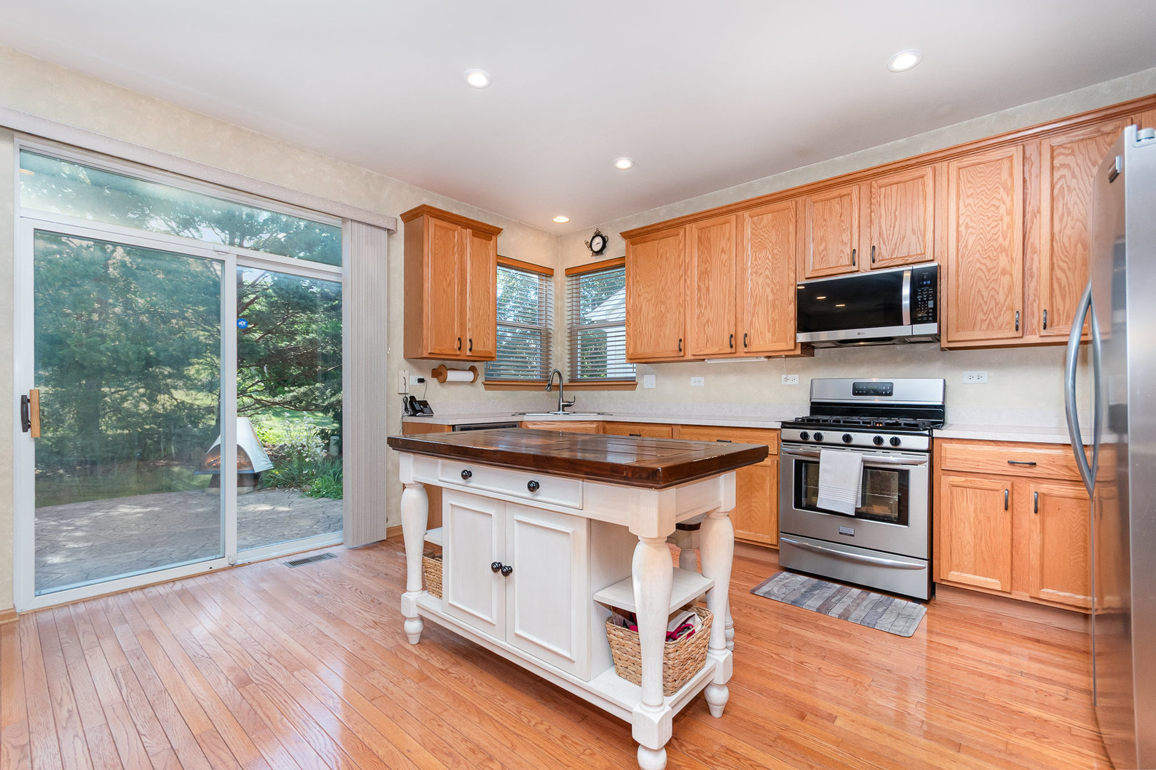 Discover your own private oasis in this well-cared-for 3-bedroom home with a spacious second-floor loft. Tucked away with no rear neighbors, this property backs to a scenic walking trail and features a large patio shaded by mature trees for added privacy and relaxation. Inside, you’ll find a smart, open layout complemented by extensive updates from 2019 through 2024. Key improvements include updated window treatments upstairs and on the patio [2019], refreshed bathroom and laundry room flooring along with new toilets [2020], recessed lighting in the family room [2020], a new furnace [2021], water heater and garage door opener [2022], roof replacement [2022], new A/C unit and washer/dryer [2023], and most recently, a new laundry sink, custom closet systems in the primary suite, and microwave [2024]. The first-floor laundry room adds convenience with its recent upgrades. Upstairs, the loft offers the flexibility to convert into a fourth bedroom if needed. The primary suite includes a full private bath with dual sinks, soaking tub, and separate shower. Downstairs, enjoy a finished basement that offers great additional living space and extra storage. The tandem 3-car garage provides plenty of room for both vehicles and gear. Located just blocks from Harvest Hills Park and close to Otter Cove Aquatic Park, Kane County Fairgrounds, and shopping at Costco and Meijer. Don’t miss your chance to own this move-in ready gem in a prime location!