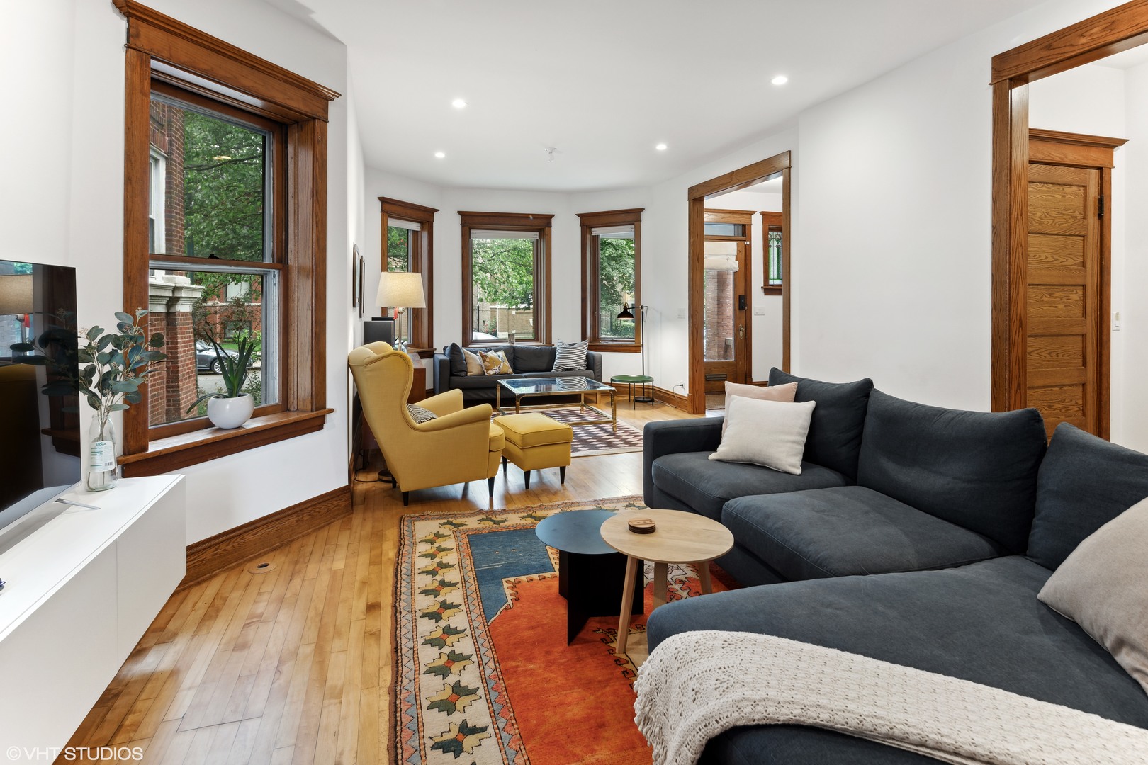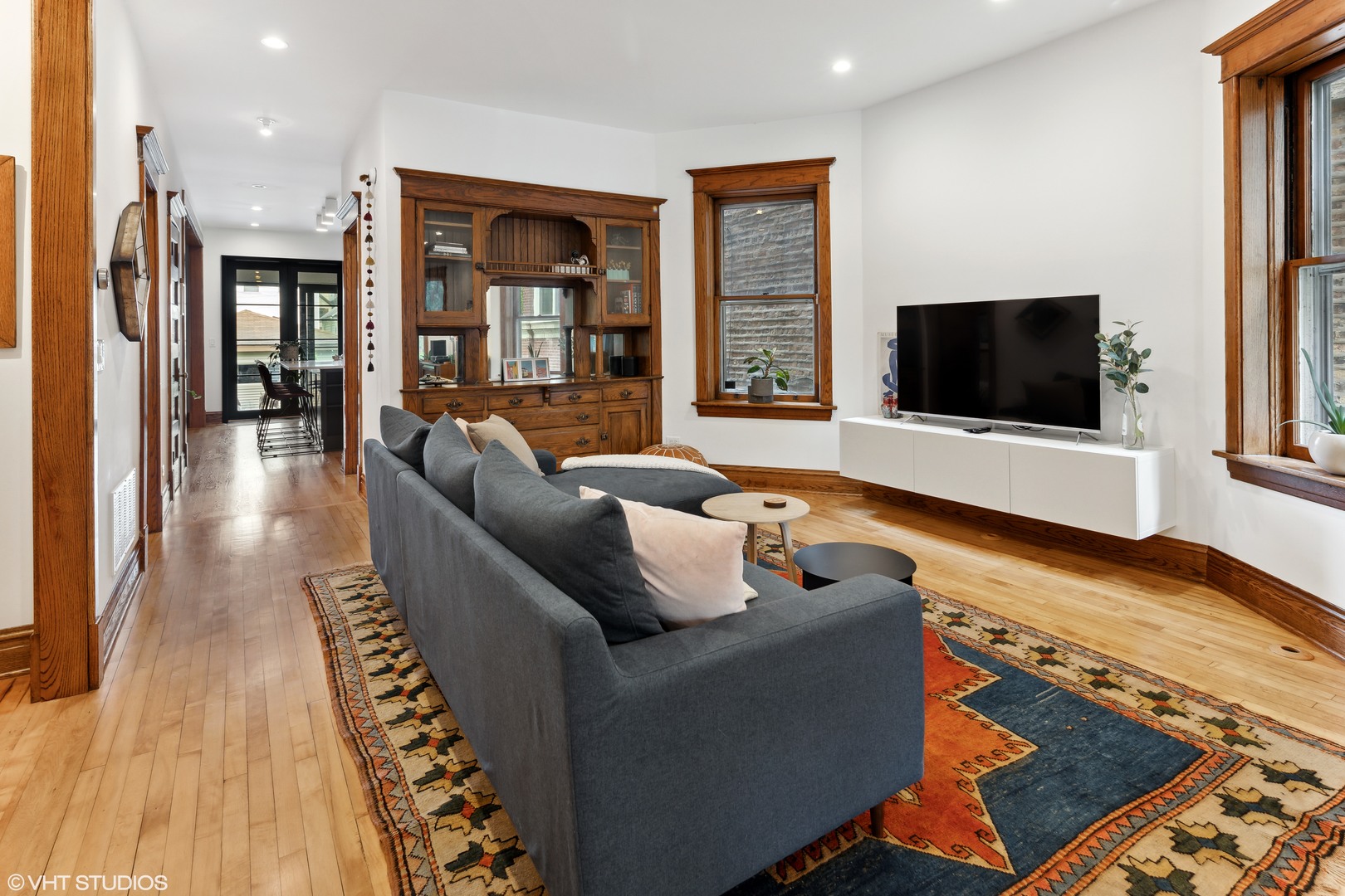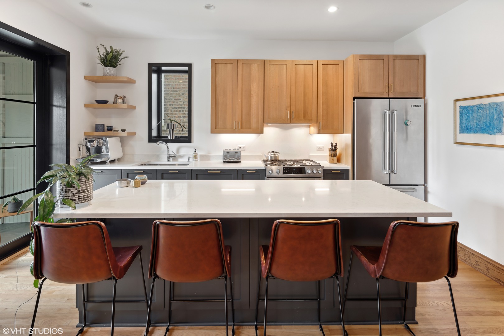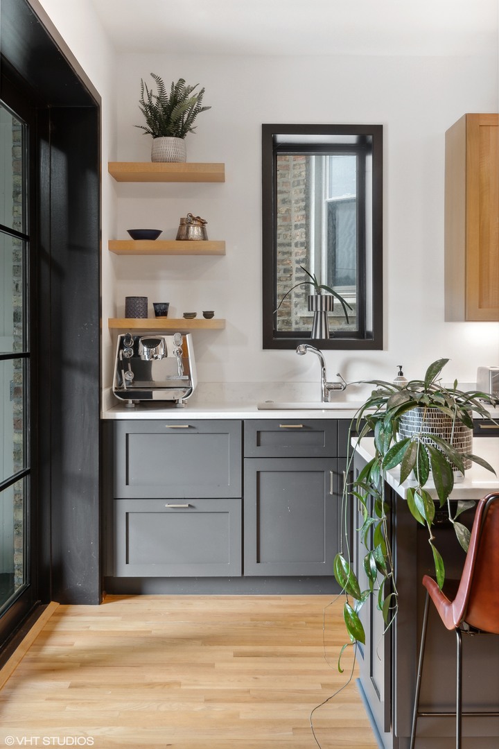 This beautifully reimagined (renovated in 2018) 4-bedroom, 2.5-bathroom residence blends classic architectural character with elevated modern design across three spacious and sun-filled levels. Situated on an oversized 28′ x 126′ (Per survey) lot and nestled just off Logan Boulevard, the home features nearly ~2,400 square feet of thoughtfully updated living space with restored original woodwork, clean lines, and premium finishes throughout (~1200 Sq ft of additional space in the unfinished basement which houses additional laundry/mechanicals). The main level offers a bright, open layout with refinished hardwood floors, oversized windows, and seamless flow between the living, family, and dining areas. A flexible fourth bedroom doubles as a home office, and a tastefully designed powder room adds convenience. At the heart of the home is a stunning chef’s kitchen featuring custom quarter-sawn oak cabinetry, warm wood uppers, black-framed windows, large island with quartz countertops seating for four, open shelving, and a high-end stainless steel appliance suite. The dining area opens to a professionally landscaped backyard with stone pavers, and a detached two-car garage-perfect for indoor/outdoor entertaining. Upstairs, you’ll find three generously sized bedrooms and two full baths, including a spacious primary suite with a walk-in closet and a beautifully renovated bath with dual vanities and an oversized walk-in shower. A conveniently located laundry area completes the upper level. The unfinished basement (~1200 Sq. ft) includes a second laundry area and mechanicals, offering potential to build out additional living space, a workshop, or gym. The property is also located in an ADU-eligible, allowing for future expansion via a garden unit or coach house. Located steps from Logan Boulevard, Palmer Square, and the California Blue Line, this home offers unbeatable walkability to Logan Square’s renowned restaurants, cafes, boutiques, and one of Chicago’s best farmers markets