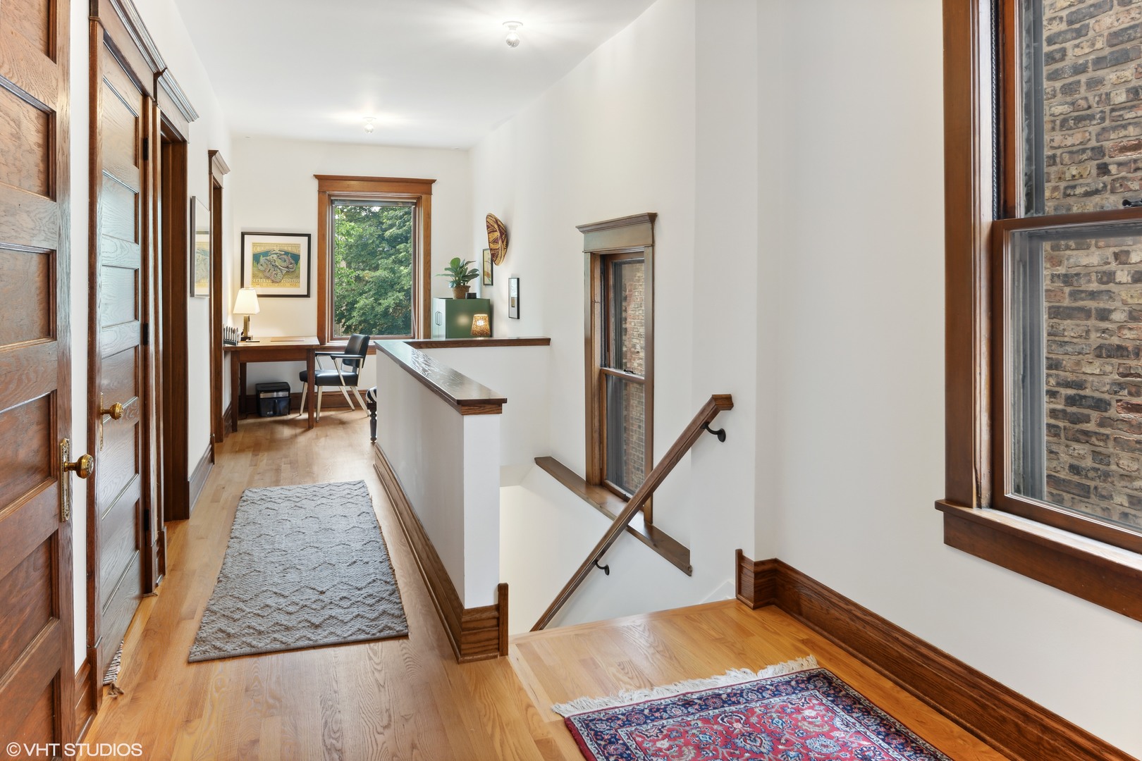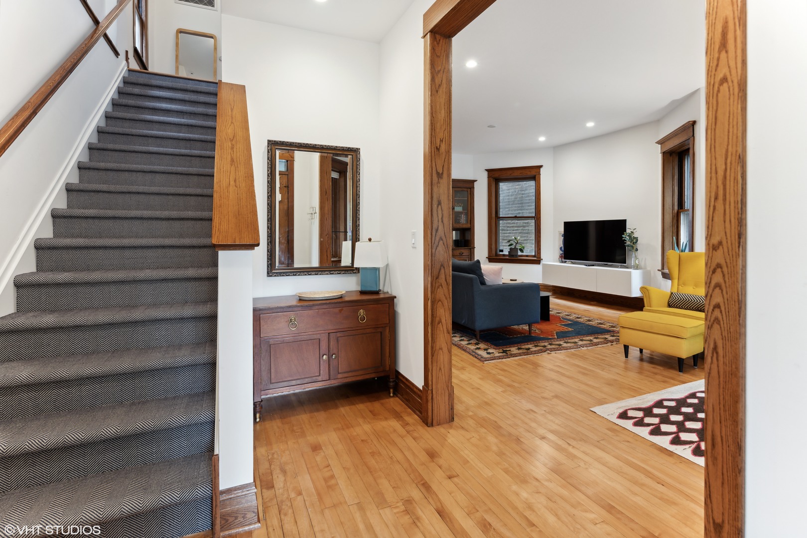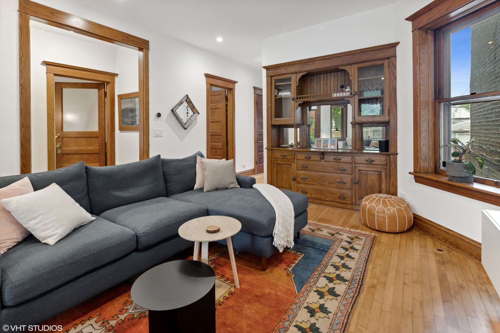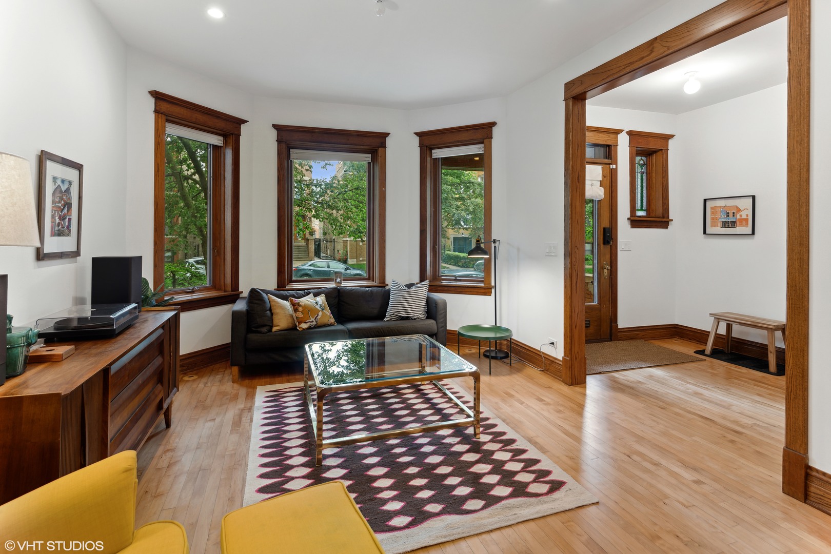 This beautifully reimagined (renovated in 2018) 4-bedroom, 2.5-bathroom residence blends classic architectural character with elevated modern design across three spacious and sun-filled levels. Situated on an oversized 28′ x 126′ (Per survey) lot and nestled just off Logan Boulevard, the home features nearly ~2,400 square feet of thoughtfully updated living space with restored original woodwork, clean lines, and premium finishes throughout (~1200 Sq ft of additional space in the unfinished basement which houses additional laundry/mechanicals). The main level offers a bright, open layout with refinished hardwood floors, oversized windows, and seamless flow between the living, family, and dining areas. A flexible fourth bedroom doubles as a home office, and a tastefully designed powder room adds convenience. At the heart of the home is a stunning chef’s kitchen featuring custom quarter-sawn oak cabinetry, warm wood uppers, black-framed windows, large island with quartz countertops seating for four, open shelving, and a high-end stainless steel appliance suite. The dining area opens to a professionally landscaped backyard with stone pavers, and a detached two-car garage-perfect for indoor/outdoor entertaining. Upstairs, you’ll find three generously sized bedrooms and two full baths, including a spacious primary suite with a walk-in closet and a beautifully renovated bath with dual vanities and an oversized walk-in shower. A conveniently located laundry area completes the upper level. The unfinished basement (~1200 Sq. ft) includes a second laundry area and mechanicals, offering potential to build out additional living space, a workshop, or gym. The property is also located in an ADU-eligible, allowing for future expansion via a garden unit or coach house. Located steps from Logan Boulevard, Palmer Square, and the California Blue Line, this home offers unbeatable walkability to Logan Square’s renowned restaurants, cafes, boutiques, and one of Chicago’s best farmers markets