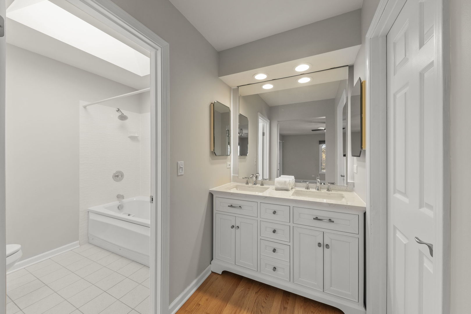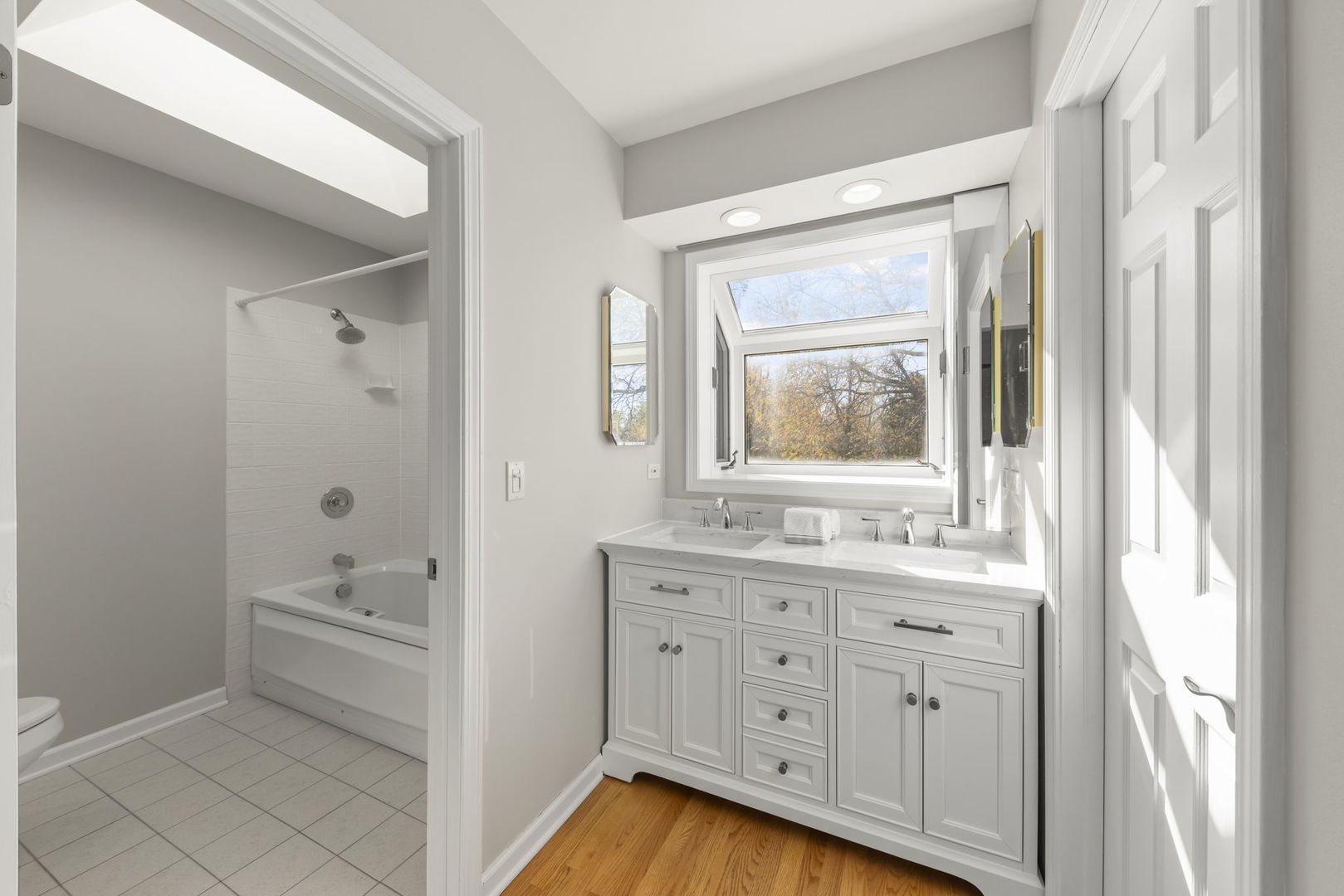 Stunning and impeccably maintained, this Green Trails 4 bedroom, 2.1 Bath gem sits on an extra-large premium lot backing to peaceful walking paths and a tranquil pond-offering a beautiful, natural backdrop every day! Located in top-rated Naperville District 203, this thoughtfully updated home blends comfort, style, and ease in every room. The fully renovated kitchen is truly the heart of the home, featuring quartz counters, tile backsplash, soft-close upgraded cabinetry, updated appliances, hardwood floors, touchless Moen faucet, closet pantry, gas option for the range, and a spacious eat-in area that opens to the deck-perfect for morning coffee or sunset dinners. Freshly painted and finished with rich hardwood flooring throughout both levels, this home showcases elegant French doors, updated baths, skylights, elevated lighting, and modern, timeless finishes. The expanded living room and inviting dining room allow for wonderful gatherings, and the beautiful family room with brick fireplace is perfect for enjoying quiet evenings and everyday living. Upstairs are four generously sized bedrooms, with a master suite featuring updated bath and walk-in closet. Major mechanical updates provide peace of mind, including a newer high-efficiency furnace, Honeywell UV sterilizer, Aprilaire humidifier, 5″ media air filter, radon system with fan, whole-house fan and power vent, newer roof with skylights, updated windows, and a full basement with excellent storage potential. Additional highlights include an epoxied garage floor, attic storage with pull-down ladder, Ring doorbell, Google Nest cameras, newer LG washer/dryer, updated laundry sink, and upgraded hardware throughout. Ideally located close to shopping, dining, parks, miles of trails, and easy highway access, this home offers a lifestyle that blends natural beauty with everyday convenience-an exceptional place to live, gather, and enjoy!
