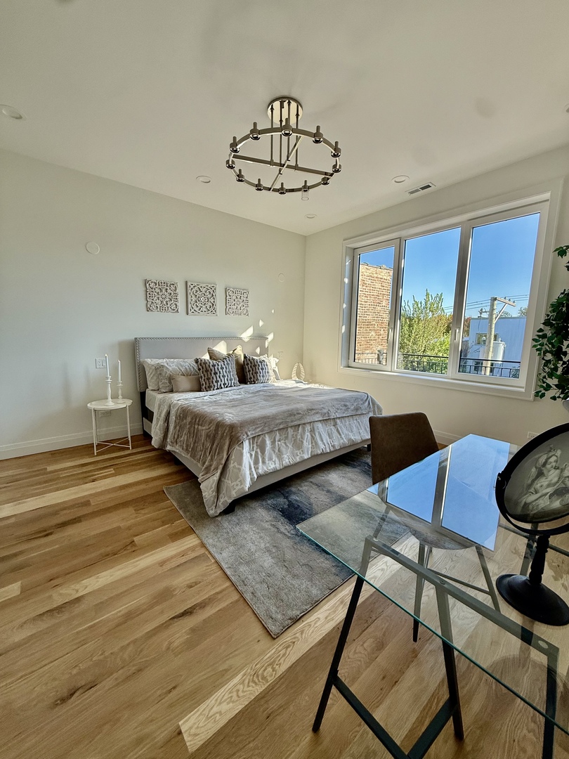 JUST COMPLETED! FOR LIMITED TIME, DEVELOPER/PREFERRED LENDER ARE OFFERING A 1% BUY DOWN ON THE CURRENT RATE! Unrivaled among area top-floor homes-wider, brighter, and offering the best price per square foot in the area. Introducing a premier new-construction residence with an ENORMOUS PRIVATE ROOFTOP DECK WITH INCREDIBLE CITY VIEWS! Built with RM4.5 zoning, this home offers significantly more space than typical 3-flats. High-end finishes throughout, including a chef’s kitchen with European cabinetry, quartz countertops, stainless steel appliances and Restoration Hardware lighting. Luxurious spa-like baths feature porcelain tile floors and ample storage. Expansive front windows and premium European tilt-and-turn windows provide exceptional insulation, soundproofing, and natural light. Flexible 2BR + built-out office + wet bar, with additional top-floor storage-ideal for work-from-home and entertaining. A+ location: close to Spinning J, California Clipper, and Lucy’s; 3 blocks to the Western bus line; approx. 1.5 miles to the Western Blue Line station; near Smith Park and within easy reach of Bucktown, and Wicker Park to this- Bucktown, Wicker Park and Ukrainian Village. Walk & Bike Score: 90. Only 2 left…