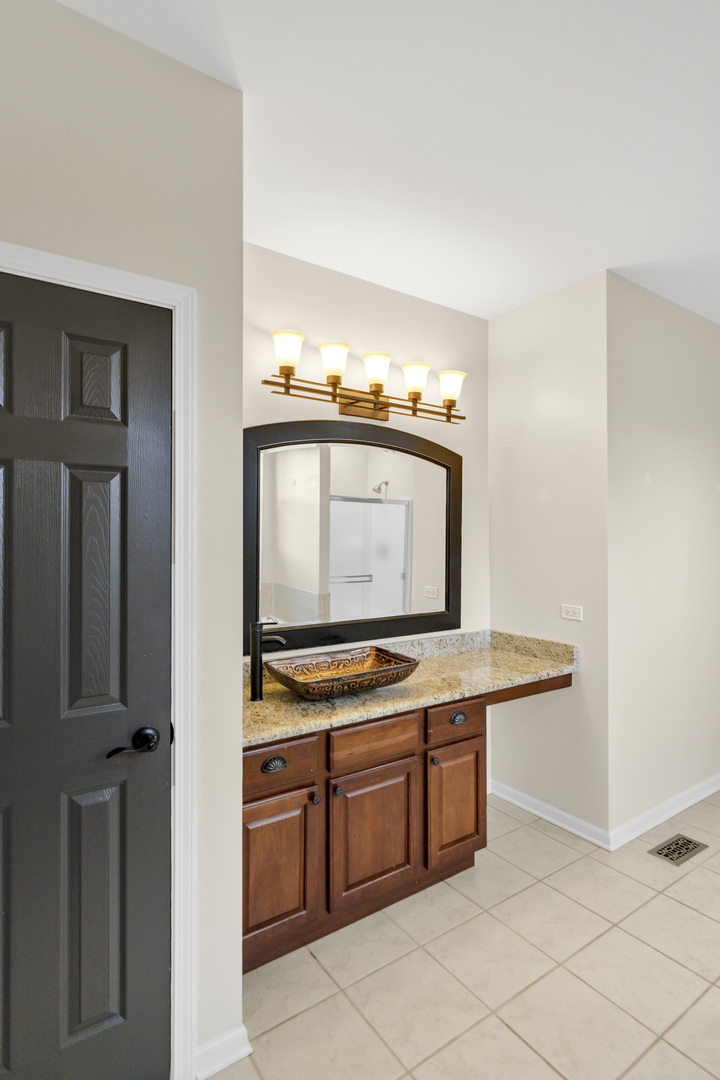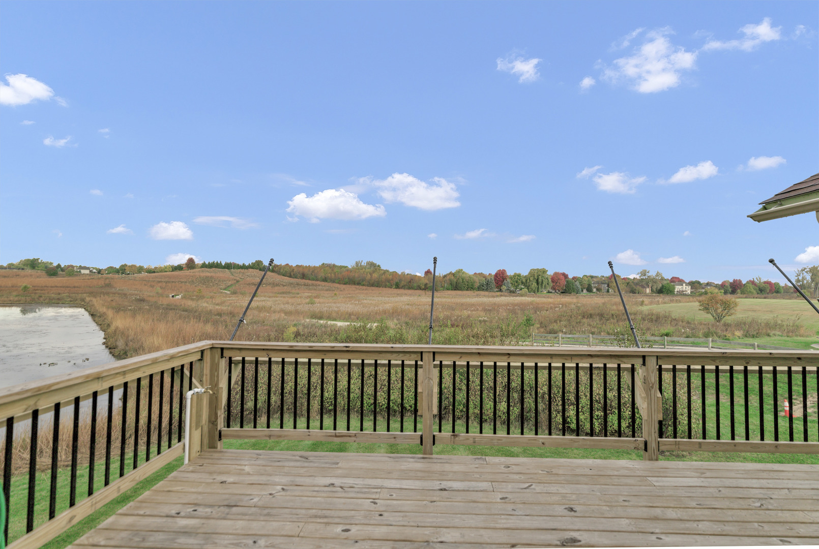 Enjoy nature and comfort in this beautifully updated 3-bedroom, 2-bath ranch home overlooking a peaceful retention pond and scenic 43-acre walking path. With over 2,140 sq ft of living space, this spacious layout features an expansive great room-perfect for entertaining and everyday living. The kitchen shines with new granite countertops, repainted cabinets, and KitchenAid stainless steel appliances (1 year old). A breakfast bar connects the kitchen to the great room, making it ideal for gatherings. The oak hardwood floors throughout the kitchen, great room, den, and foyer have been recently refinished, adding warmth and elegance. The primary suite offers a jetted soaking tub and walk-in closet, while the second bathroom was updated five years ago. Both bathrooms feature granite countertops, and nearly the entire interior (excluding the primary bedroom) has been freshly repainted. This home also boasts a walk-out basement-a blank canvas with plumbing already roughed in for a future bathroom. Major updates include new siding, freshly painted exterior trim, refinished landscaping, a painted garage with new shelving, and a new exterior deck and back stairway. The furnace and water heater were replaced five years ago, and a water filtration system has been installed. The washer and dryer are also just one year old. Enjoy the four-seasons room year-round or step outside to Ted Spella Community Park, located right in your backyard. Close to the public library and the shops and restaurants along Randall Road, this home in the Grand Reserve 55+ Community offers both tranquility and convenience. Move-in ready and beautifully maintained – schedule your showing today!