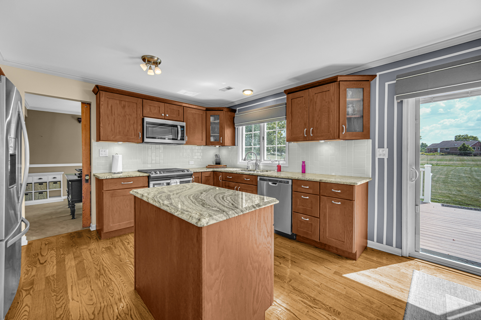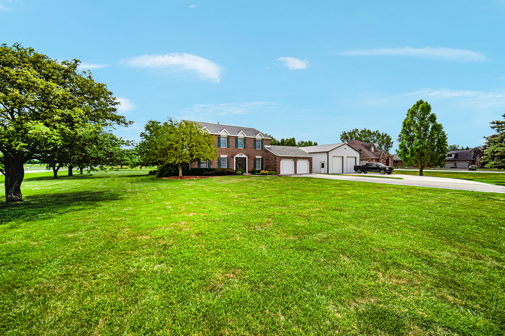 The ultimate property for car lovers, hobbyists, or anyone who loves space to breathe! This one-of-a-kind custom home has been meticulously maintained and sits on a beautifully landscaped one-acre corner lot. Pride of ownership is evident throughout. Inside, you’ll find a warm, inviting interior with hardwood floors and a cozy wood-burning fireplace anchoring the family room. The updated kitchen features stainless steel appliances, granite countertops, a stunning subway tile backsplash, a large prep island, and space for casual dining. Patio doors lead out to an oversized 15×44 vinyl deck – the perfect spot to relax and take in views of the peaceful, manicured backyard. Upstairs, you’ll find four generously sized bedrooms, including a spacious primary suite with three walk-in closets and a spa-like bath complete with dual sinks, a whirlpool tub, and a separate shower. The attached garage is fully finished and features heating and cooling, offering additional comfort and convenience. A large shed with electric provides even more storage and flexibility. But the true standout feature of this property is the newly built 38×32 pole barn – fully insulated, finished with white tin inside, heated, and built with 5-inch concrete floors. With 11’6″ ceiling height, two 240V welder plugs, ten 120V outlets, bright LED lighting, 5-inch gutters, and conduit prepped for a lift, it’s the ultimate setup for working on race cars, hot rods, motorcycles, or storing your favorite toys. This is a true dream space for anyone who needs room to create, tinker, or store with ease. Other updates include a new roof installed just three years ago. This property offers the perfect blend of quality craftsmanship, function, and lifestyle – a rare find you won’t want to miss. Make your appointment today and come see everything this incredible home has to offer!