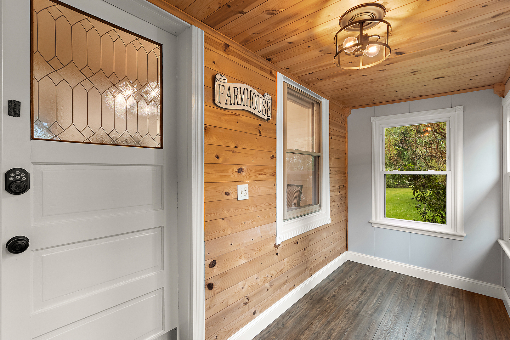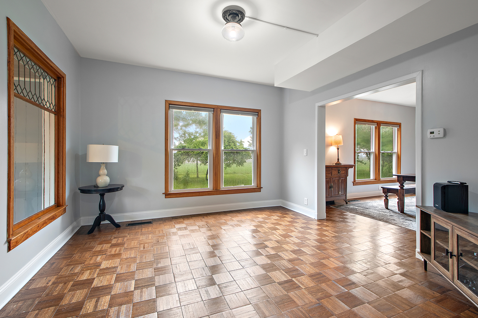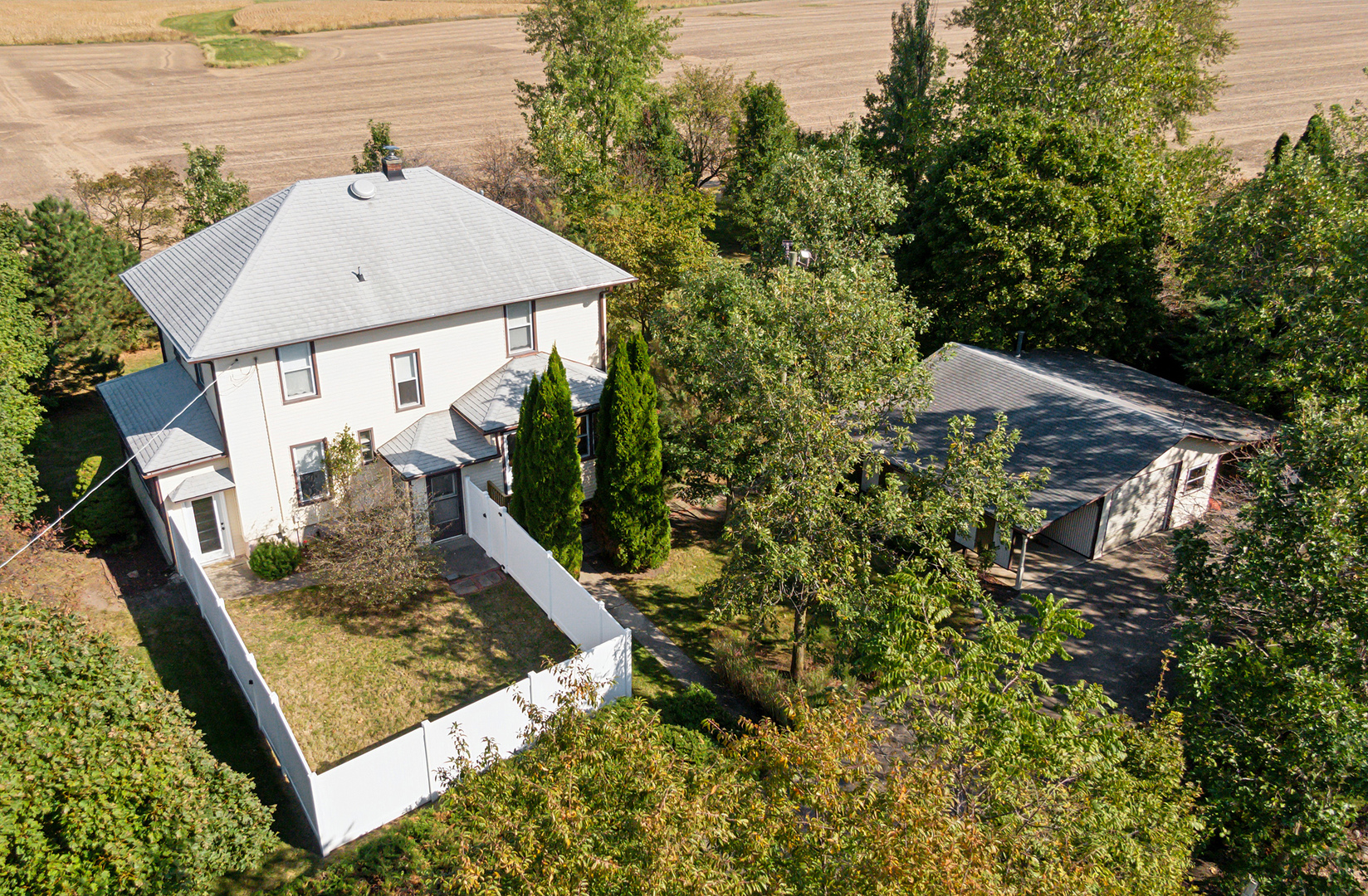 Check out this absolutely stunning Farmhouse on one of a kind 1 acre wooded lot! Dynamite updated eat in kitchen with new cabinets, quartz counters/backsplash, farmhouse sink, ceramic tile plank flooring, rustic ceilings and SS appliances! Elegant formal dining room with hardwood floors, updated fixture plus 9ft ceilings! Cozy living room with hardwood floors and built in stained glass window plus separate den/flex room! Updated guest powder room with new vanity, ceramic tile flooring and fixtures! 2nd floor features 4 beds all with hardwood flooring and original doors/trim! Updated 2nd floor full bath with new vanity, stool, ceramic tile flooring and shower! Main floor laundry (all new appliances will stay) plus full basement! Home also features remodeled back porch with new flooring plus remodeled front 3 season room totally updated too! New Furnace/AC in ’17! New roof @ ’13! Vinyl replacement windows throughout! New back stairs! 1 car detached garage plus 2 covered carports! Extra wide drive for plenty of vehicles! Exterior has a small fenced area leading to gorgeous wooded lot with numerous fruit trees! Super private location–no direct neighbors yet close to shopping and entertainment! It’s your own private oasis! Don’t miss this showstopping property!