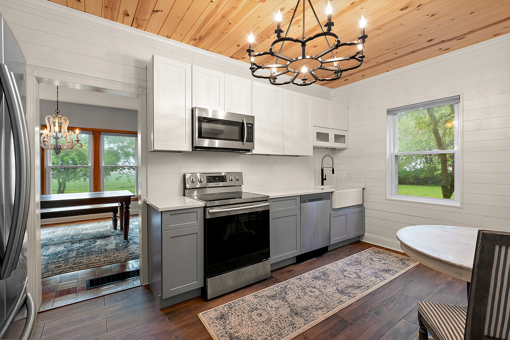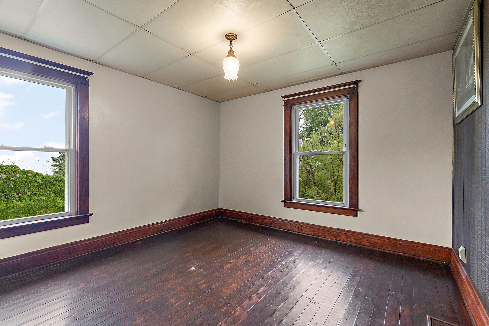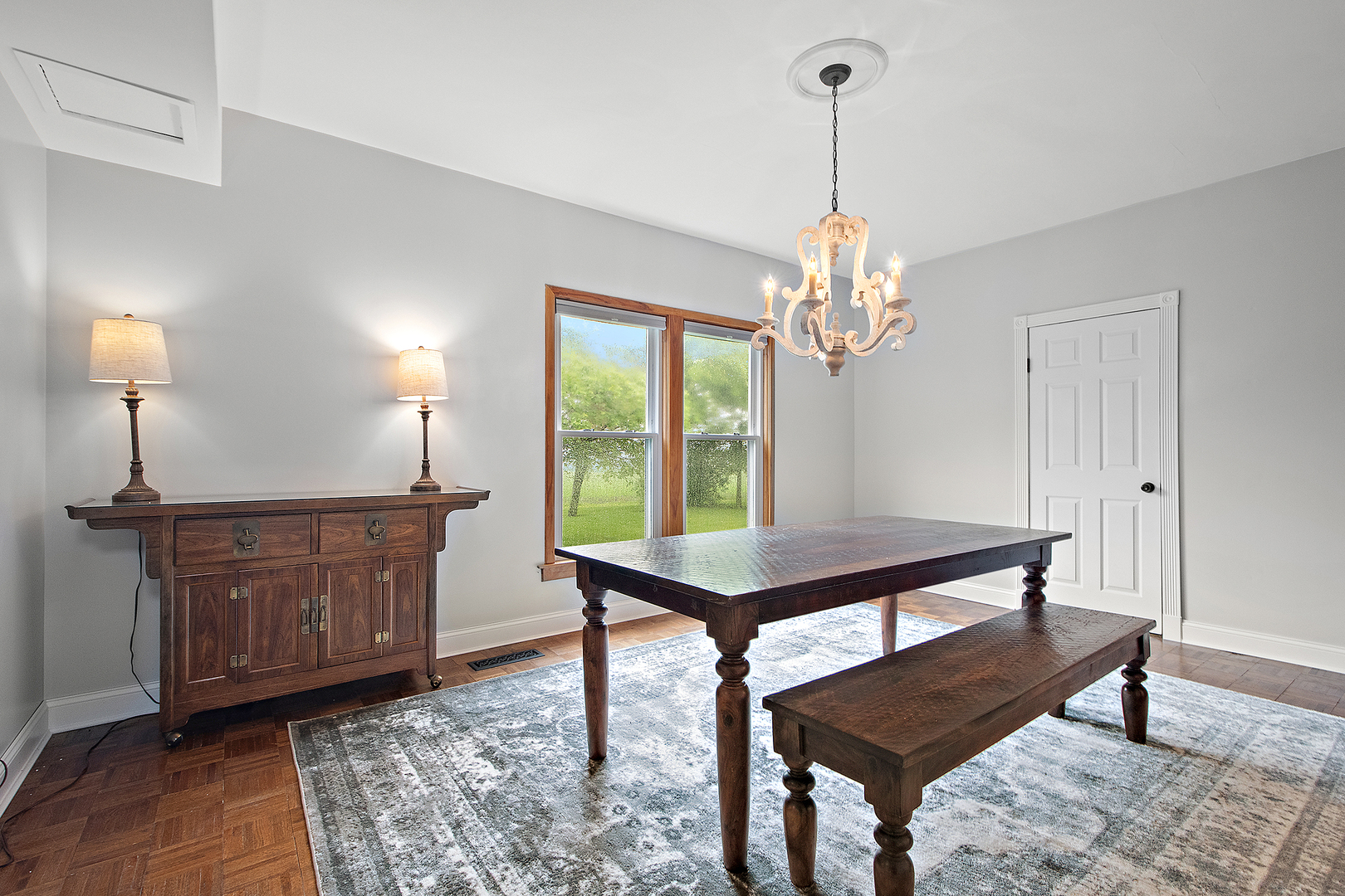 Check out this absolutely stunning Farmhouse on one of a kind 1 acre wooded lot! Dynamite updated eat in kitchen with new cabinets, quartz counters/backsplash, farmhouse sink, ceramic tile plank flooring, rustic ceilings and SS appliances! Elegant formal dining room with hardwood floors, updated fixture plus 9ft ceilings! Cozy living room with hardwood floors and built in stained glass window plus separate den/flex room! Updated guest powder room with new vanity, ceramic tile flooring and fixtures! 2nd floor features 4 beds all with hardwood flooring and original doors/trim! Updated 2nd floor full bath with new vanity, stool, ceramic tile flooring and shower! Main floor laundry (all new appliances will stay) plus full basement! Home also features remodeled back porch with new flooring plus remodeled front 3 season room totally updated too! New Furnace/AC in ’17! New roof @ ’13! Vinyl replacement windows throughout! New back stairs! 1 car detached garage plus 2 covered carports! Extra wide drive for plenty of vehicles! Exterior has a small fenced area leading to gorgeous wooded lot with numerous fruit trees! Super private location–no direct neighbors yet close to shopping and entertainment! It’s your own private oasis! Don’t miss this showstopping property!