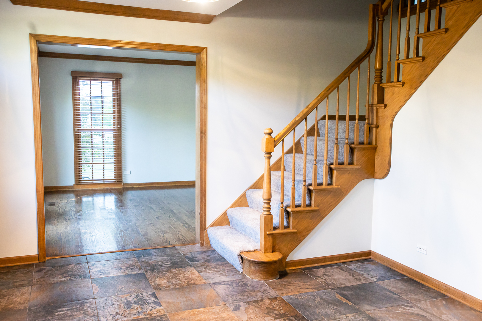 Welcome to 2697 Fox River Lane – a beautifully renovated, turn-key 5-bedroom home located in the prestigious River Woods subdivision of Naperville. As you walk into the grand foyer, you’re welcomed by high ceilings that flow seamlessly throughout the home, creating a sense of openness and elegance. The formal living room features vaulted ceilings and a cozy brick fireplace, flanked by custom built-in bookshelves and a wet bar-perfect for both everyday living and entertaining. The gourmet kitchen, with its custom cabinetry, granite countertops, stainless steel appliances, sizable island, with built in stove top and modern stainless steel hood. The expansive kitchen boast both seat in dinning and formal dinning areas, walk-in pantry, flowing seamlessly. First floor offers an additional bedroom, guest quarters or even an first floor office. Beautiful hardwood floors grace the main level, while all bedrooms are freshly outfitted with plush new carpeting. The expansive basement is a true highlight, featuring a private extra room with an egress window, plus a versatile extra room with French doors, ideal for a home office, fitness area, guest room, or creative workspace. You’ll also find a dedicated theater room with surround sound, theater seating, projector, and screen-perfect for family movie nights or entertaining guests. Basement also holds much space for several custom built-ins, countertop space, and closets. Perfect for storage. The primary suite delivers a spa-like retreat with vaulted ceilings and a skylight that floods the space with natural light. The updated bathroom showcases dual vanities, a walk-in shower, soaking tub, and elegant porcelain tile flooring. Each bedroom being sizable with ample closet space. Step outside to a serene, private setting: the fenced backyard is shaded by mature trees and includes a generous deck and brick paver patio-perfect for outdoor dining and relaxation. The home is further enhanced by a custom brick driveway, custom storage in garage with epoxy floors, updated HVAC and AC systems, and a newer roof, ensuring long-term peace of mind. Spanning nearly 4,326 square feet of thoughtfully designed space, both above and below grade, this home offers both elegant entertaining areas and relaxed living. Nestled in a top-tier Naperville school district and close to forest preserves, parks, and amenities, 2697 Fox River Lane presents a rare blend of style, functionality, and location-all ready for you to enjoy and call home.
