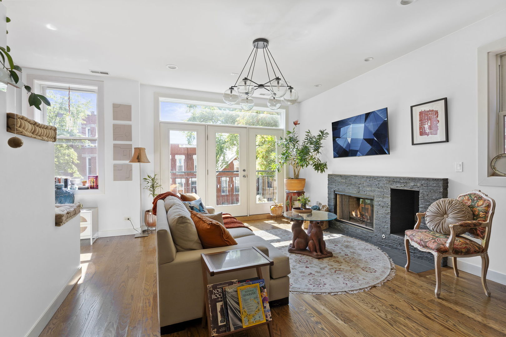 This 2 bed/2 bath condo offers a bright and spacious layout with wide plank hardwood floors throughout. The living room features a gas fireplace, and the kitchen is equipped with custom gray cabinetry, quartz countertops, and stainless steel appliances. The primary suite includes a double vanity, soaking tub, and a glass walk-in shower. Enjoy an oversized rear deck for outdoor living, plus in-unit laundry, garage parking, and private storage. Located in West Town, just walking distance to dining, shopping, and all the neighborhood has to offer.