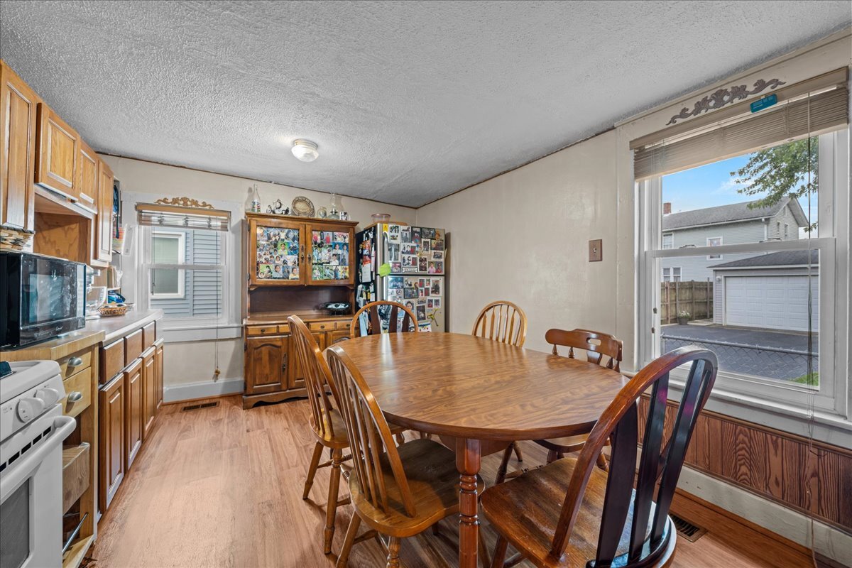 Cozy, warm and charming and VERY well maintained are some great ways to describe this lovely home. Fantastic price, too! Such wise use of space. Great living room is big enough to gather for game night. There is a smart office that overlooks the front yard. There is a large eat-in kitchen, and all appliances stay! Three bedrooms and a full bathroom, too. All bedrooms have plenty of closet space. The basement is unfinished. The beautiful backyard is fully fenced. There is a two car, detached garage. Some important updates include: Roof 5 years, 100 gallon water heater 2 years, gutters 3 years. Lovely little neighborhood makes a great place to start, or continue your story! Come home in time for the holidays!
