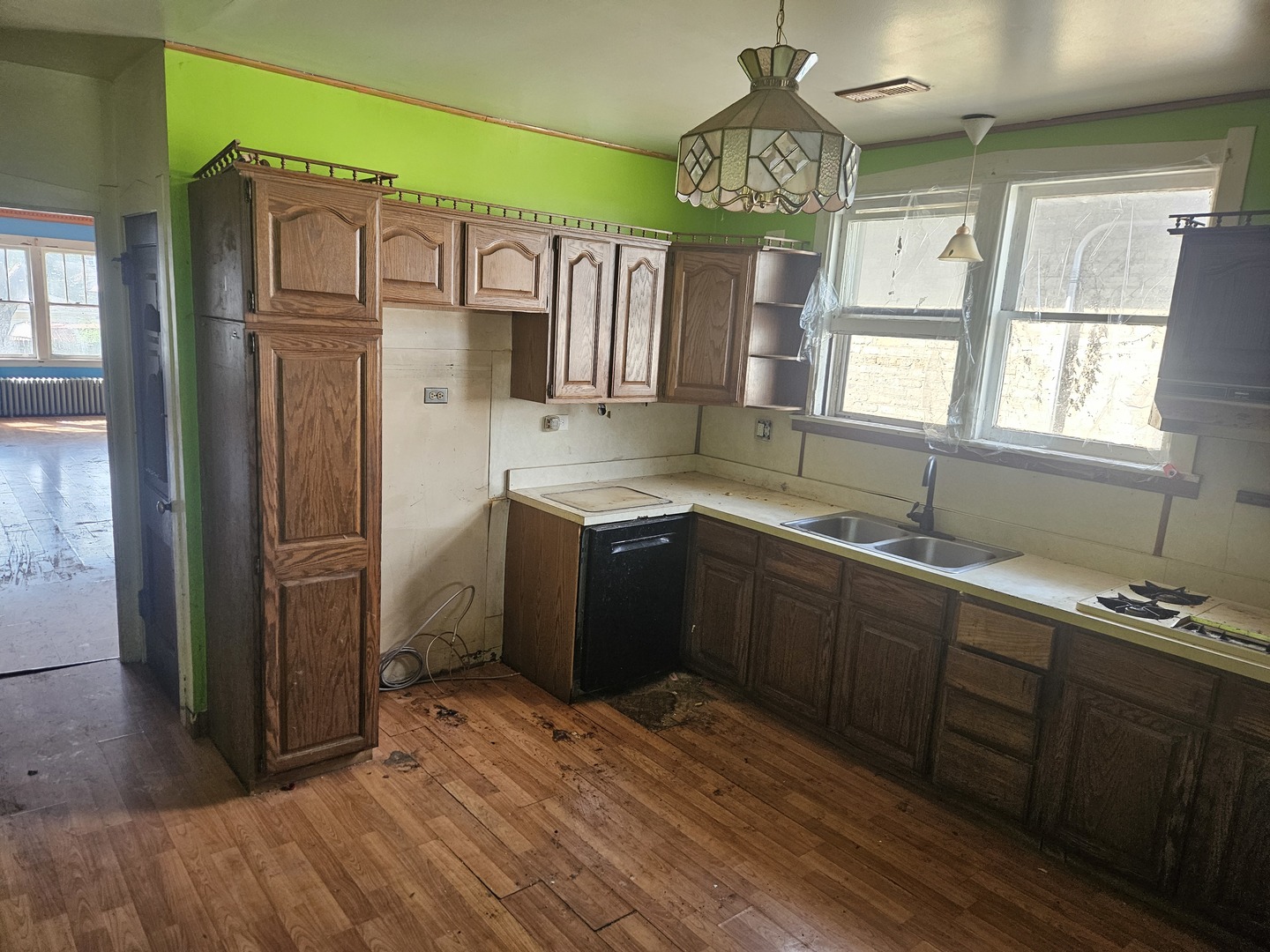 Brick Octagonal Brick bungalow, needs work. Careful with the front stairs as railing wall bricks are loose. Sold in As-is condition, seller makes no representations as to condition. Walking distance to Triangle Park childrens playground, restaurants/tavens,shopping on Conti Parkway, Metra. Cash purchase only.