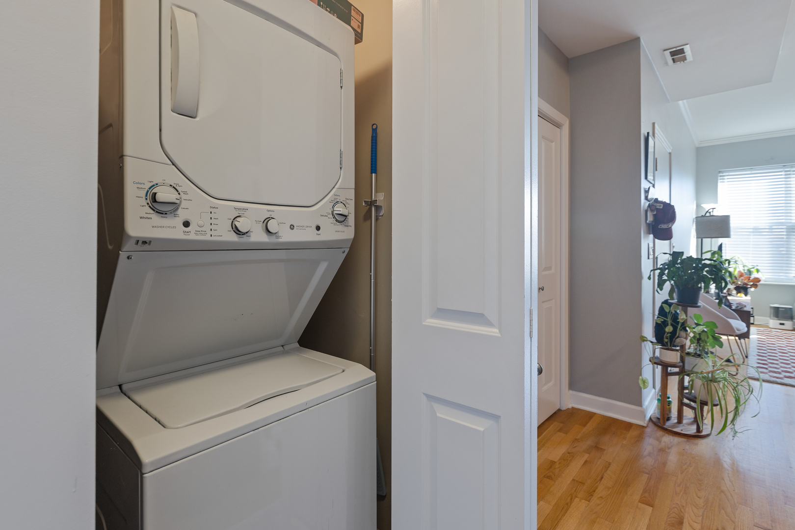 Prime Logan Square location! This top-floor, 2 bedroom, 1 bath condo has been beautifully updated with a great open-concept lay-out and provides loads of natural light. The kitchen boasts granite countertops, a breakfast bar that seats 4, 42″ cabinets and stainless-steel appliances. The outdoor deck is perfect for your am coffee and your pm BBQs. In-unit washer and dryer and great closet space. The building provides an additional storage locker and secure bike room. Less than 1 block from the Kedzie Blue Line and city permit parking. Steps from La Placita and all it has to offer. Down the street from the infamous Logan Square Farmers Market and some of the best restaurants and bars in the city – Saba Italian, Longman & Eagle, El Cid, just to name a few. This neighborhood is hopping!