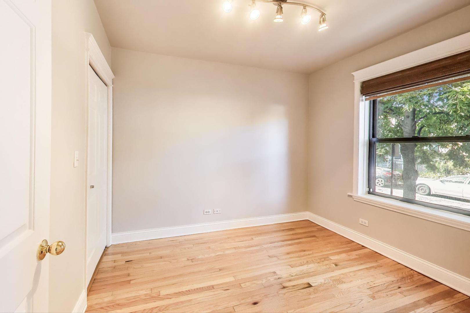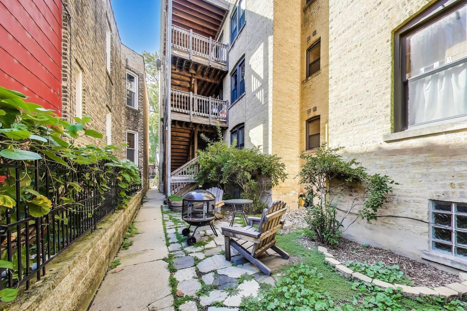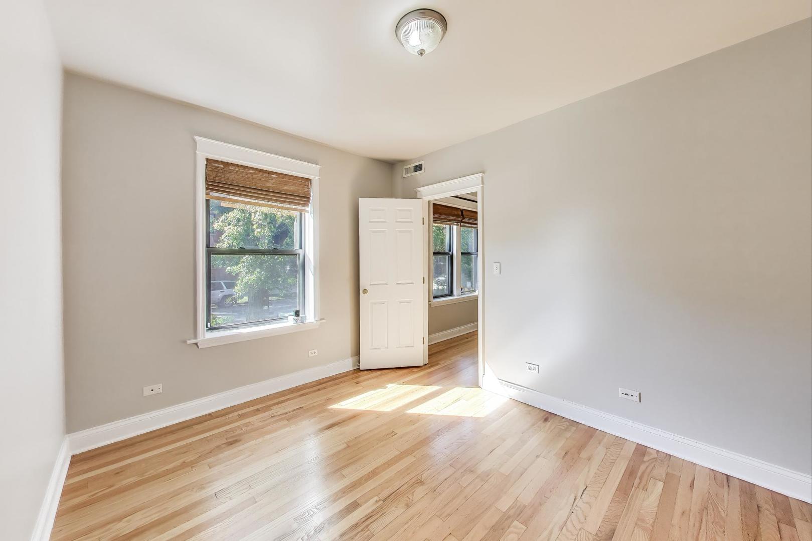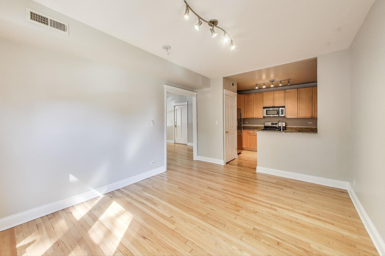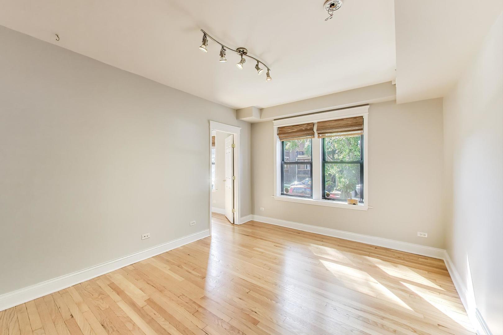 Amazing Avondale location! This bright, high first-floor corner unit offers 5 rooms, 2 bedrooms, and 1 bath. Freshly painted with newly refinished hardwood floors, the home features a separate dining room, breakfast bar kitchen with stainless steel appliances, and in-unit laundry with a stackable washer/dryer (2021). Recent mechanical updates include a new furnace and A/C (2024). Enjoy great storage, bike room, outdoor space, and a charming shared sitting area in back. Conveniently located near 90/94, the Blue Line and Logan Square, and just steps to fantastic restaurants and neighborhood hot spots. Move-in ready!