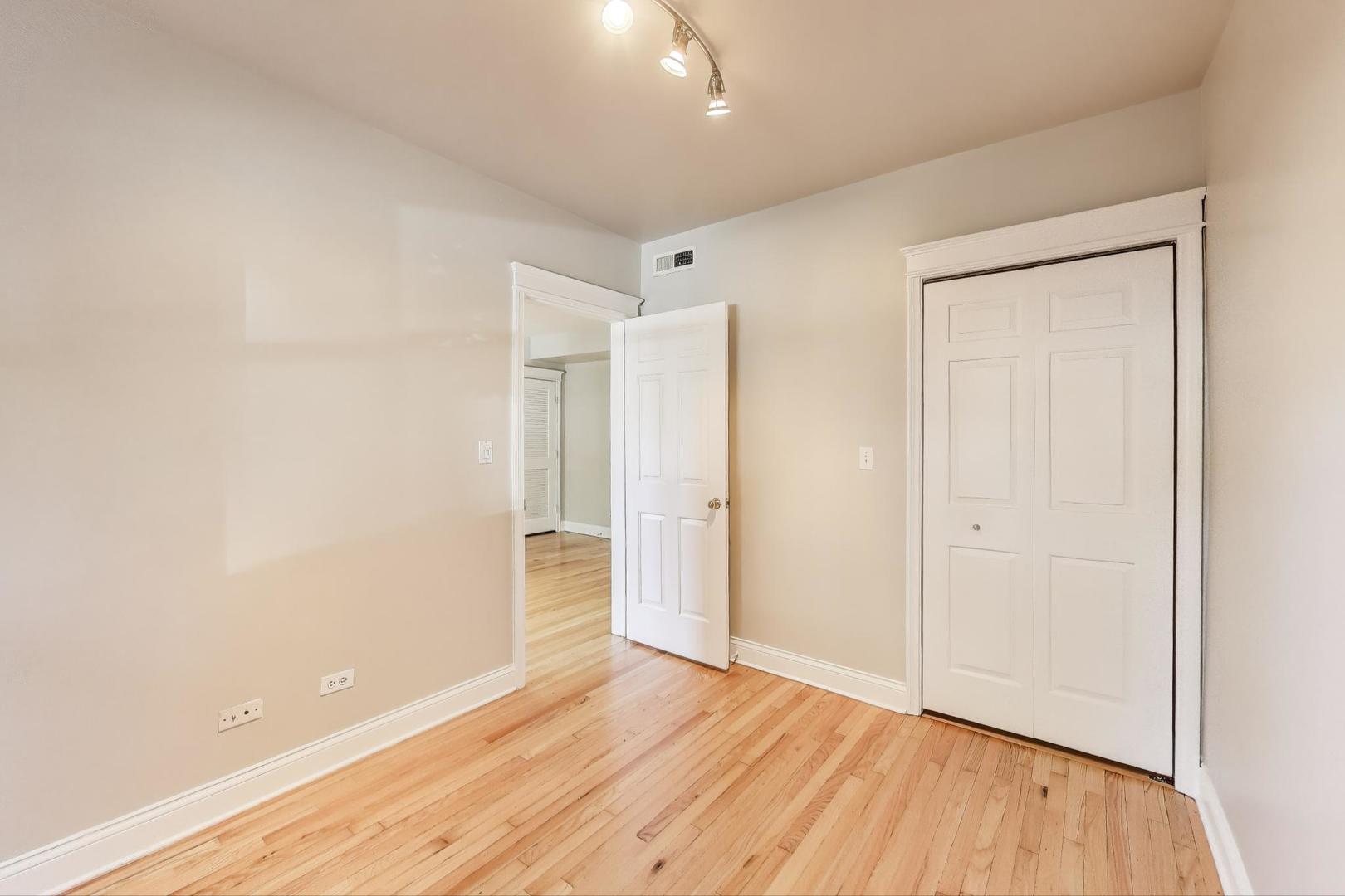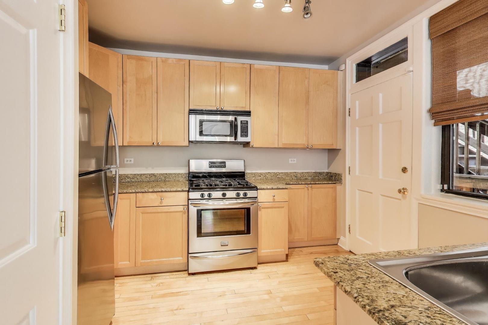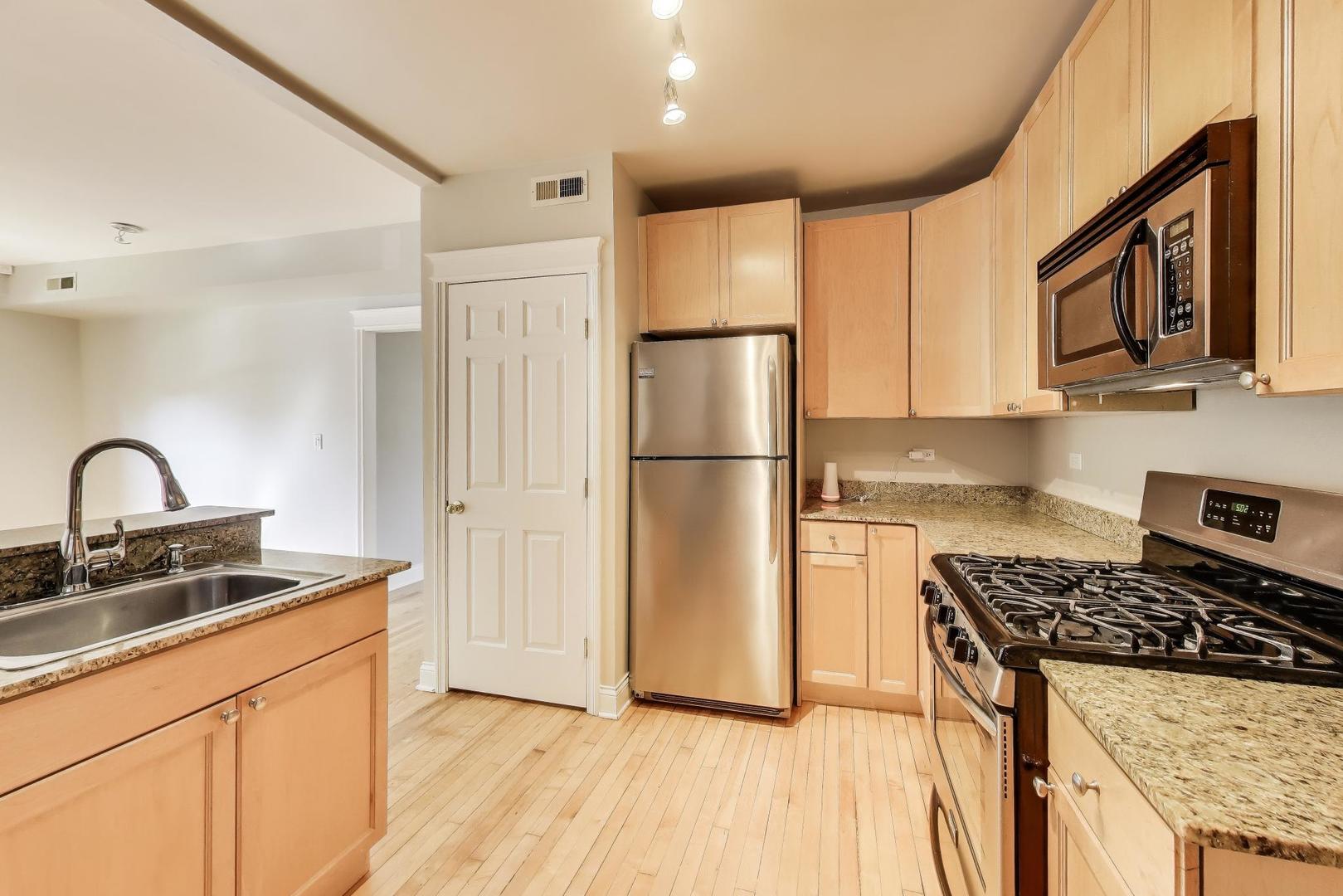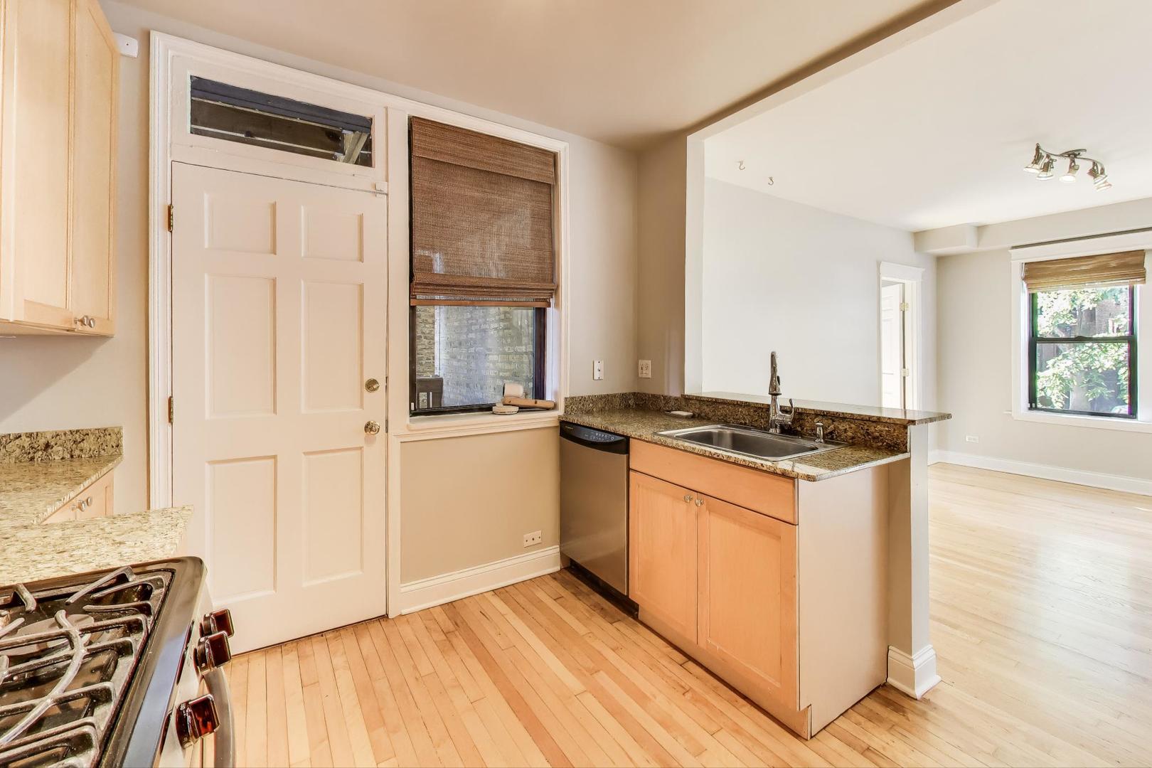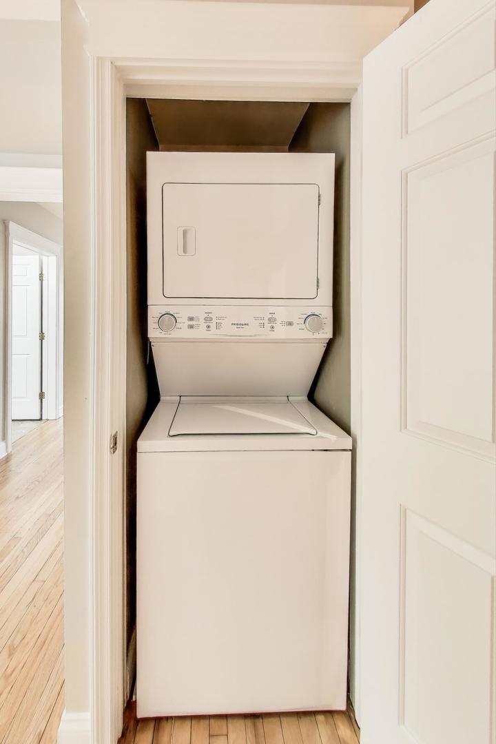 Amazing Avondale location! This bright, high first-floor corner unit offers 5 rooms, 2 bedrooms, and 1 bath. Freshly painted with newly refinished hardwood floors, the home features a separate dining room, breakfast bar kitchen with stainless steel appliances, and in-unit laundry with a stackable washer/dryer (2021). Recent mechanical updates include a new furnace and A/C (2024). Enjoy great storage, bike room, outdoor space, and a charming shared sitting area in back. Conveniently located near 90/94, the Blue Line and Logan Square, and just steps to fantastic restaurants and neighborhood hot spots. Move-in ready!