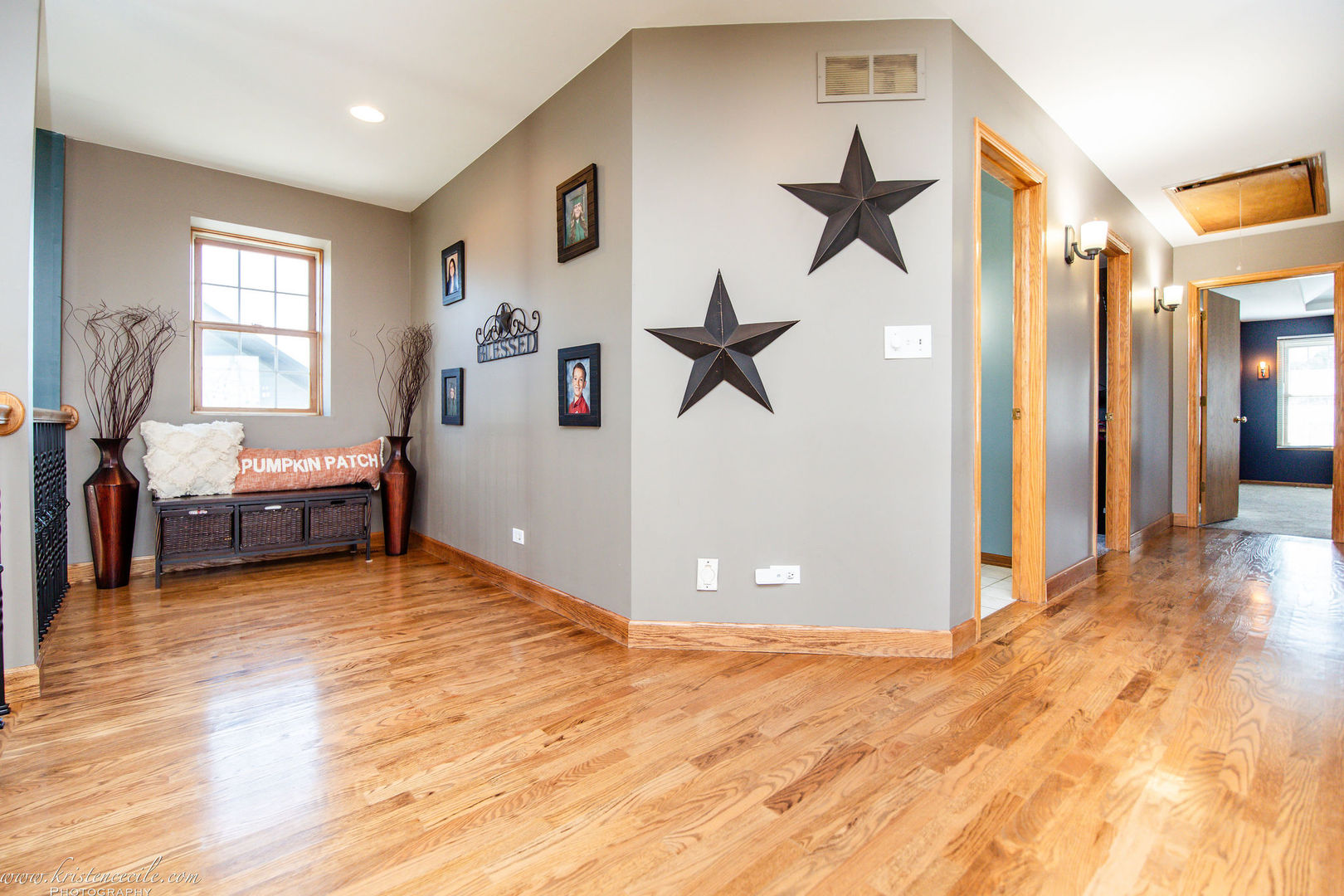Nestled in the serene Green Garden Township within the top-rated Peotone school district, this fully remodeled estate in Peotone Schools offers over 4,000 square feet of luxurious living on a sprawling 2.5-acre lot. Perfect for at-home business owners, large families, tech enthusiasts, or equestrian lovers, this move-in-ready two-story home boasts up to 11 bedrooms (including three in a versatile barn) and 5 bathrooms, blending modern sophistication with rural charm. Step through a grand foyer with soaring 20-foot ceilings into a stunning dinning room, where a floor-to-ceiling flagstone fireplace with a gas starter creates a warm centerpiece. The space flows seamlessly into a spacious gourmet kitchen, featuring granite countertops, premium stainless steel appliances, a large island, pantry, and rich hardwood flooring. The 19×19 master suite is a private retreat with a tray ceiling, in-wall safe, lounge area, and a 19×15 walk-in closet with built-in shelves, complemented by a spa-inspired bathroom with two LED mirrors, a dedicated makeup sitting area with an LED mirror, dual vanities, soaker tub, and oversized shower. Entertainment abounds in the basement’s theater room, equipped with Ashley chairs, a couch, a projector with a retractable screen, 5 speakers, and Google Assistant-controlled lighting, alongside a 10×10 kitchen with a fridge and popcorn station. A dedicated gym with included equipment adds to the home’s versatility. Beyond the main house, a 60×40 insulated barn with a concrete floor, fire system, mini-splits, secure internet, bathroom, kitchen, and three potential bedrooms or offices offers endless possibilities for a home business or related living. A 40×15 storage barn with a mini-split and secure internet provides additional functionality. The freshly landscaped 2.5-acre lot features a covered patio with an outdoor TV, patio furniture, outdoor kitchen, speakers, and a hot tub enclosure, perfect for entertaining. Cutting-edge upgrades elevate this estate, including a $50,000 network that includes Ubiquiti network, 22 security cameras, plate readers, facial recognition, a monitored fire system ($39/month). Also, new west-facing windows. Located in unincorporated Will County with easy I-57 access to Chicago’s south suburbs, shopping, and dining, this family-friendly estate benefits from Peotone schools (207U) and school bus service.