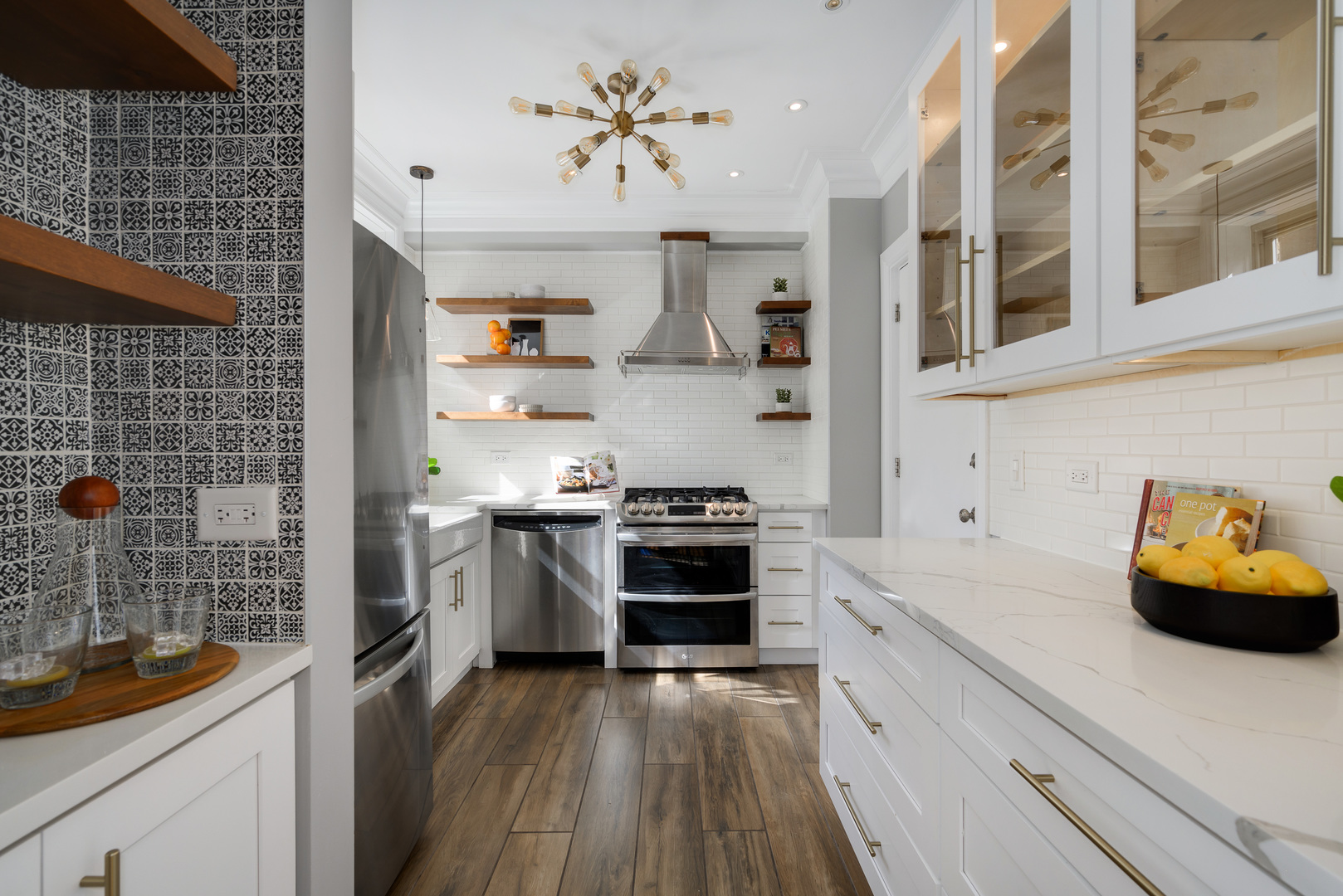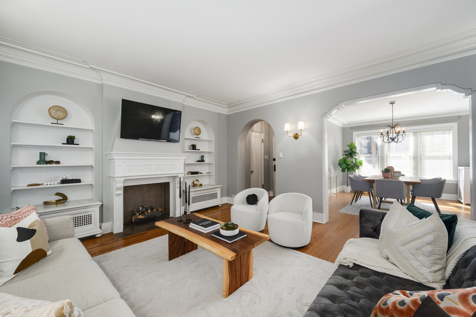 Multiple Offers Received. This one is a standout! Chic and timeless, this vintage condo is tucked into a quiet picturesque courtyard on tree-lined Pine Grove perfectly positioned where Lincoln Park and Lakeview meet, just a few blocks from the lake. Where 1930s character meets modern design – original crown molding, arched doorways and built-ins, a decorative fireplace, hardwood floors and sleek updates make this 1400 square-foot home as spacious as it is stylish. An open, airy living room framed by courtyard trees is inviting and charming. The adjoining formal dining room creates a welcoming space to gather and entertain with ease. Professionally designed and gutted in 2019, the kitchen is a true standout, featuring quartz countertops, top-of-the-line appliances, tile flooring, open shelving, custom cabinetry, and statement lighting. Tucked down a hallway from the living space, two large bedrooms, a bathroom, in-unit laundry and an enormous storage closet create a private living retreat. Rental parking is available close by. Walk to everything: public transportation, Trader Joes, Fresh Market, Stan’s Donuts, Target, Lincoln Park, restaurants and bars, and so much more! With its spacious layout, vintage charm, and unbeatable location, this home is an absolute must-see!