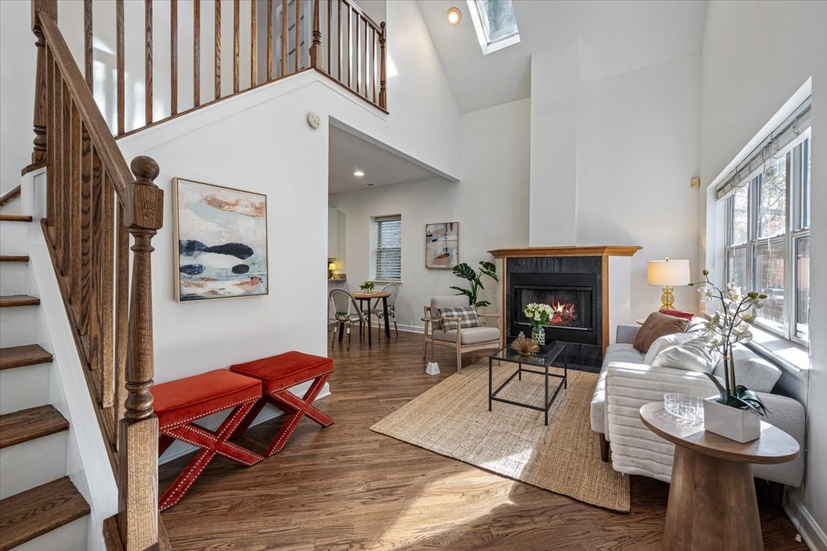 Welcome to 2729 N. Wayne! This bright and airy duplex-up offers soaring 17-foot ceilings, abundant natural light, and a truly unique layout – definitely not your cookie-cutter condo. The main level features open-concept living and dining areas, a spacious kitchen with a brand new refrigerator, a breakfast bar and tons of counter space and cabinetry plus one bedroom and one bathroom are also on the first floor. Spacious 2nd floor primary suite includes a full bathroom and convenient in-unit laundry making this feel like a single family home. Freshly painted throughout and newly refinished hardwood floors plus skylights, and west-facing windows that flood the space with afternoon sun. New HVAC and hot water heater! Located in a small, self-managed building with low assessments and one exterior parking space included. Set on a beautiful tree-lined street, close to Lincoln Park and Lakeview’s best dining, shopping & parks.