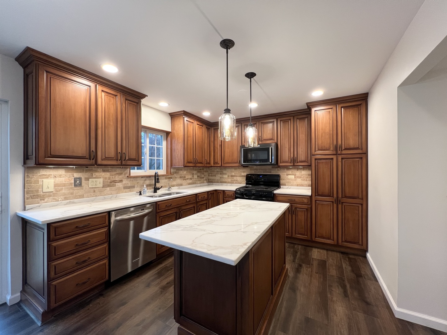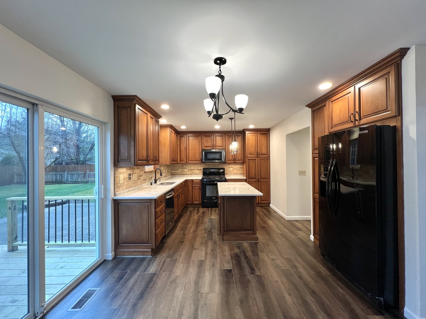 Tucked away in one of Naperville’s most sought-after neighborhoods, 2741 Gateshead invites you into a world of warmth, space, and thoughtful design. From the moment you approach, the new concrete driveway and modern exterior offer a welcoming first impression. The updated walkway leads you to the front door, which opens into the heart of this exceptional home. Inside, you’ll be greeted by an expansive open floor plan that effortlessly combines the living, dining, and kitchen areas. This layout is perfect for both cozy family living and grand entertaining. Large windows flood the space with natural light, creating a bright and airy atmosphere throughout. Newly renovated, the interior is a blend of modern finishes and classic charm, from the stunning hardwood floors to the custom cabinetry and sleek fixtures. The living room, featuring a cozy fireplace, invites you to unwind and gather with loved ones. The kitchen, designed with entertaining in mind, offers a functional layout, ample storage, and an abundance of natural light. It effortlessly connects to the rest of the home, making indoor-outdoor living a breeze. One of the standout features is the 3-season sunroom, a serene retreat where you can enjoy your morning coffee, read a book, or simply take in the beauty of the changing seasons. Upstairs, the spacious master suite is a peaceful sanctuary, complete with a walk-in closet and a luxurious en-suite bathroom. Three additional generously sized bedrooms offer ample space for family or guests, with an updated full bathroom nearby. One of the home’s best-kept secrets is the finished basement, which includes a bedroom, bathroom, and walk-in closet-ideal for guests, a home office, or a private retreat. Fully finished, this space offers a perfect escape for relaxation or entertaining. Step outside into the fenced backyard, where you’ll find a brick-paved patio, a newly built deck, and a bonfire pit-perfect for evening gatherings under the stars. This home offers an inviting atmosphere where memories are made, a place to build a life and enjoy the very best of Naperville living.