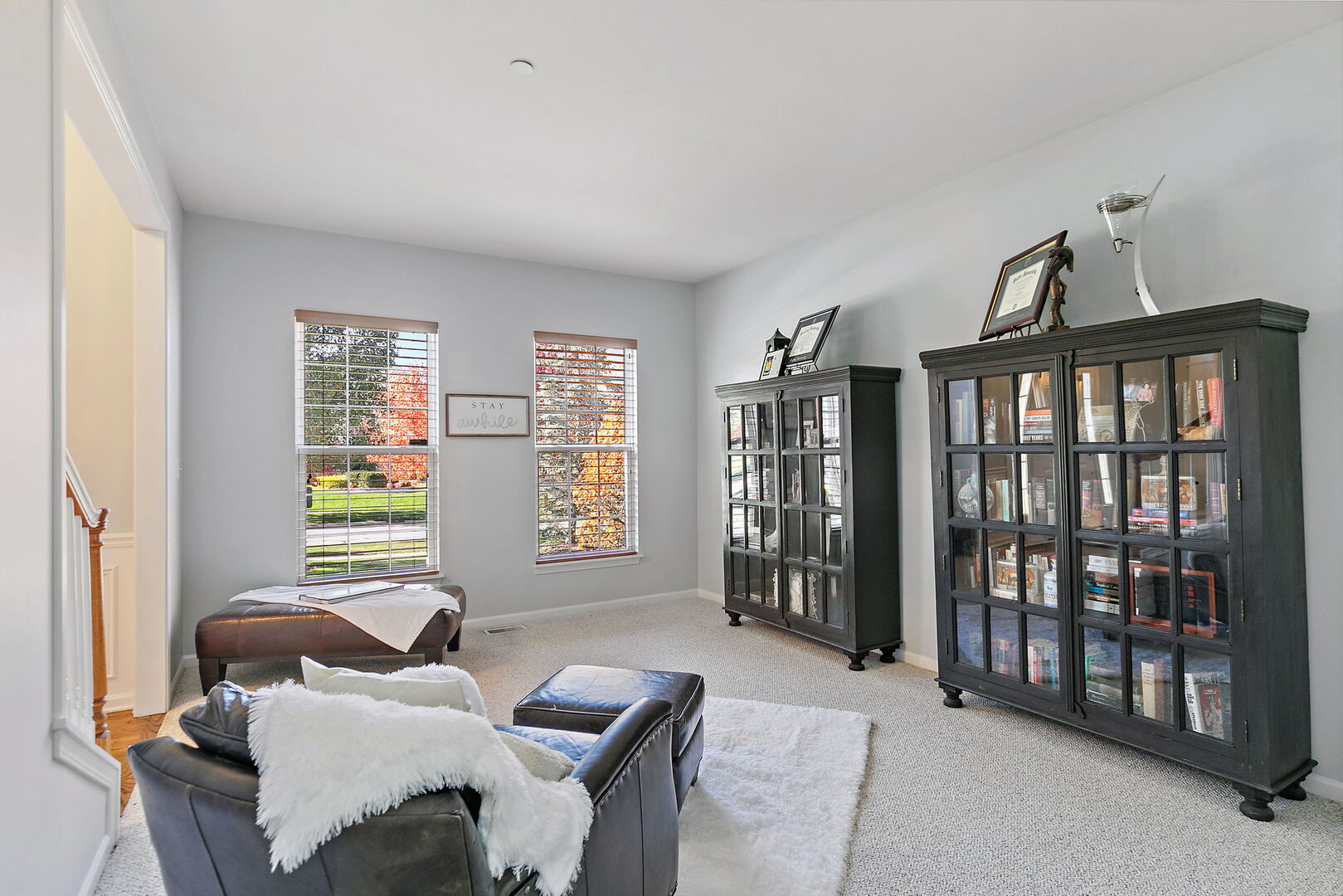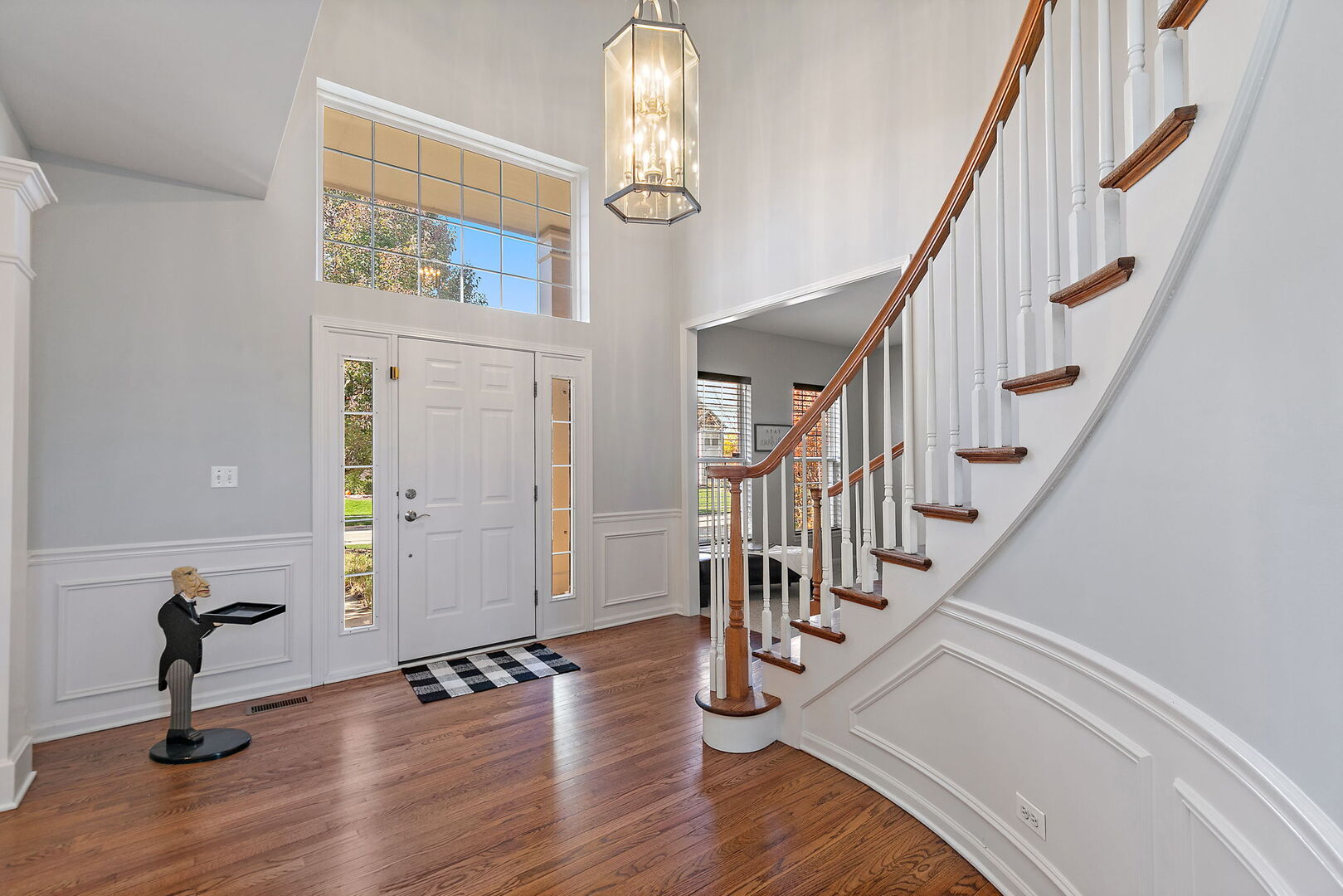 Exclusive and unique Prescott model, the largest model at prestigious Carrington Reserve. Great curb appeal w/brick front & 3 car side load garage. This amazing and rare floor plan offers a 2 story foyer & family room with soaring ceilings and oversized windows that invite the outside in, a split stairway offers access from the foyer & kitchen. Interior professionally painted in neutral colors! granite counters, stainless steel kitchen appliances, washer & dryer stay, laundry tub, upgrades galore, plus custom lighting fixtures. Beautiful entry with curved stairway, formal living & dining room. The amazing oversized kitchen offers a large island, a pantry, a planning desk, a large eating area with a slider to a beautiful deck and a brick patio area. Enjoy the fire pit on beautiful fall nights. The spacious master bedroom offers a luxury bathroom with 2 vanities, 2 separate walk-in closets, a large soaker tub & separate shower. All secondary bedrooms are spacious! Full walk-out basement with 10′ ceilings is finished for extra space for your growing family with 3 separate storage areas and a large recreational area, plus a media/TV area. So much room for future expansion in this one-of-a-kind home awaits for your family and will not last! Extra bonus: The roof was replaced in 2020, and the floors were refinished in 2021! Major renovations 2020/2021